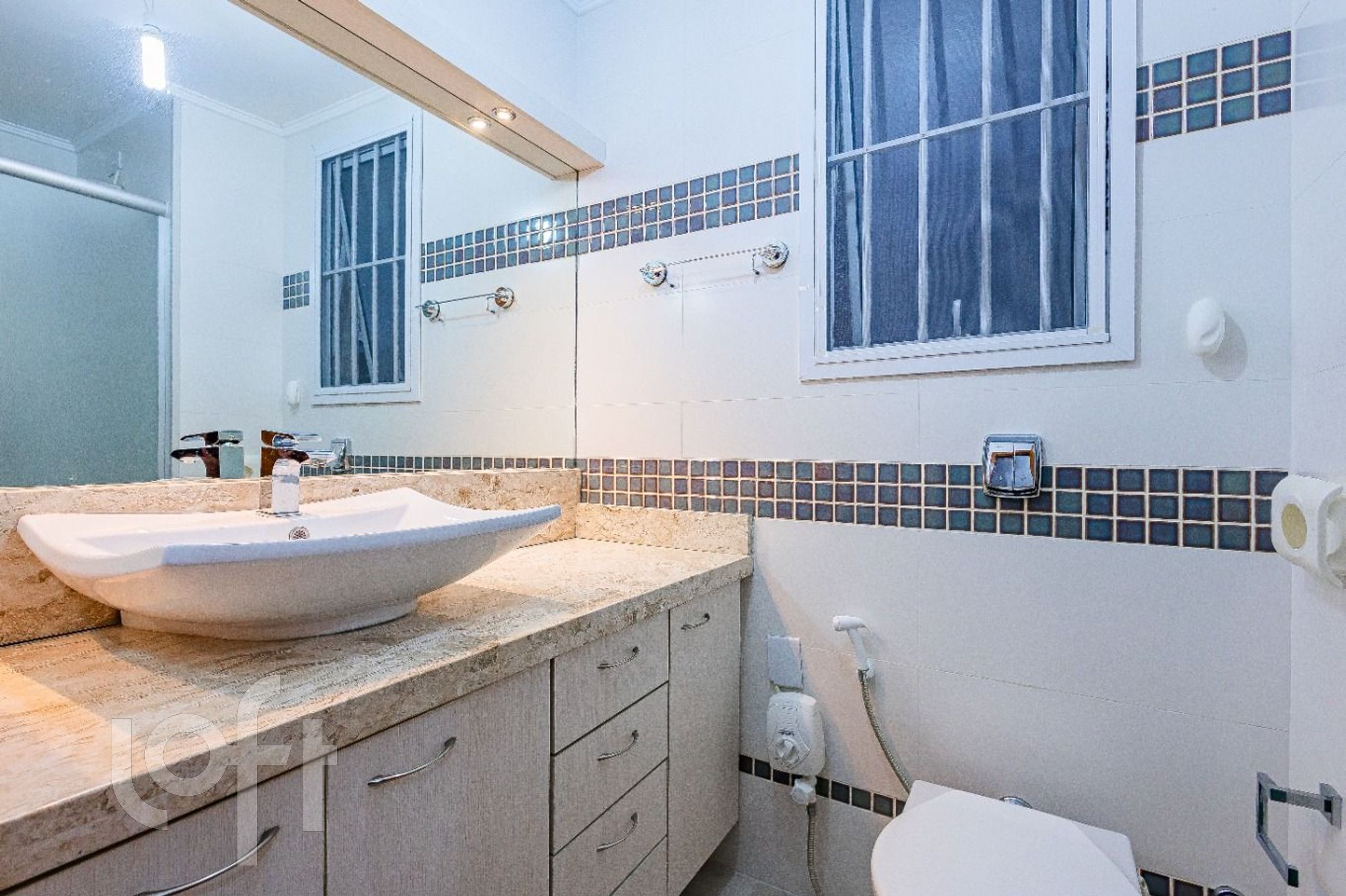 Todo reformado, com porcelanato travertino bianco da Porto Belo, banheiros com azulejos da Porto Belo.