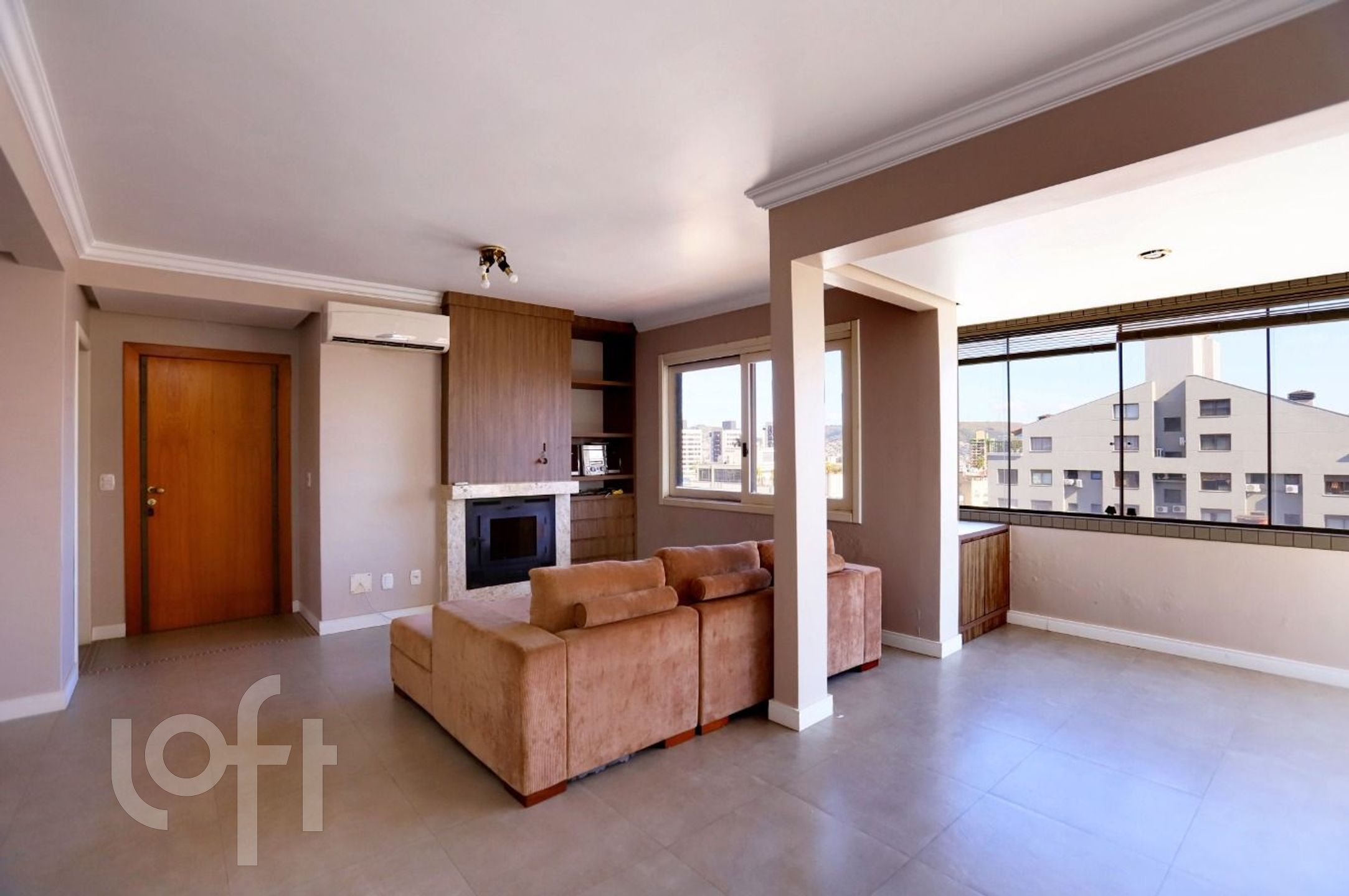 O imóvel é semi-mobiliado e conta com uma aconchegante lareira, ideal para momentos de relaxamento.