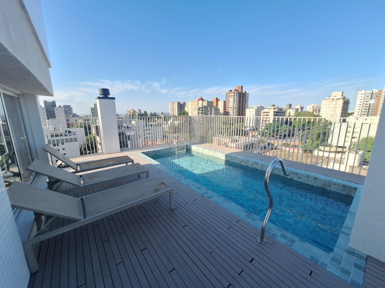 Localizado na parte mais alta do bairro Auxiliadora, empreendimento diferenciado, de alto padrão, fachada cem por cento revestida, detalhes únicos em cada ambiente. Apartamento de 2 suítes, lavabo, amplo living com extensa sacada. Apartamento totalmente e finamente mobiliado, projetado por arquiteto. O apartamento possui 2 vagas de garagem. Prédio com salão de festas e na cobertura do empreendimento, piscina e churrasqueira, com uma vista exuberante!