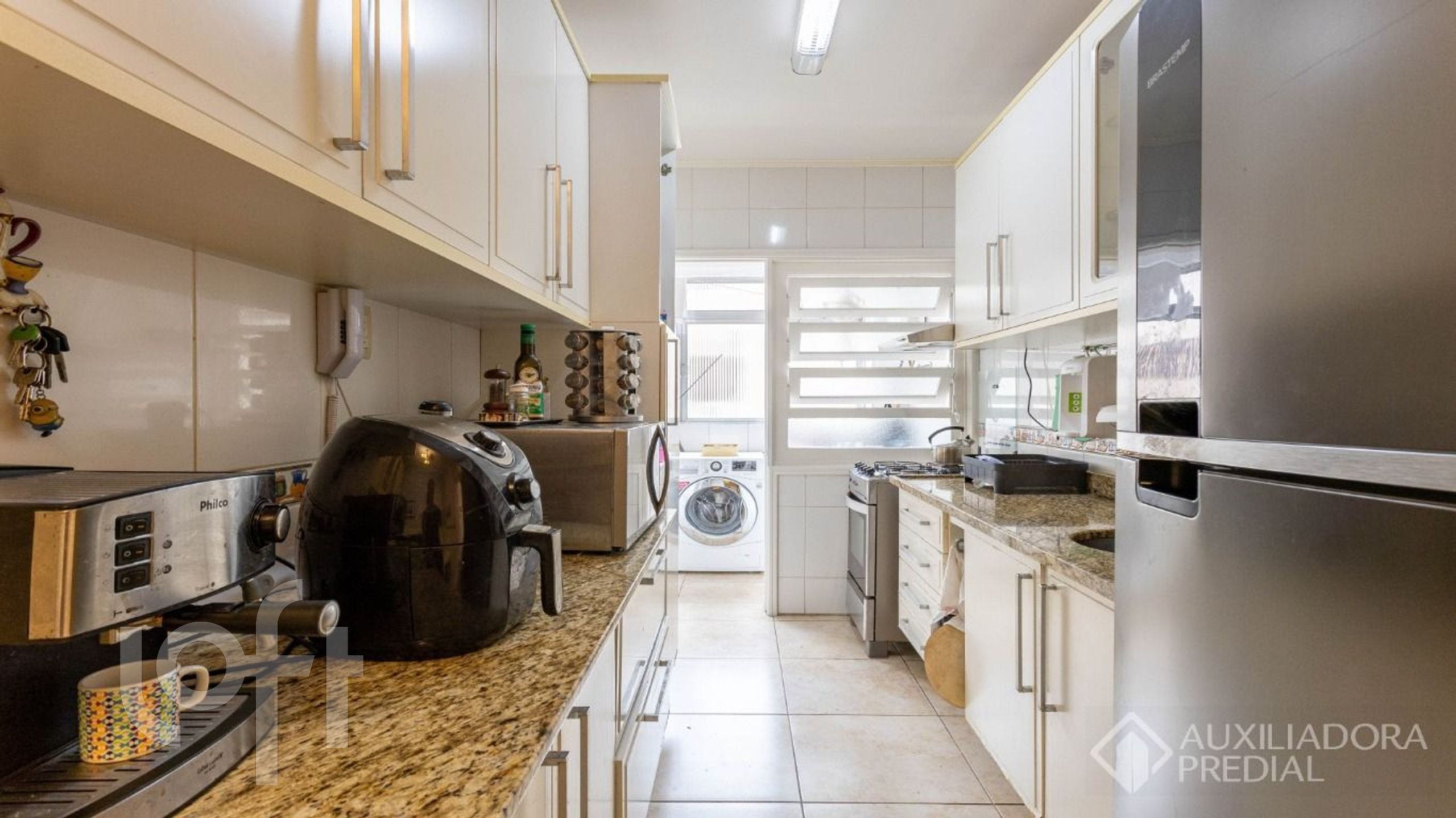 Apartamento semimobiliado, 3 dormitórios (1 suíte com armários planejados e banheira de hidromassagem), amplo living para dois ambientes com sacada, cozinha individualizada com copa, móveis planejados, bancada e pia de granito, espaço de serviço completo (banheiro e lavanderia), 1 vaga coberta.