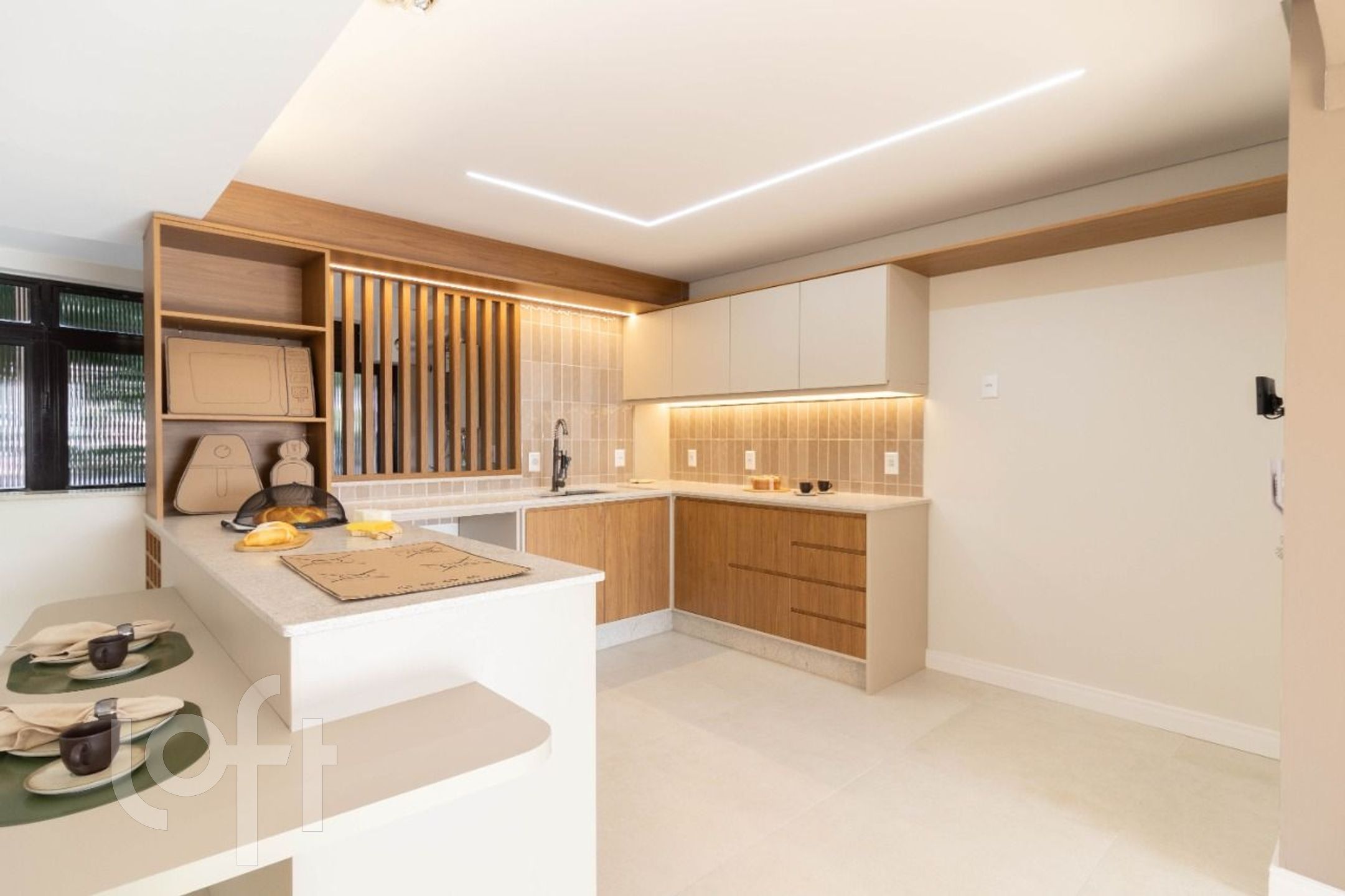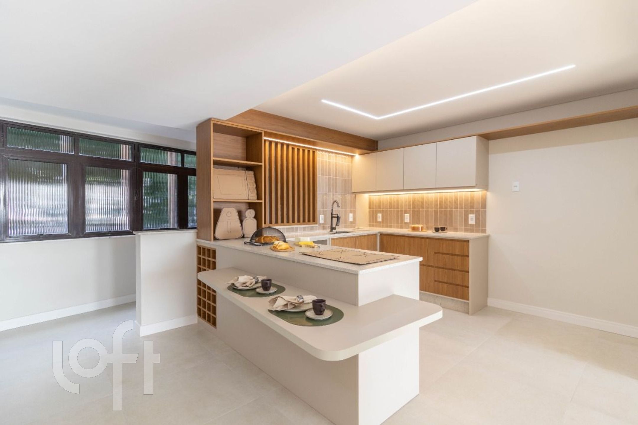 Sala de estar integrada com o jantar e cozinha, proporcionando um ambiente amplo e perfeito para confraternizações ou relaxamento com vista permanente para o Guaíba. Lavanderia separada. Instalação pronta para máquina de lavar louça.