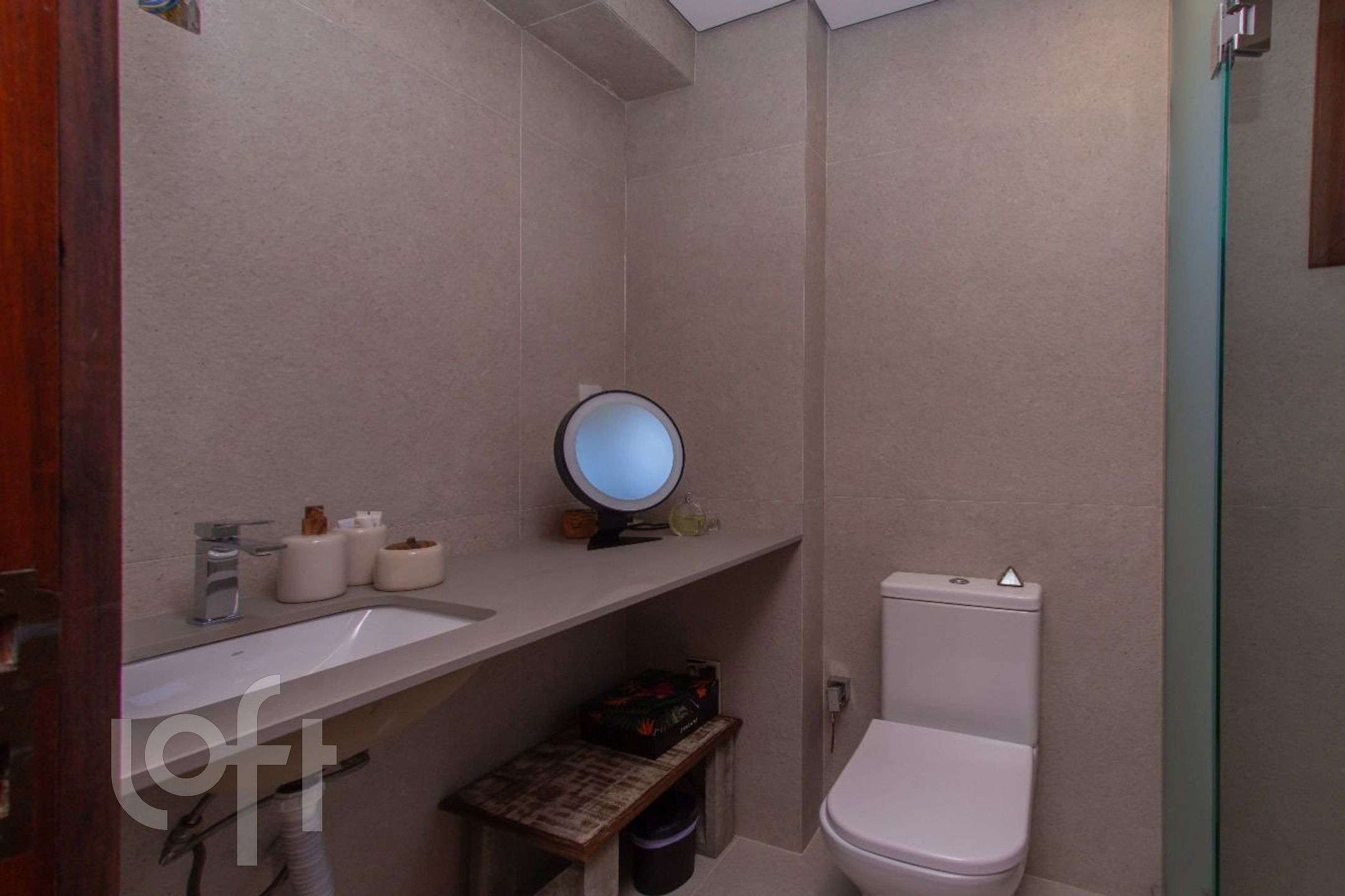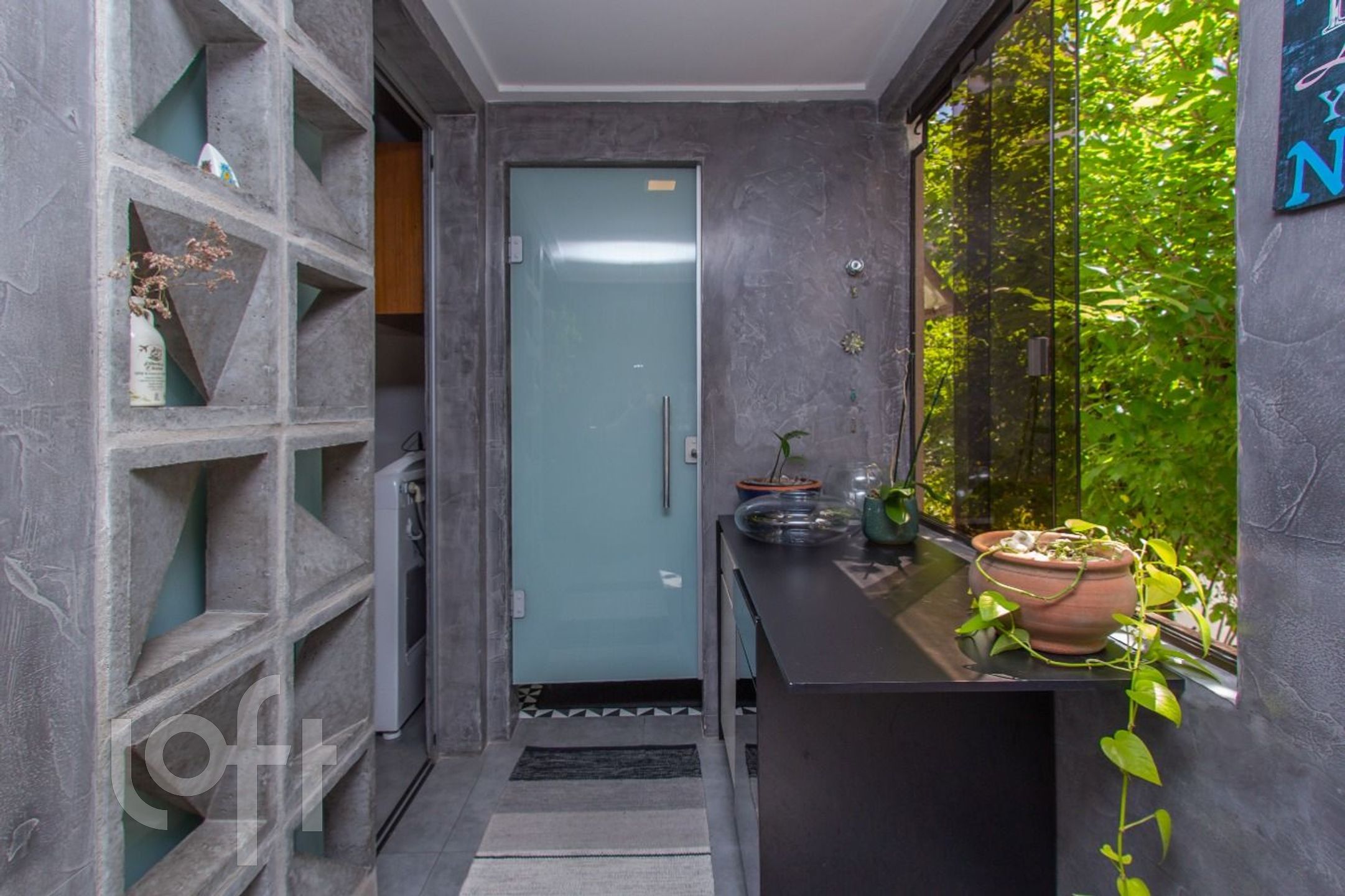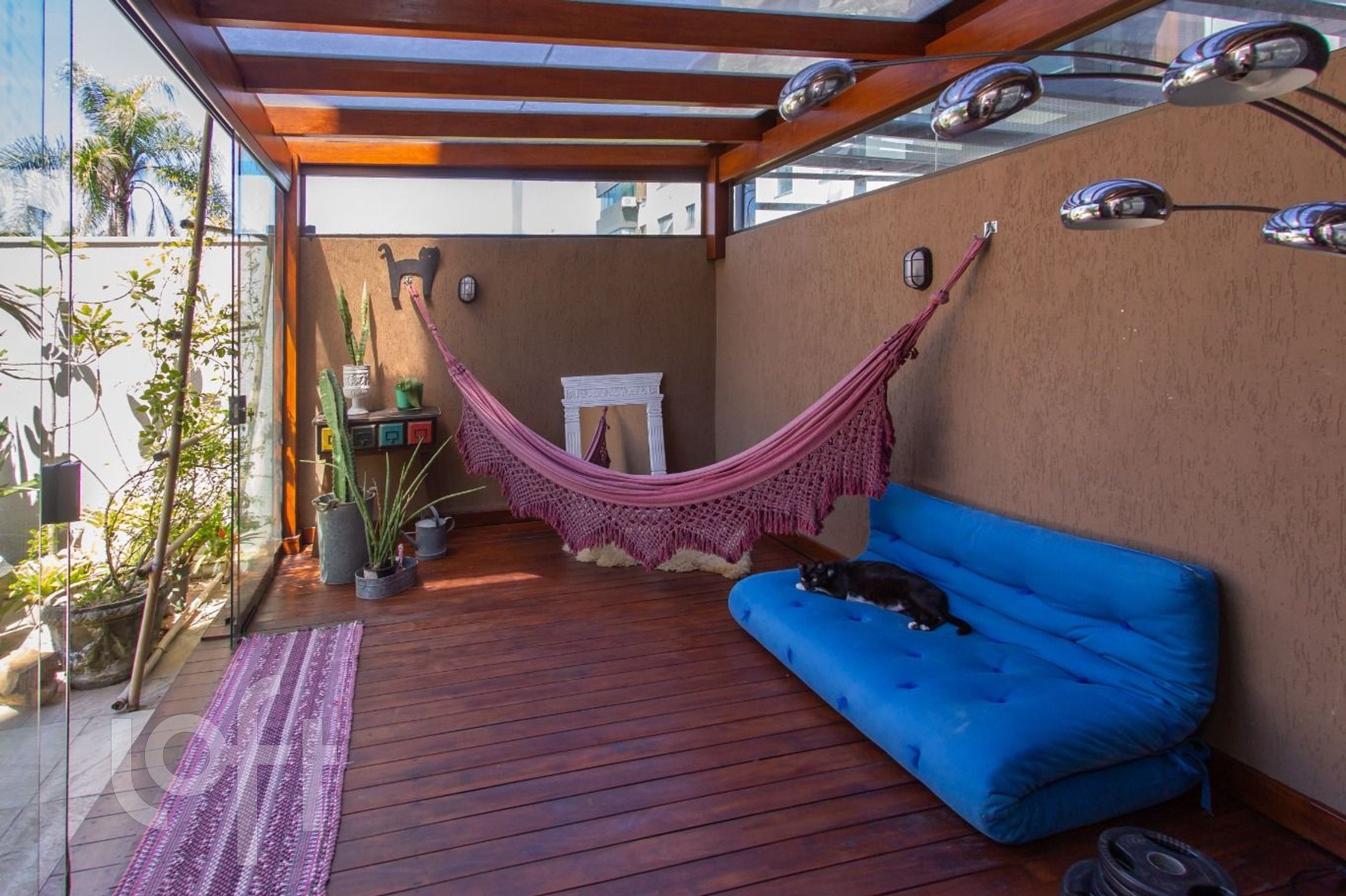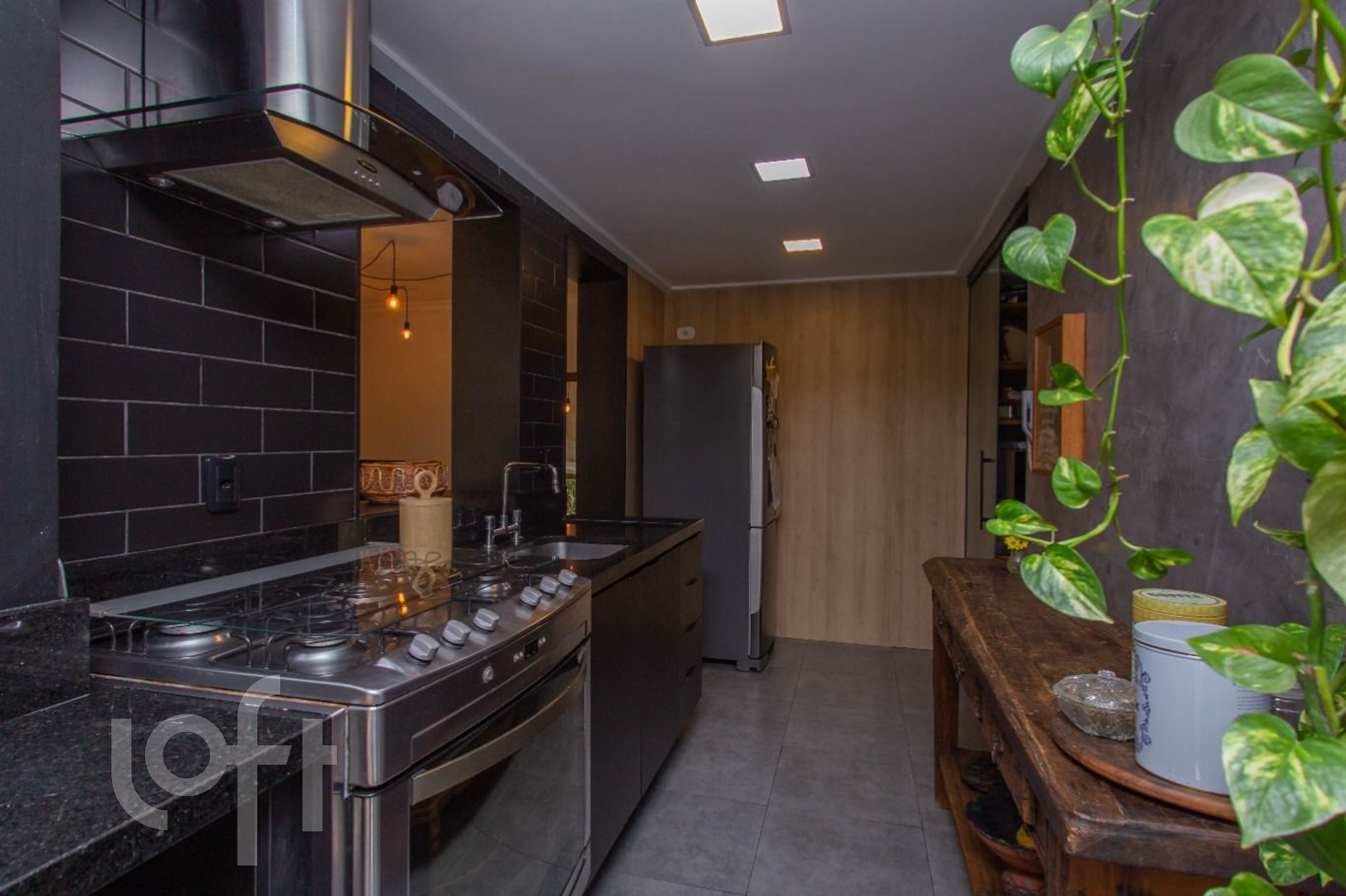 Living com 3 ambientes, com churrasqueira, cozinha americana, dependência transformada em área de serviço, banheiro auxiliar.