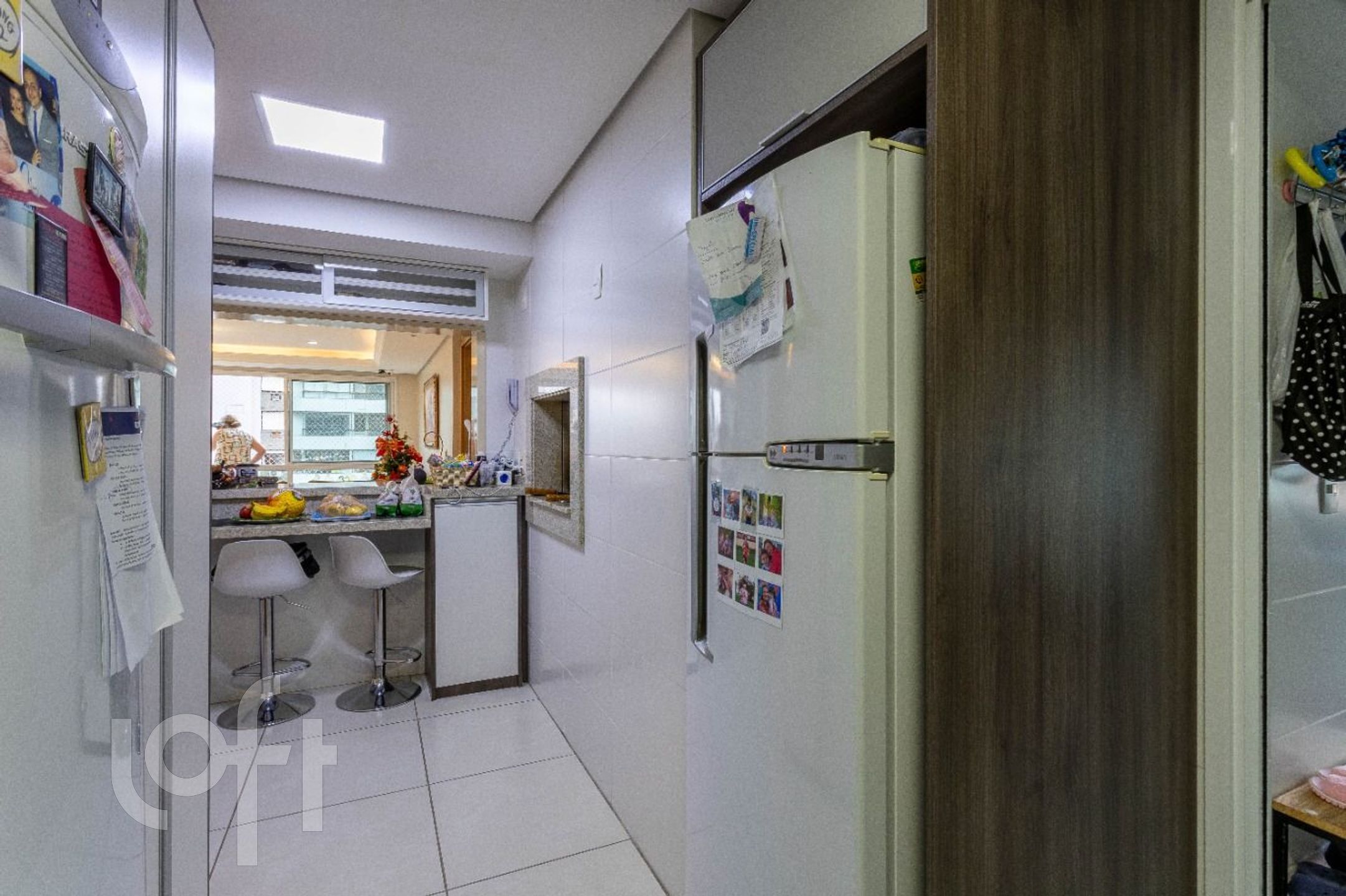 O espaço gourmet com churrasqueira integra a copa-cozinha americana ao living com lareira e lavabo, em ambiente acolhedor e funcional, com um belo janelão que garante excelente iluminação natural.
