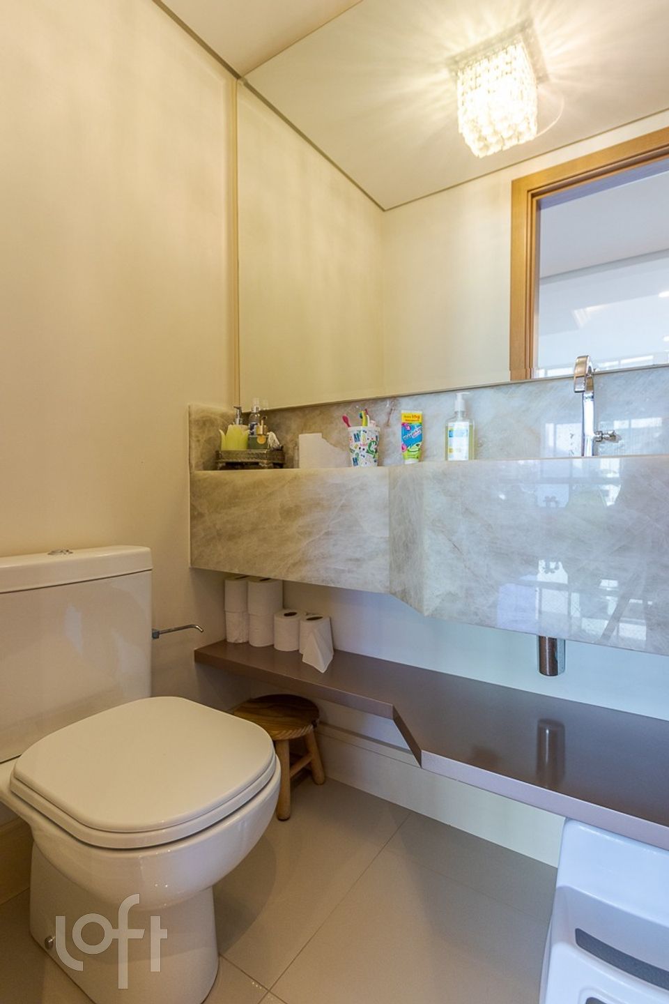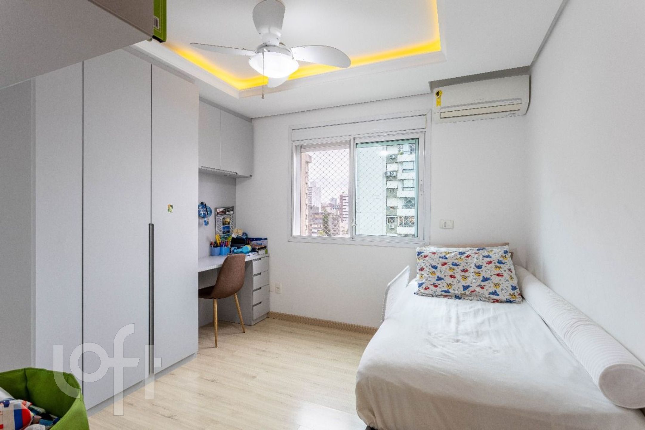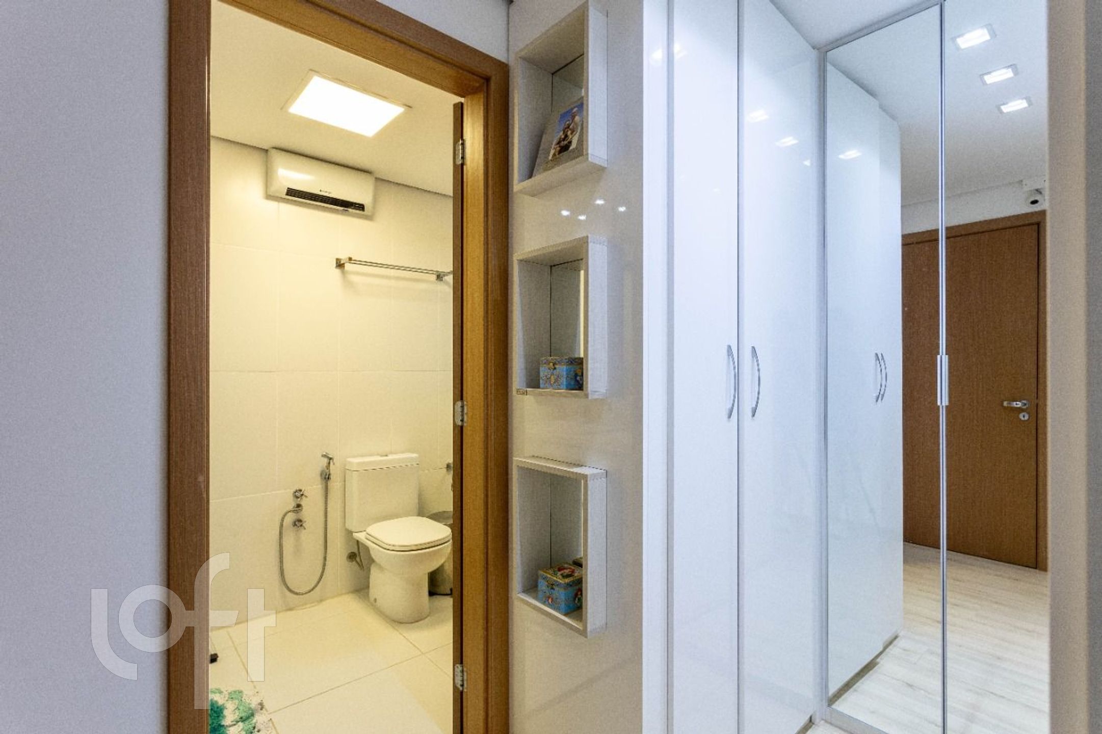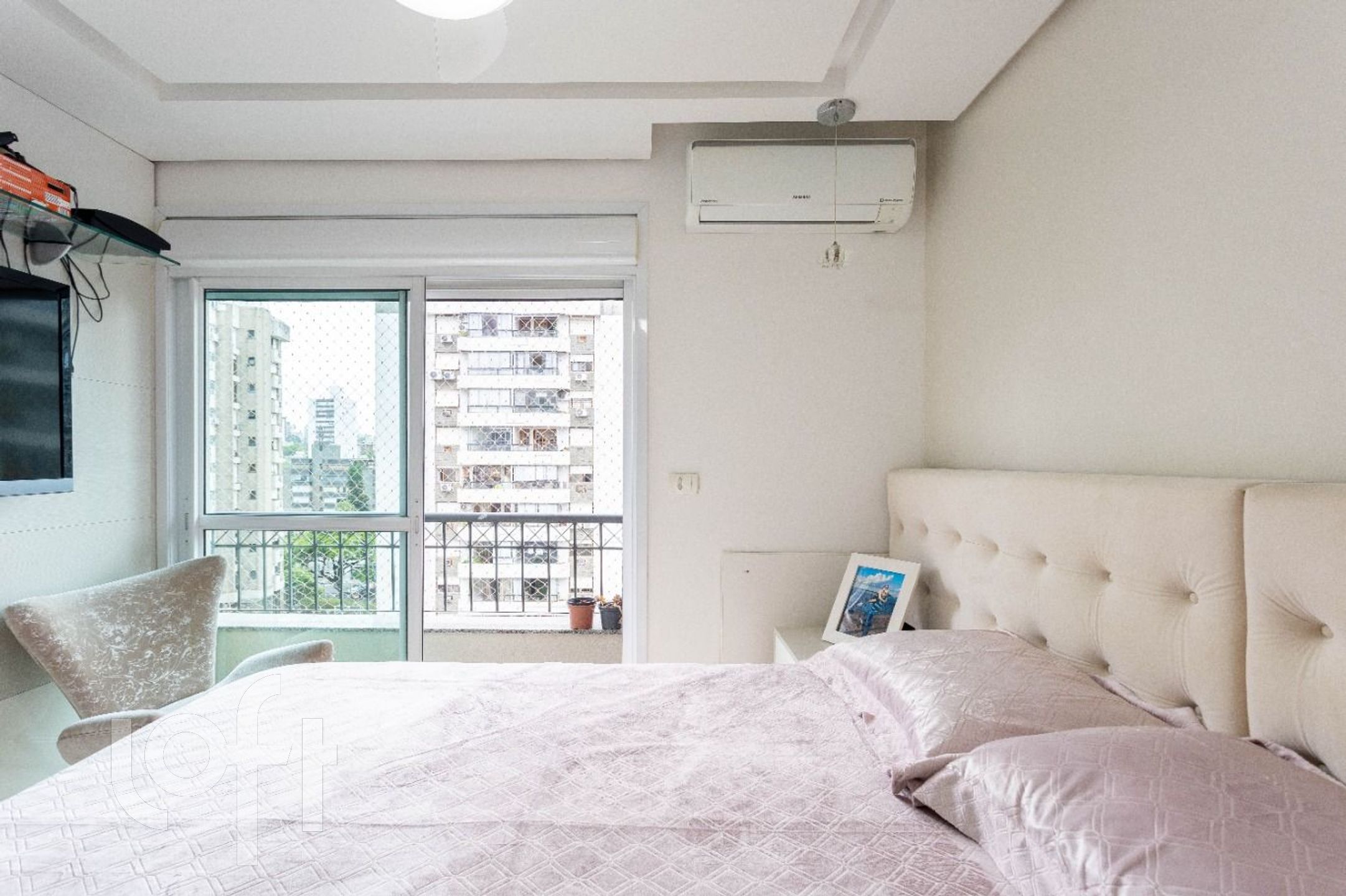 Acabamentos de altíssimo padrão: piso em porcelanato, móveis fixos sob medida e ar-condicionado na sala e em todos os quartos. Vaga dupla com depósito, mais uma vaga individual, totalizando 3 vagas de garagem.