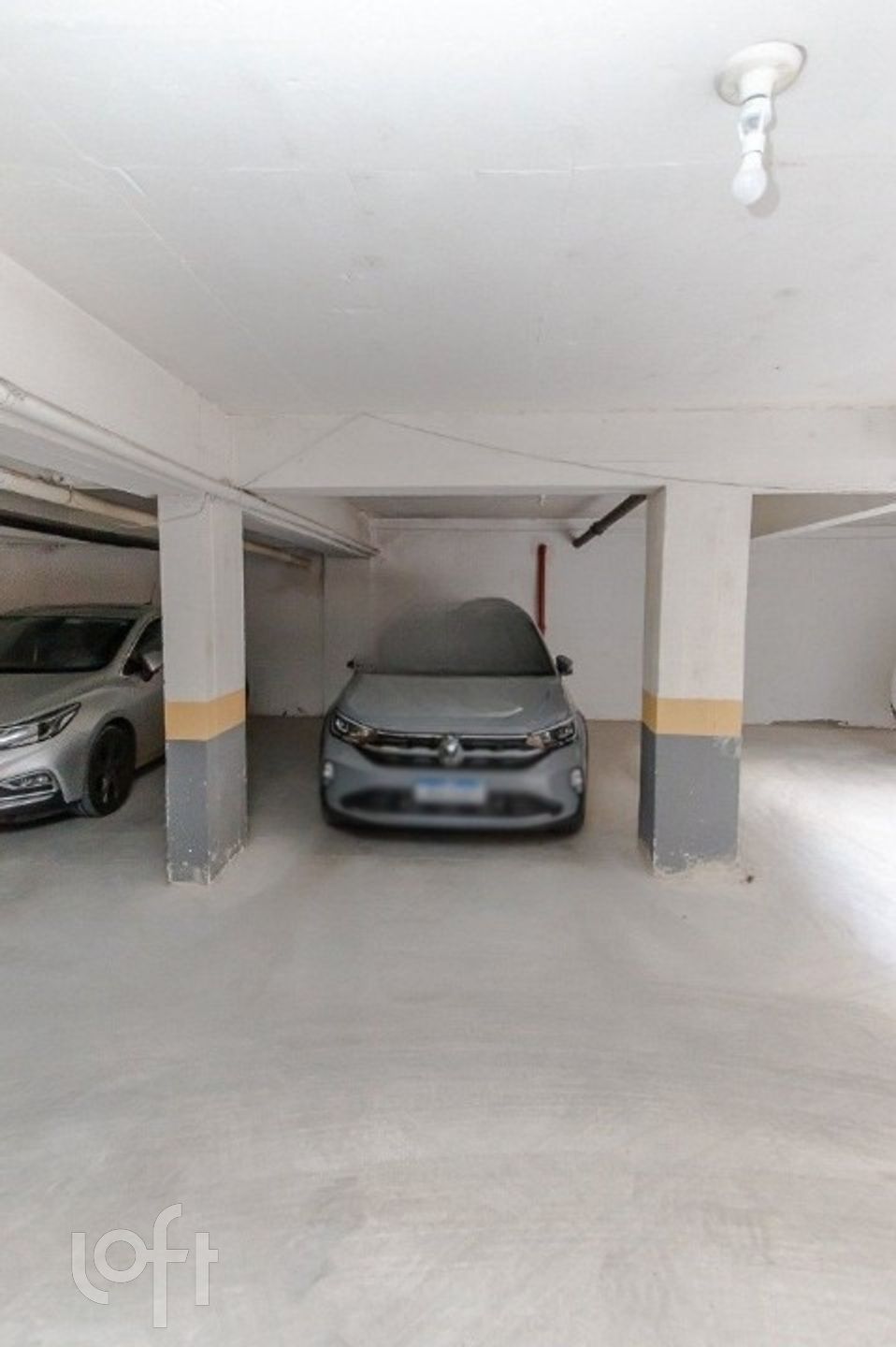 Duas vagas na garagem para até três carros.