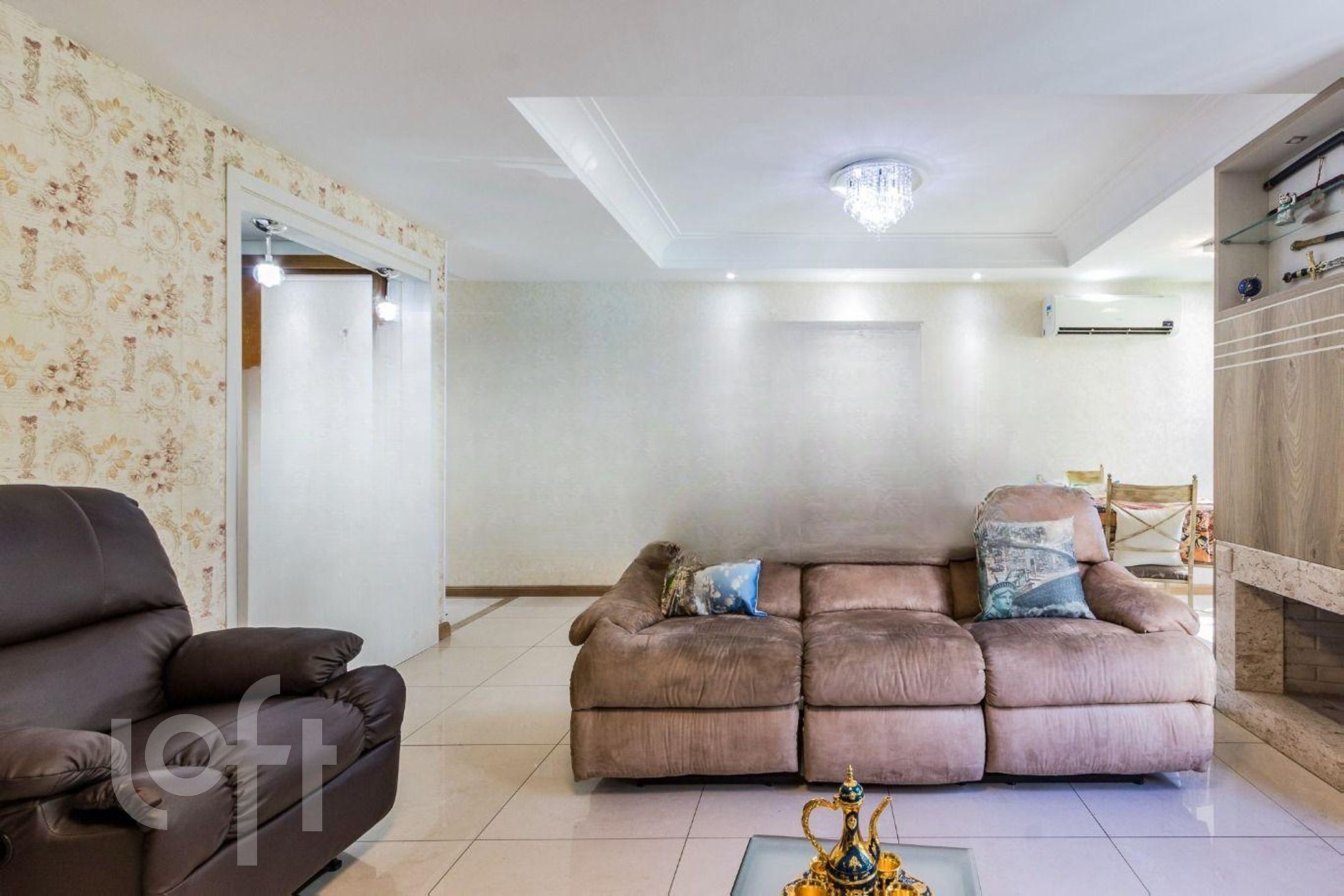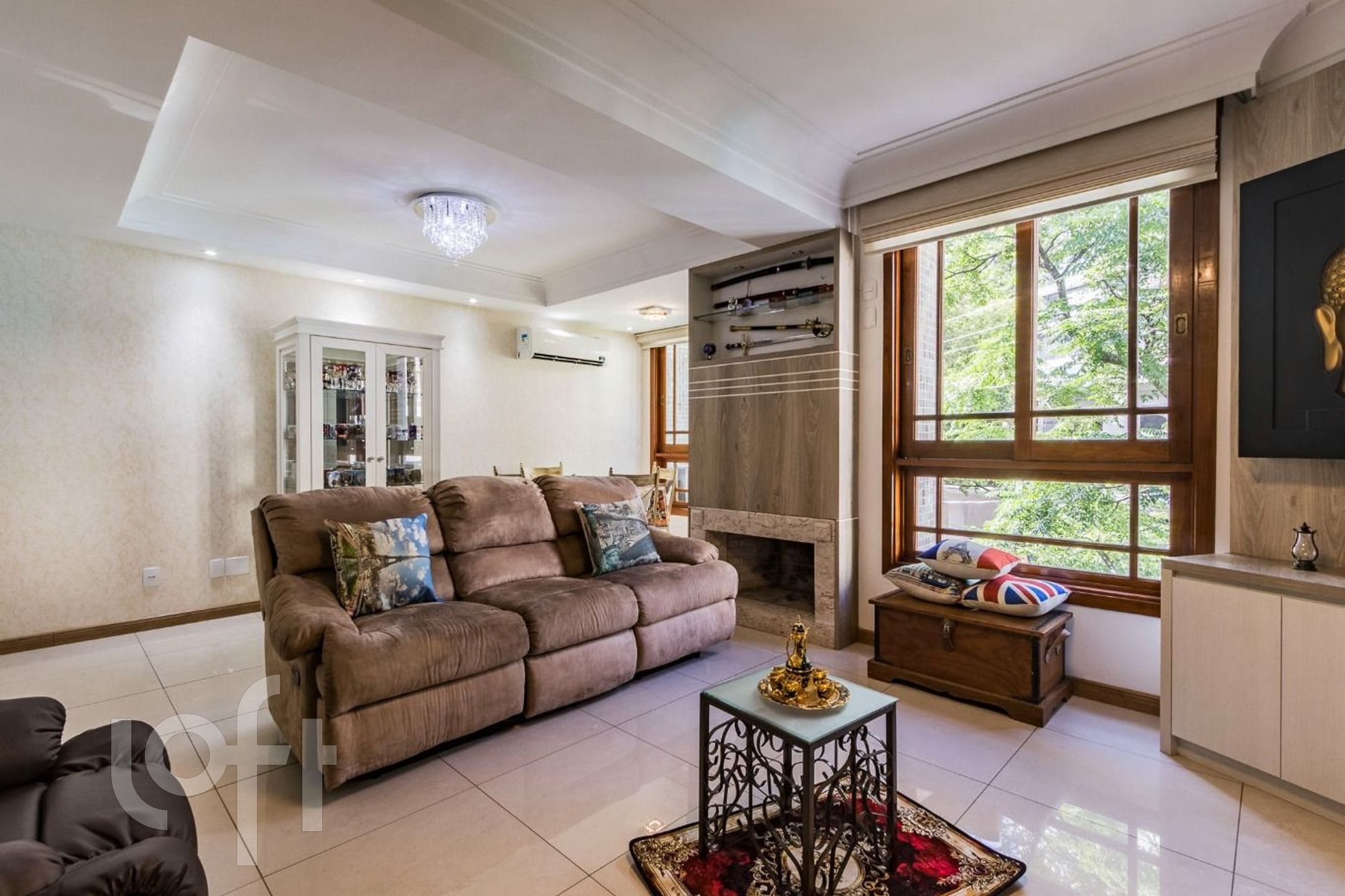 Apartamento com 3 quartos, sendo 2 suítes, uma master com closet e banheira para casal, amplo living com lareira, cozinha aberta, lavabo, banheiro social, área de serviço e duas vagas de garagem.