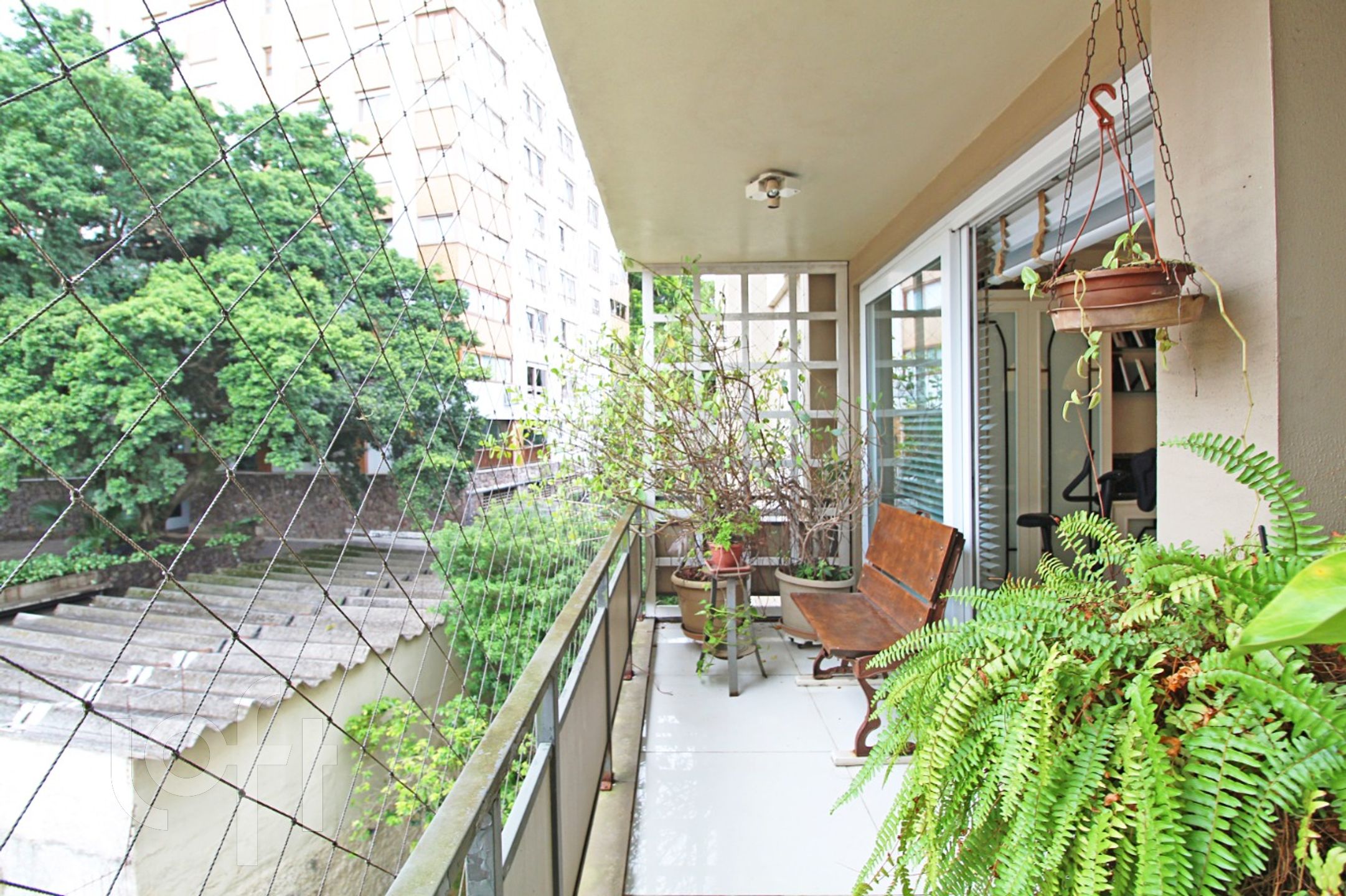 E a cereja do bolo é uma sacada super aconchegante, com muito verde, para tomar chimarrão, relaxar depois de um dia de trabalho.