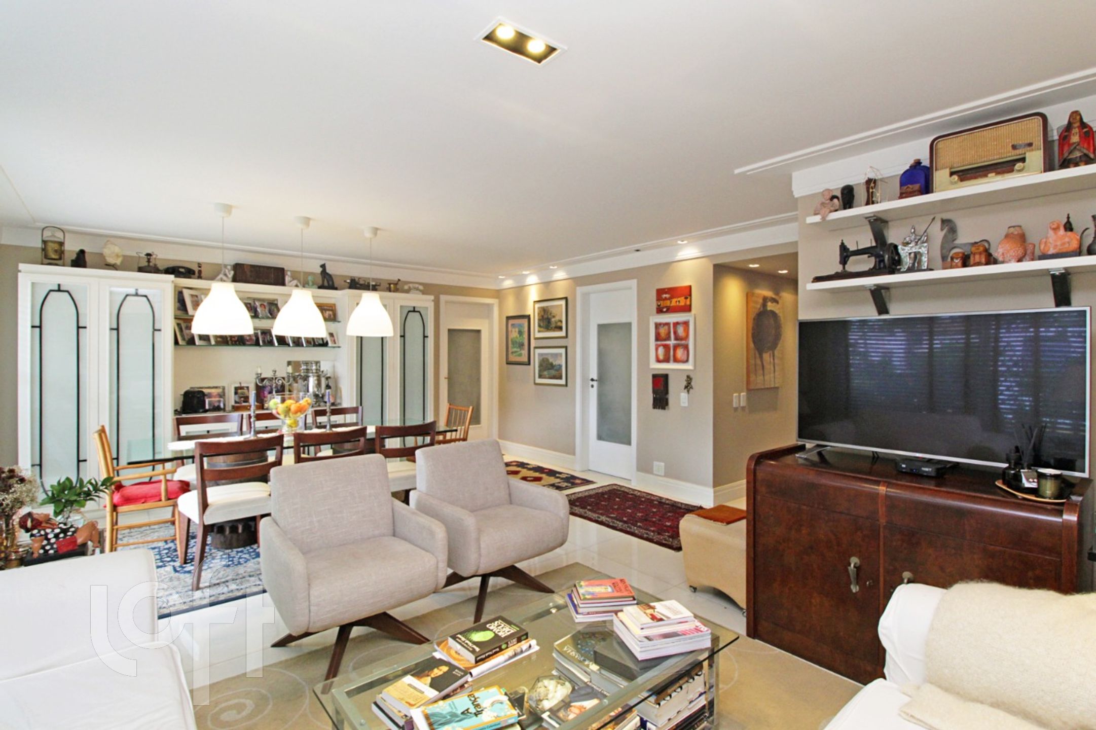 APARTAMENTO onde os 166m² privativos são distribuídos em uma ampla sala para 2 ambientes bem divididos, um lavabo, hall de entrada, copa-cozinha modernizada e uma área de serviço prá ninguém botar defeito, de ótimo tamanho, com banho auxiliar. Vaga para 2 carros.