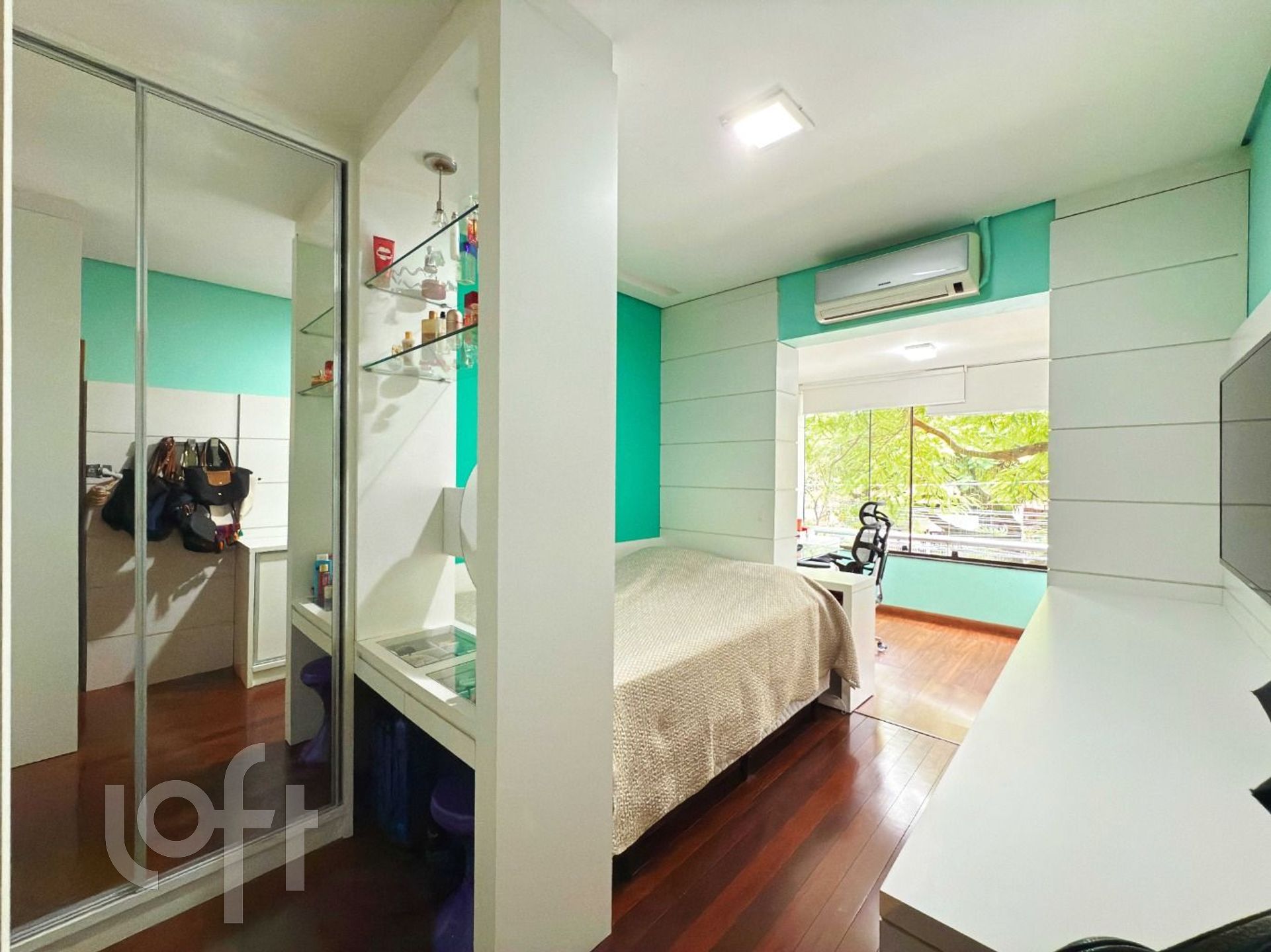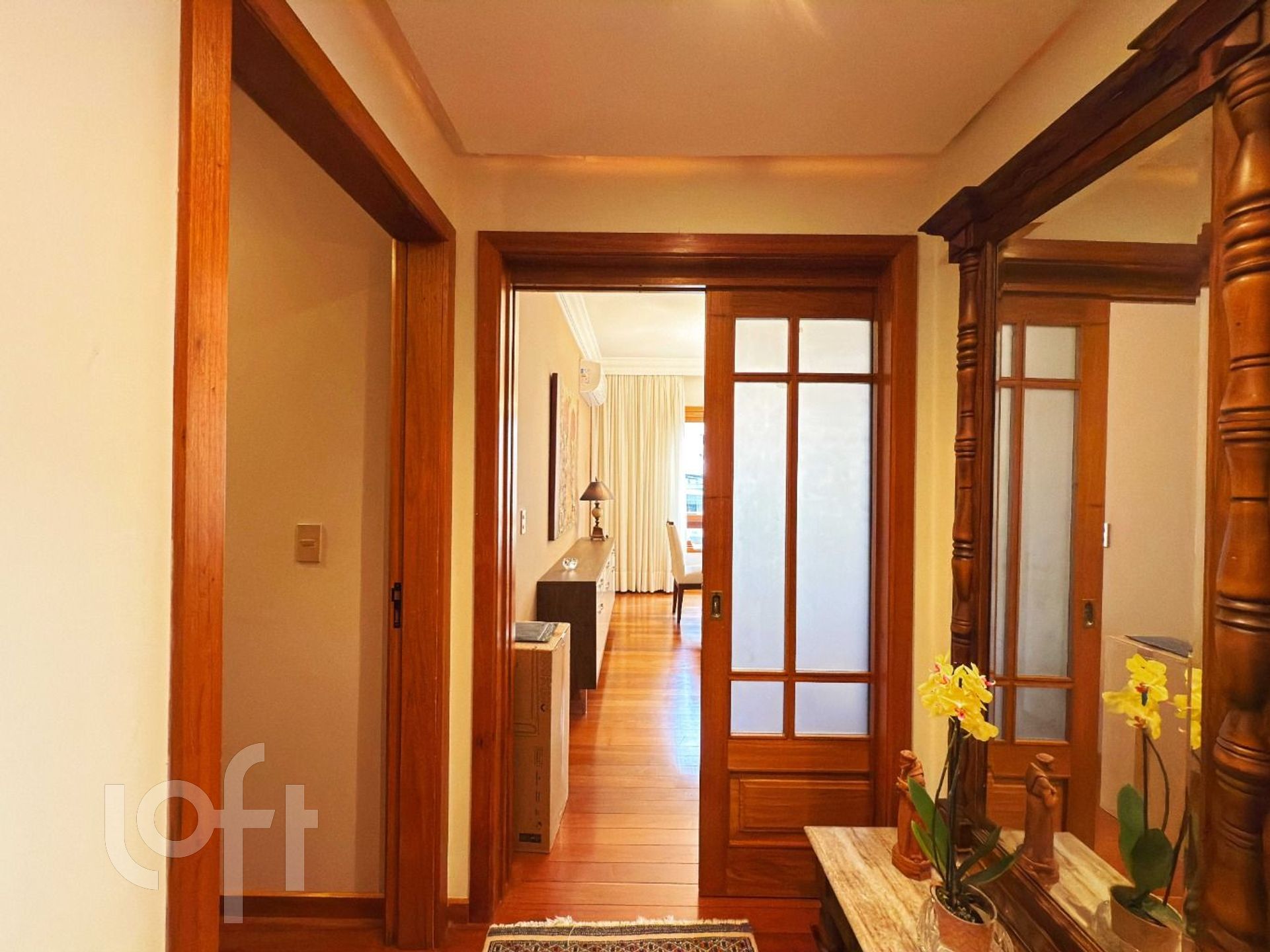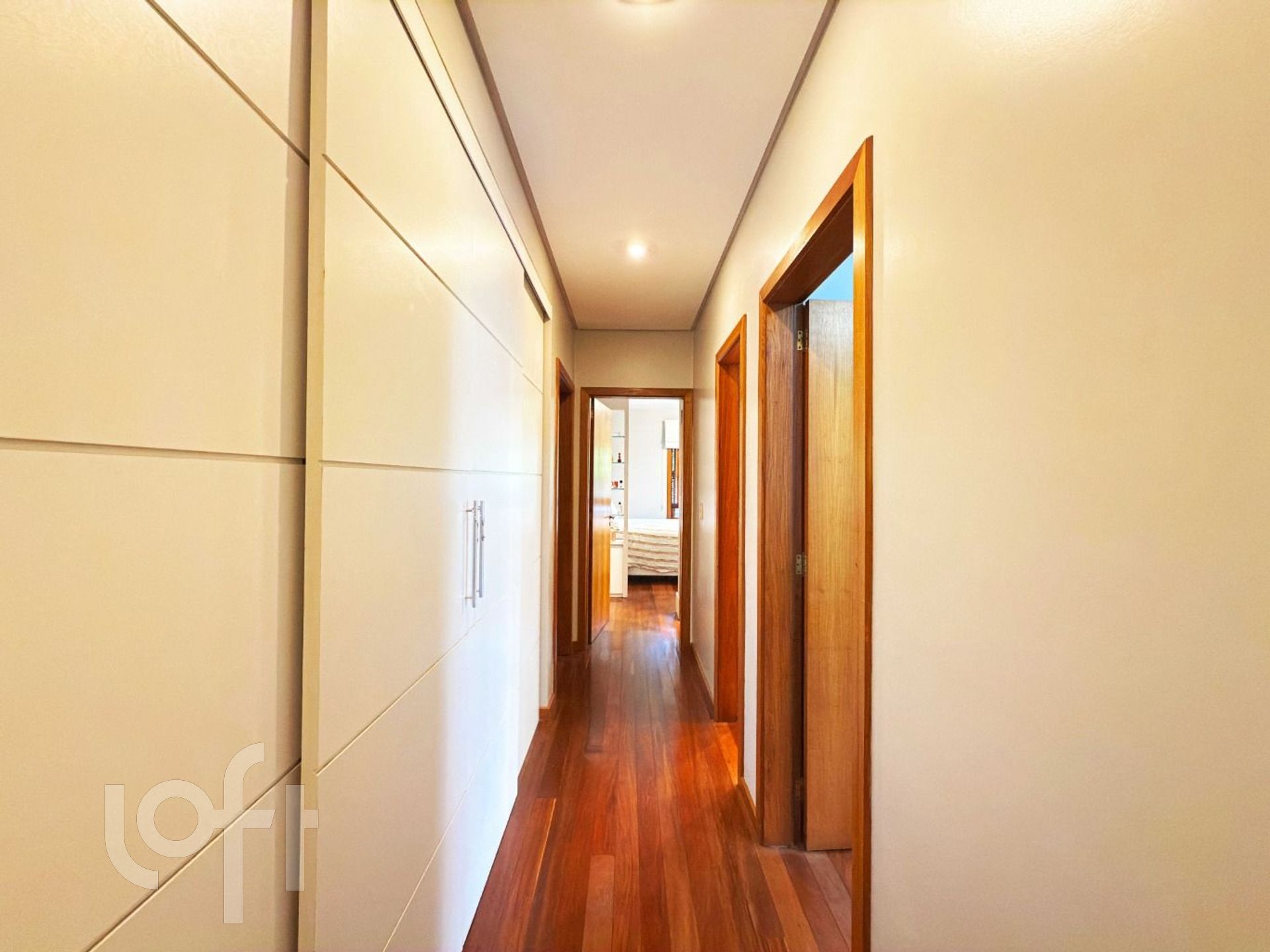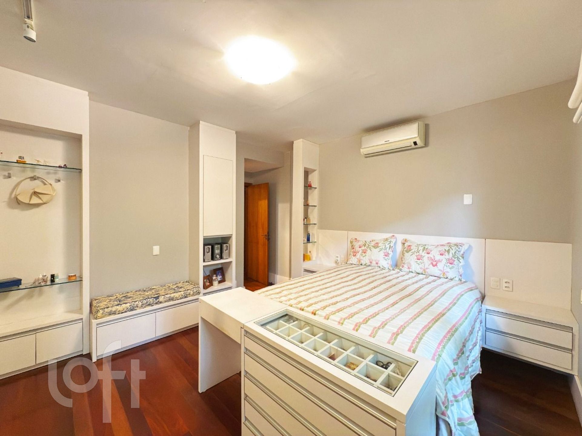 Na área íntima, há uma circulação com espaço versátil, atualmente utilizado como rouparia, mas que pode ser facilmente adaptado para home office ou outro uso conforme a necessidade. Os dois dormitórios de solteiro possuem sacada, sendo que um deles foi integrado ao quarto. O terceiro dormitório, uma suíte, proporcional ao casal conforto e privacidade.