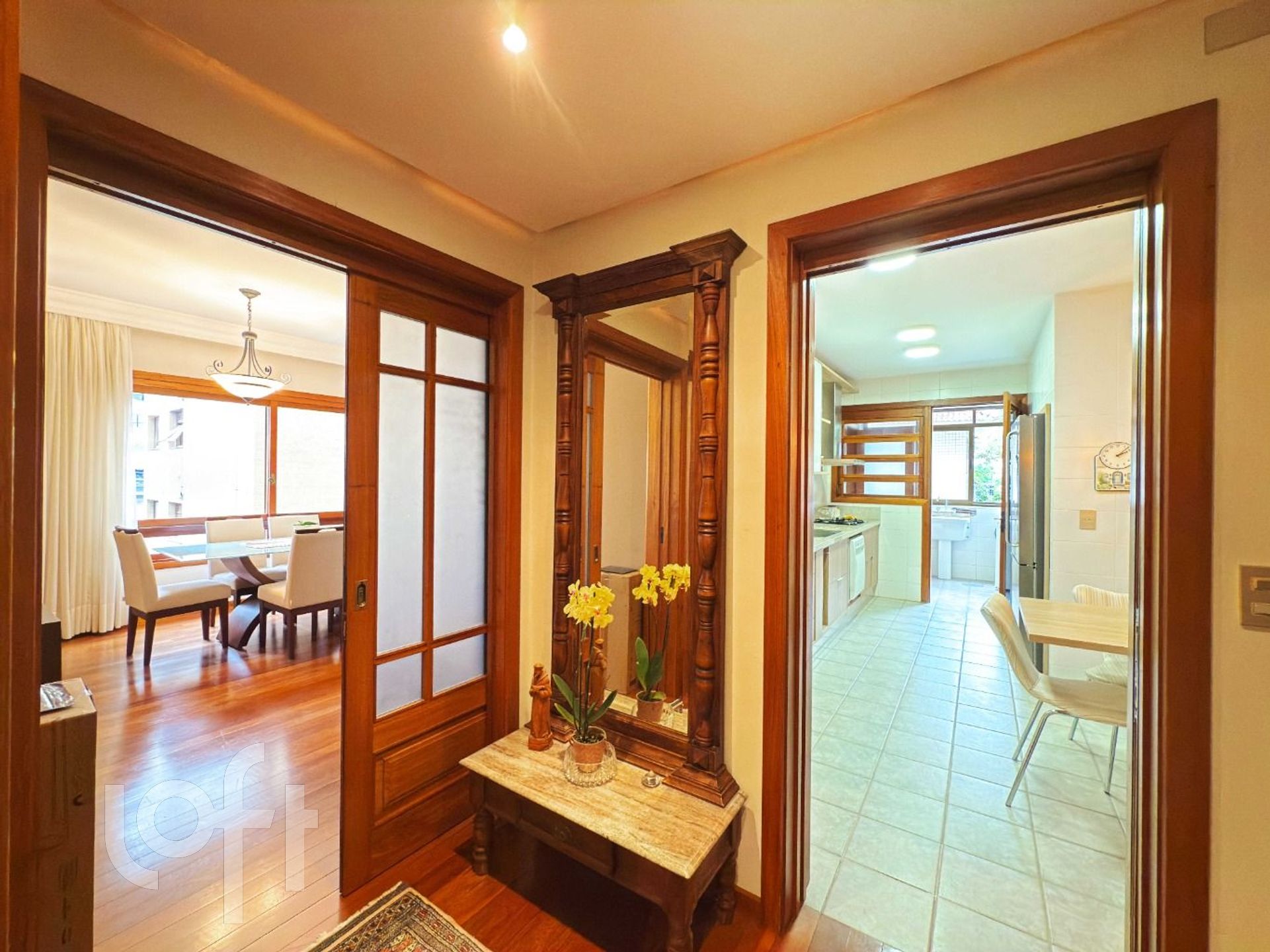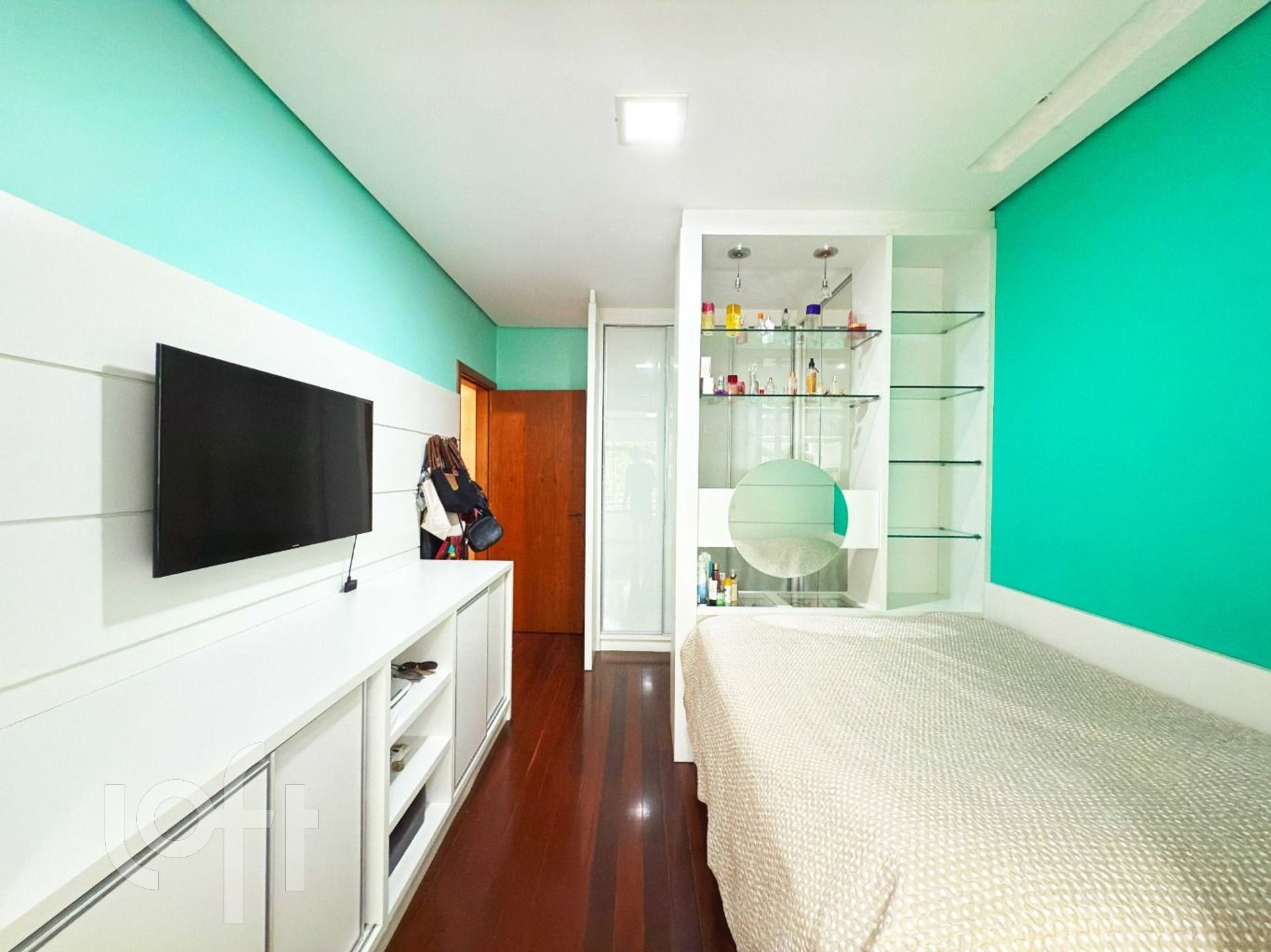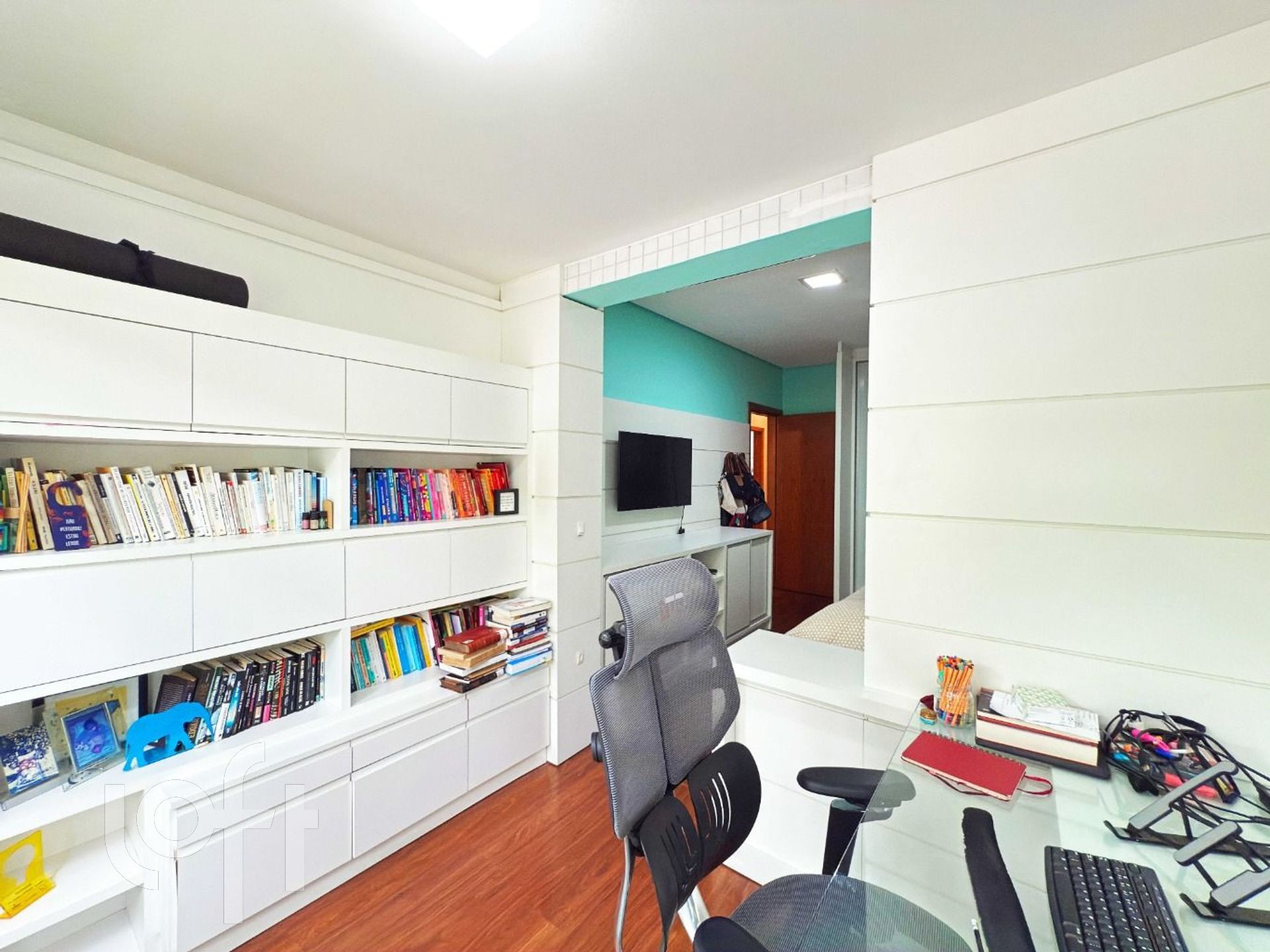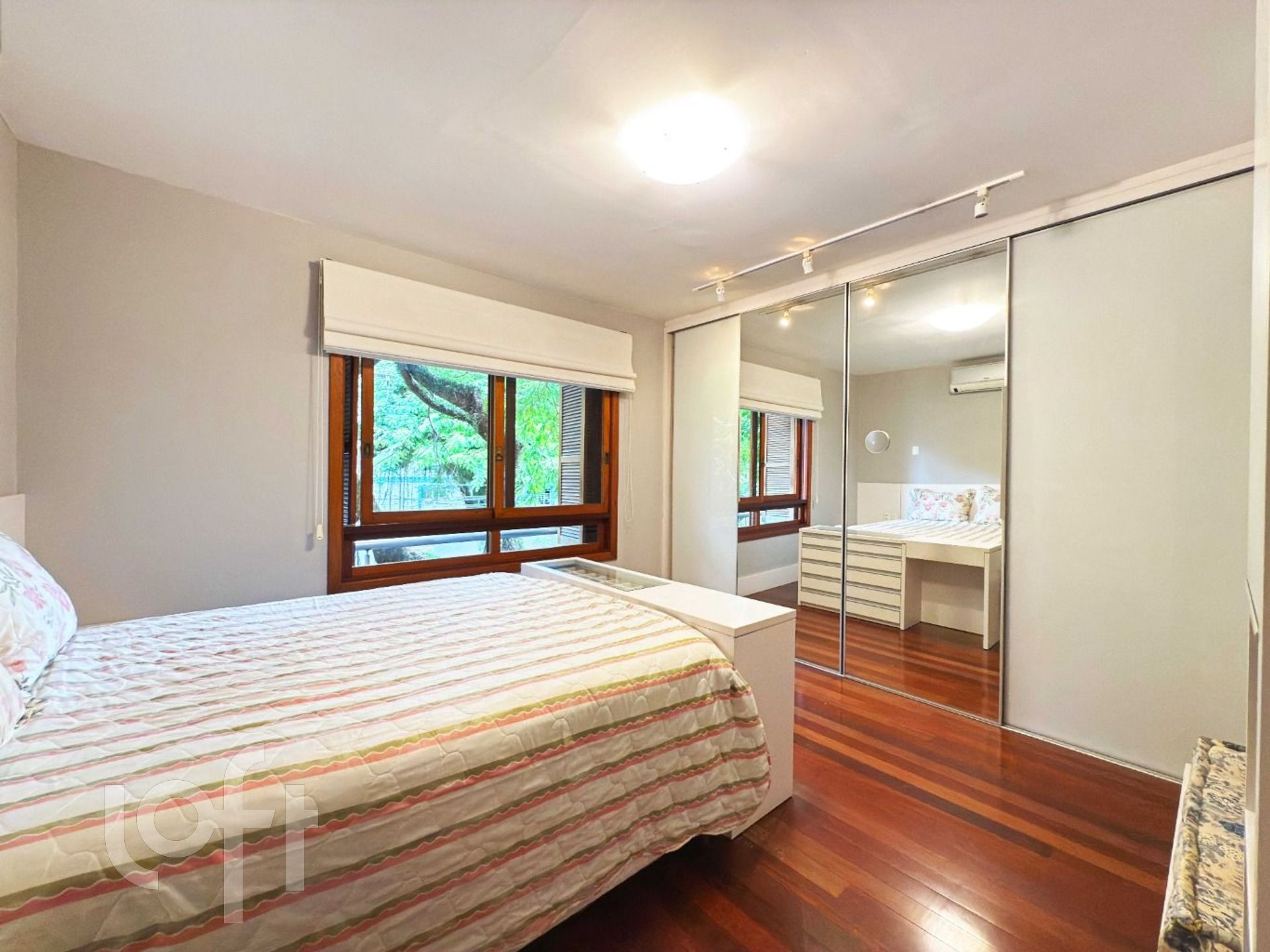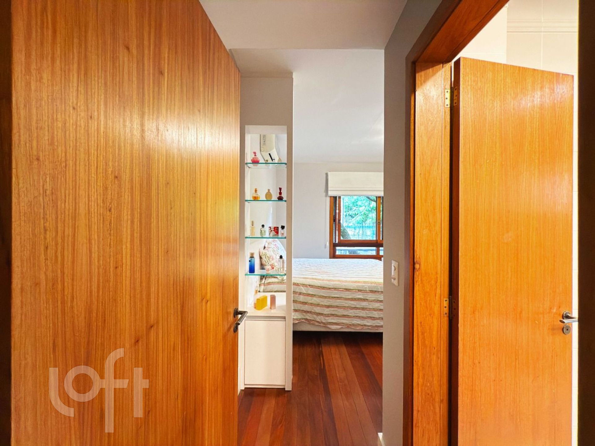 Na área íntima, há uma circulação com espaço versátil, atualmente utilizado como rouparia, mas que pode ser facilmente adaptado para home office ou outro uso conforme a necessidade. Os dois dormitórios de solteiro possuem sacada, sendo que um deles foi integrado ao quarto. O terceiro dormitório, uma suíte, proporcional ao casal conforto e privacidade.