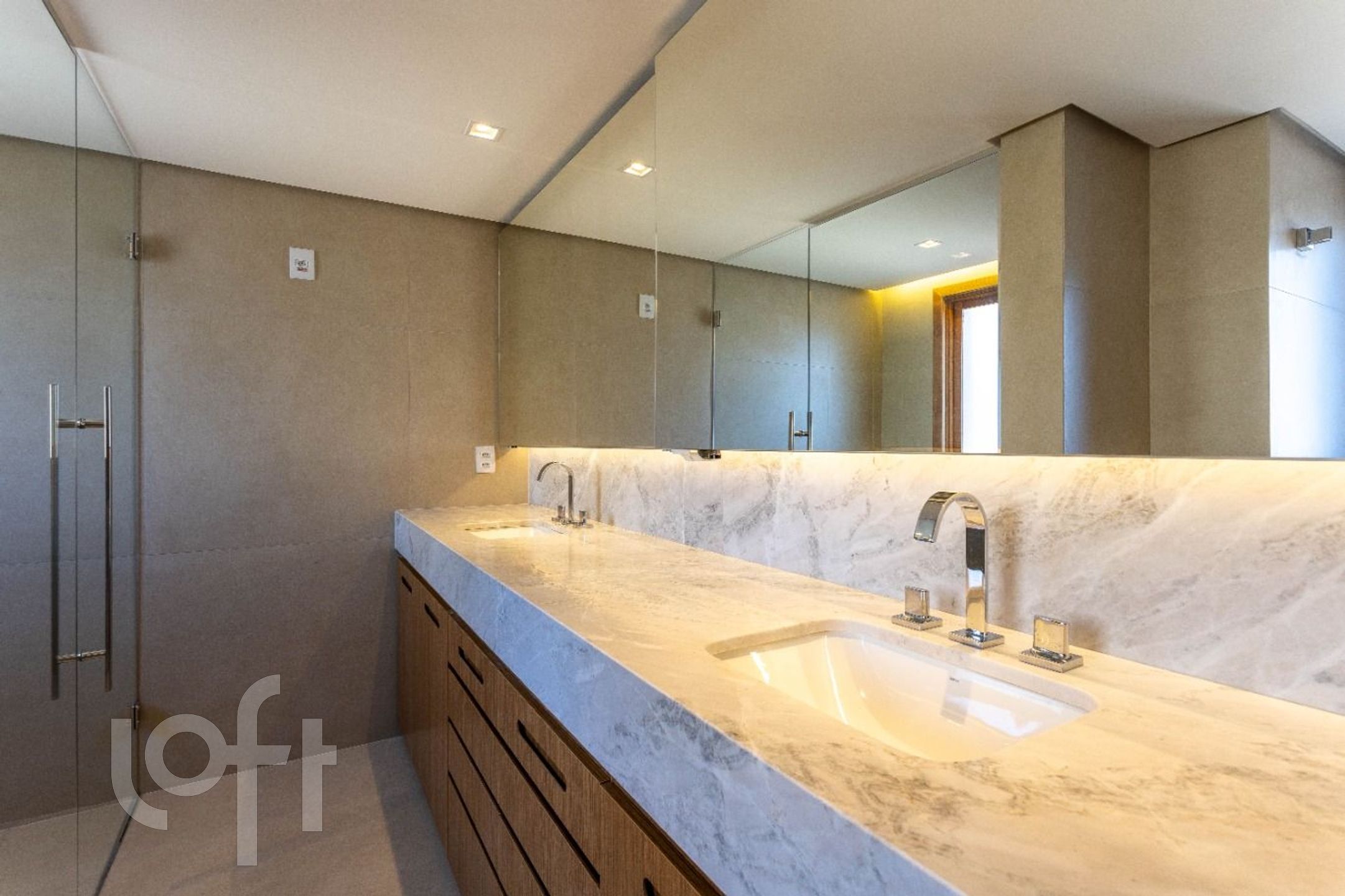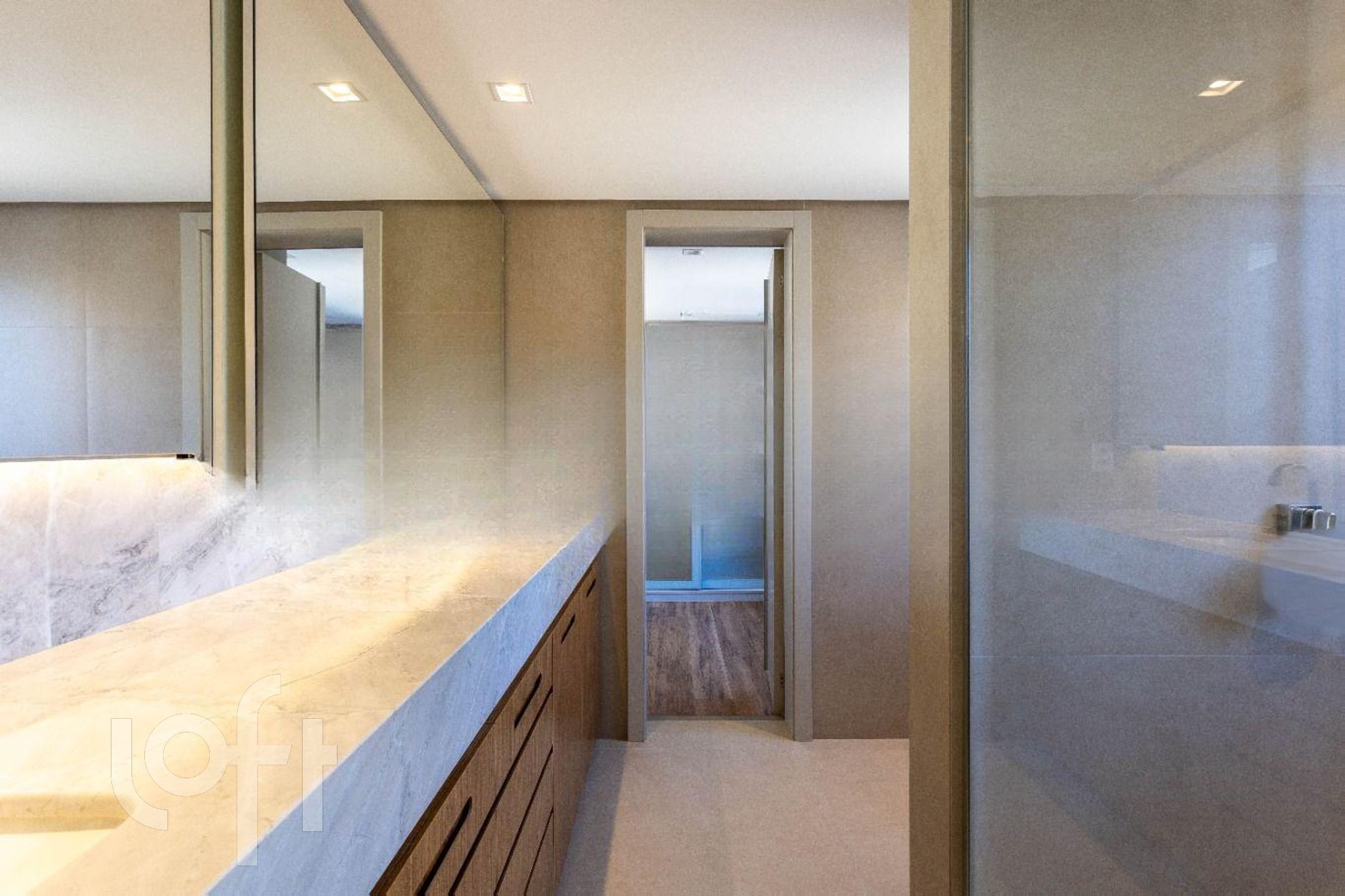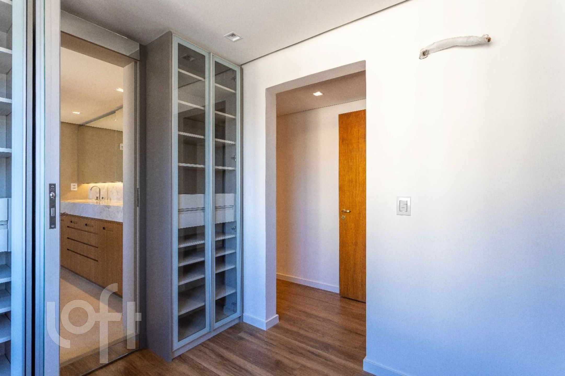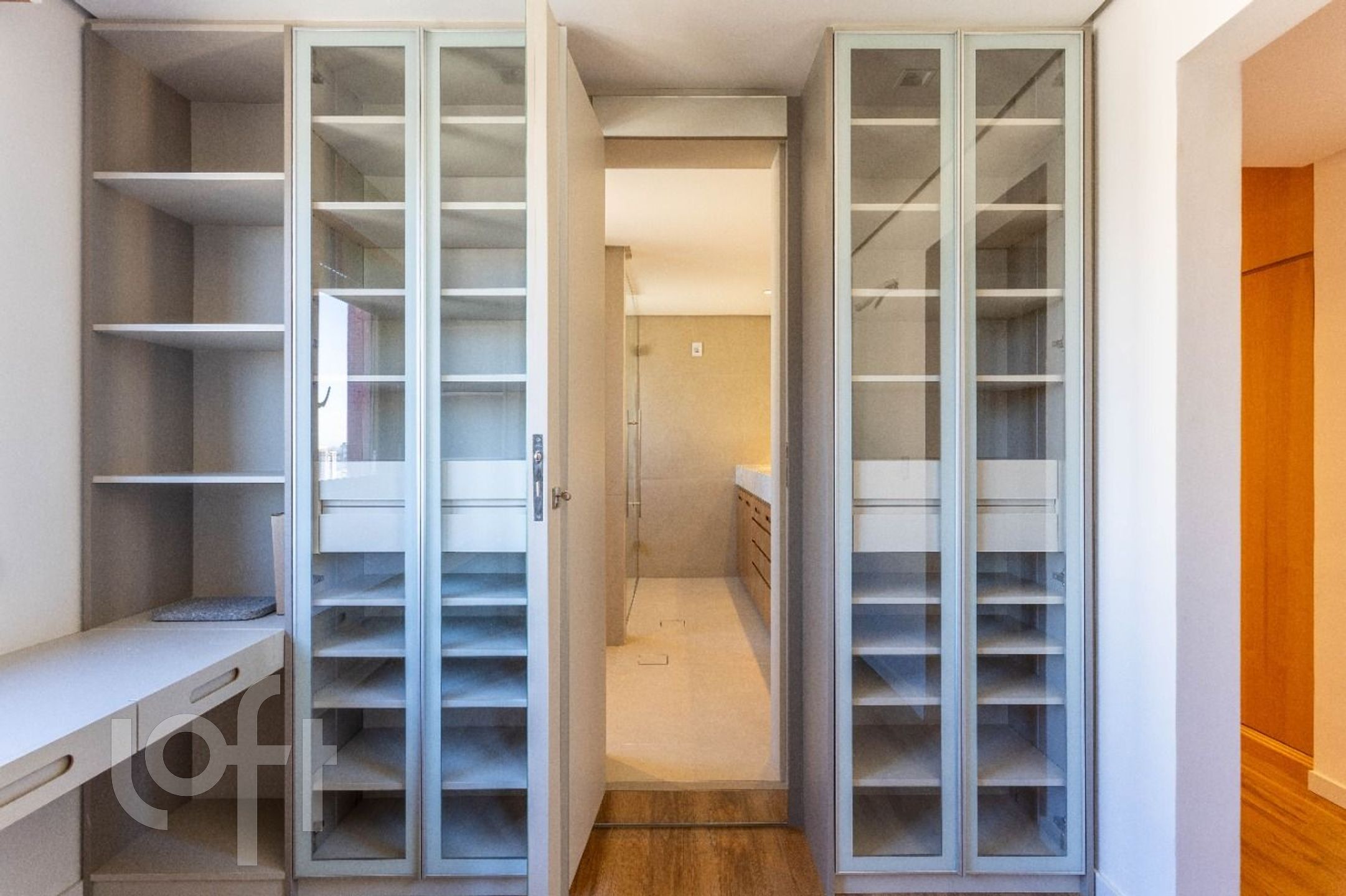 A área íntima surpreende com uma suíte master ampla, equipada com closet planejado e banheiro generoso, com bancada em granito, duas cubas e iluminação natural, proporcionando uma verdadeira experiência de spa. A segunda suíte, igualmente elegante, conta com móveis em laca moderna e excelente aproveitamento de armários.