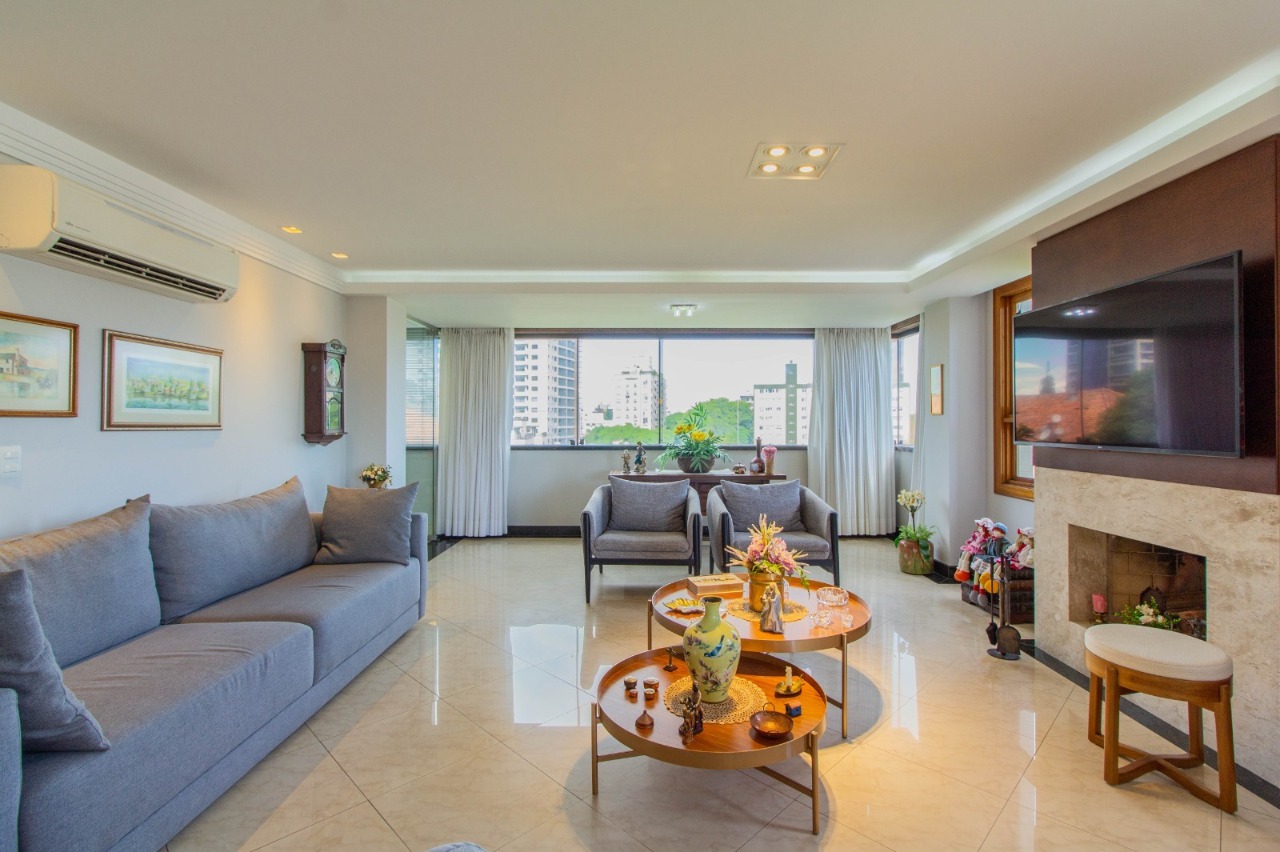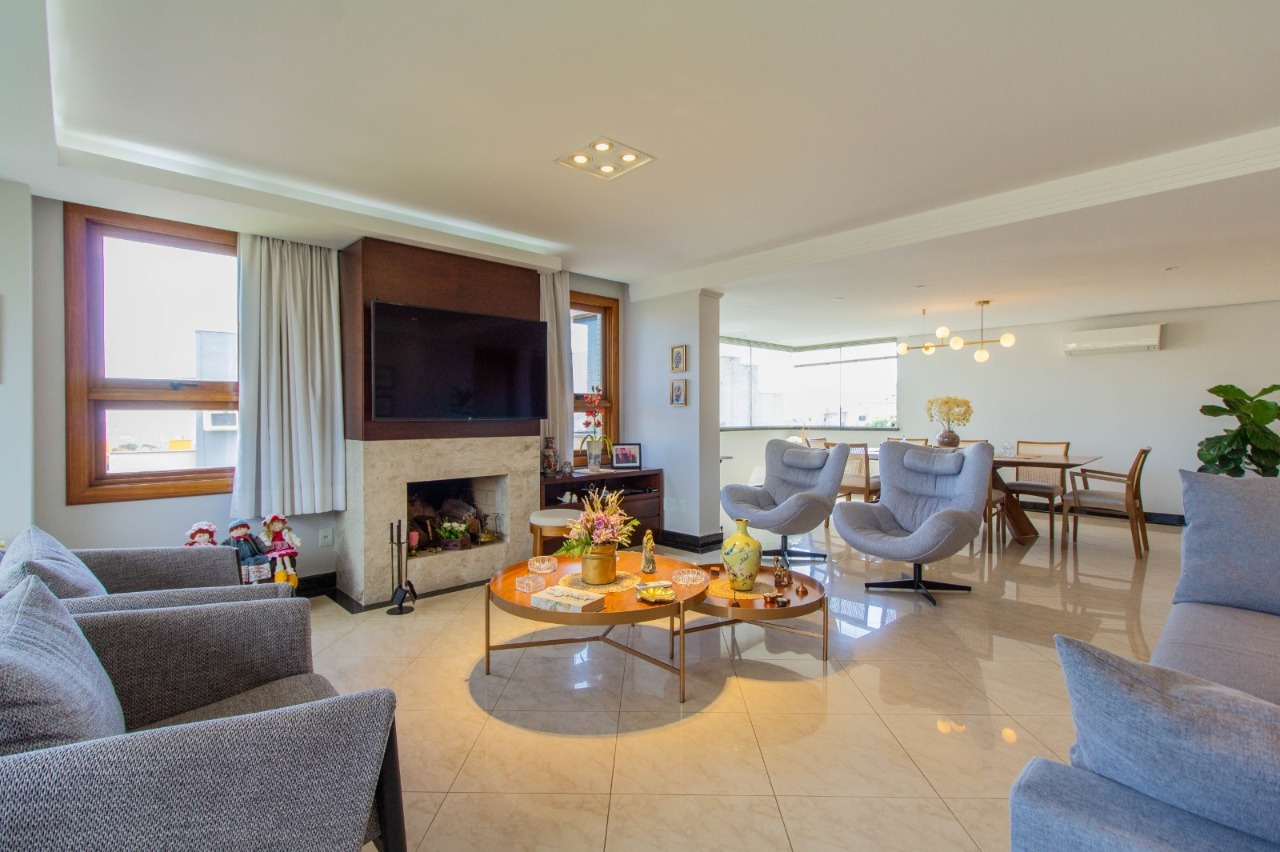 Excelente apartamento com 170 m² privativos, 3 dormitórios (sendo uma suítes), amplo living com lareira, churrasqueira e ambientes bem distribuídos. Semi mobiliado, , localizado em andar alto, com apenas um apartamento por andar, garantindo total privacidade e silêncio.