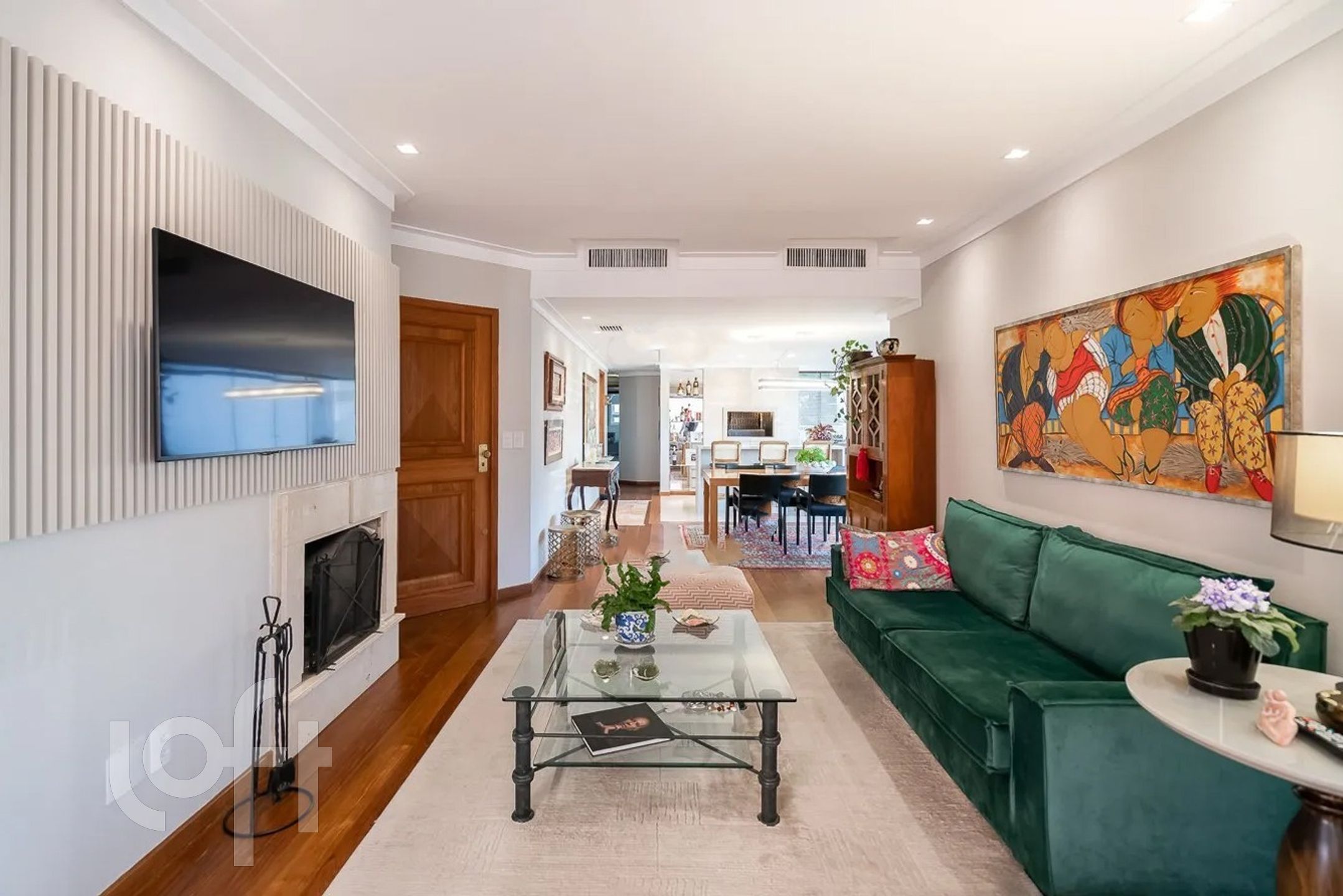 Ao entrar, você será recebido por uma sala de estar ampla, perfeita para desfrutar de momentos agradáveis em família. Aconchegue-se ao redor da lareira, ideal para as noites mais frias, e desfrute da atmosfera acolhedora que esse ambiente proporciona.