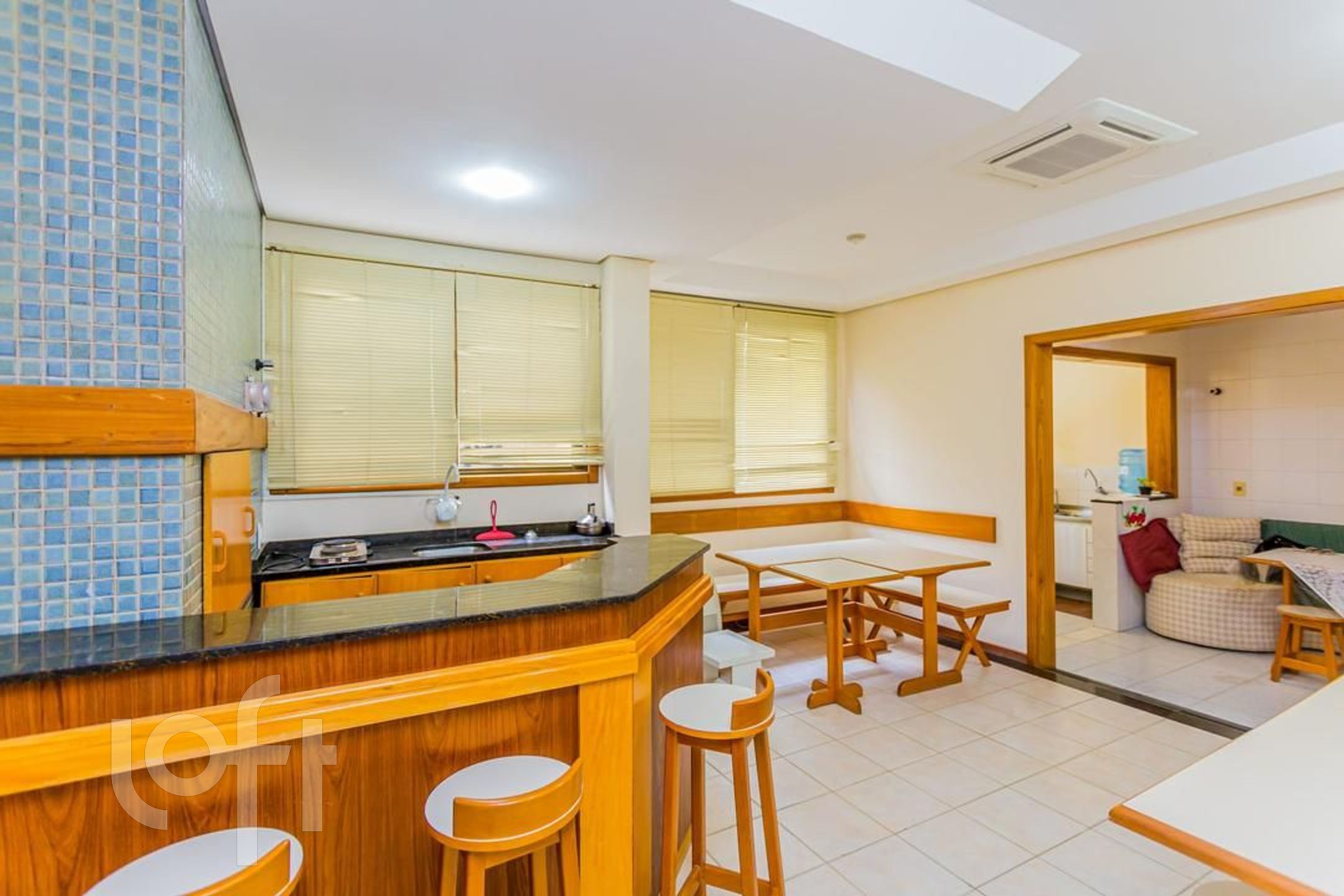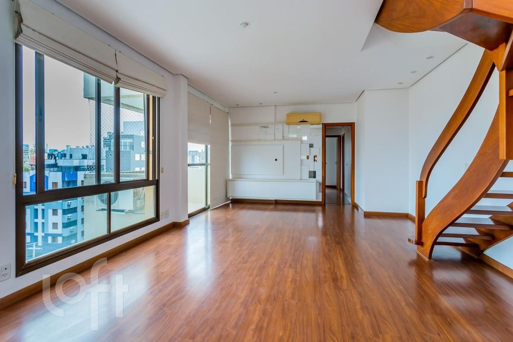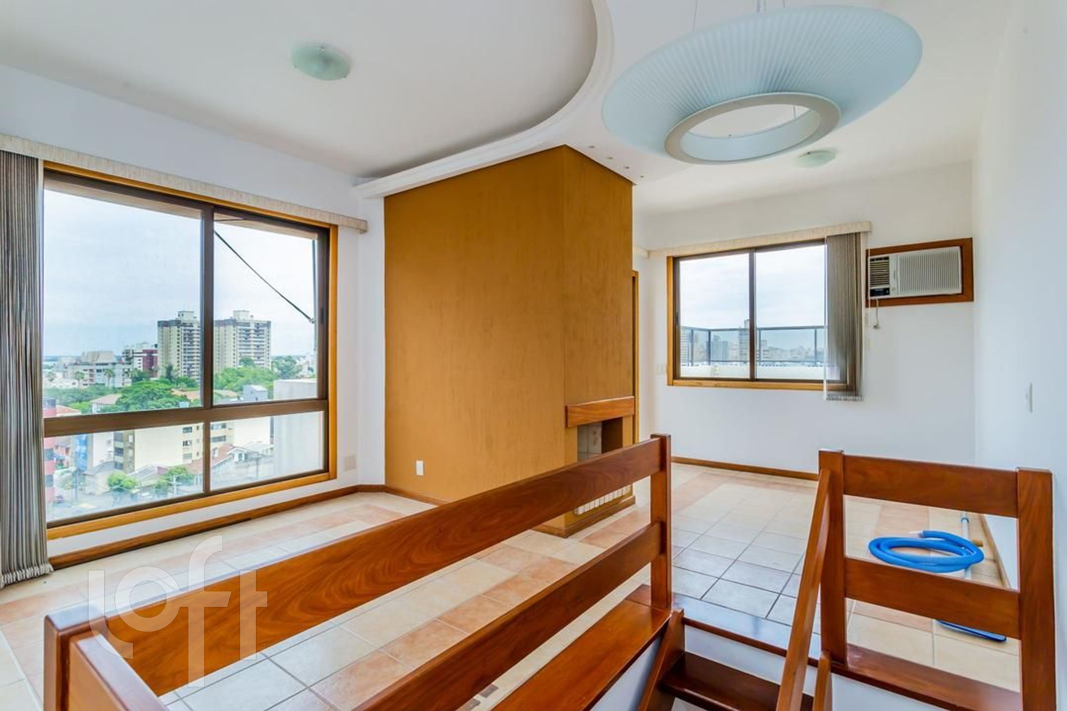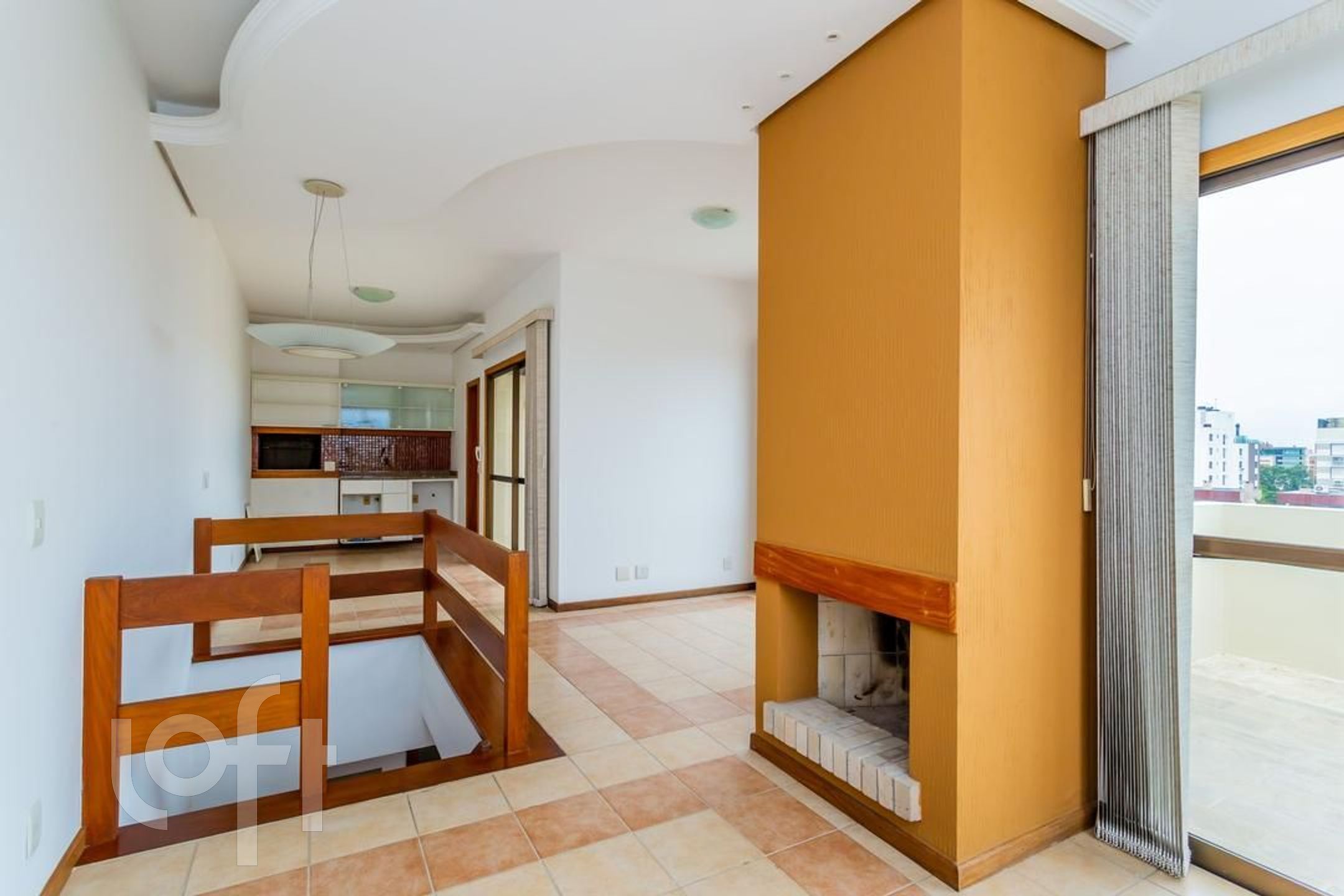 Cobertura duplex, no primeiro andar são 02 dormitórios, sendo uma suíte, banheiro social, living amplo com sacada e espaço bem definido para 02 ambientes, cozinha e área de serviço separada. No piso superior mais uma sala, espaço gourmet com churrasqueira e armários, mais um banheiro completo, lareira e 2 terraços, sendo um deles com piscina.