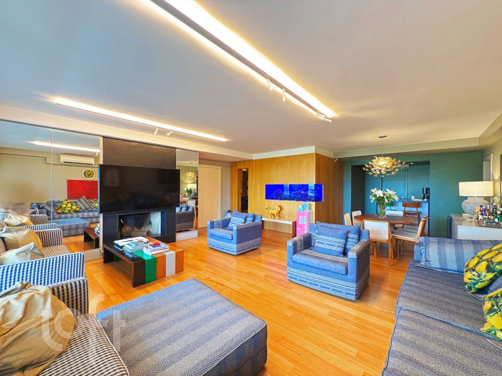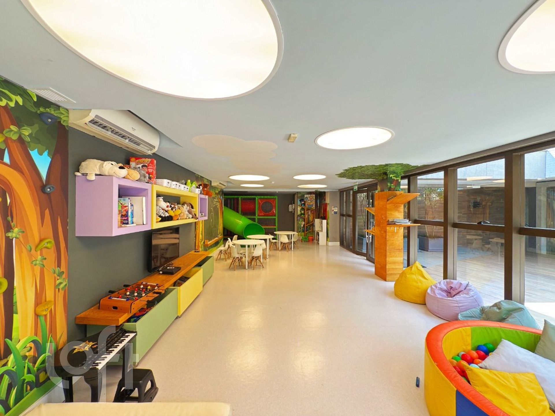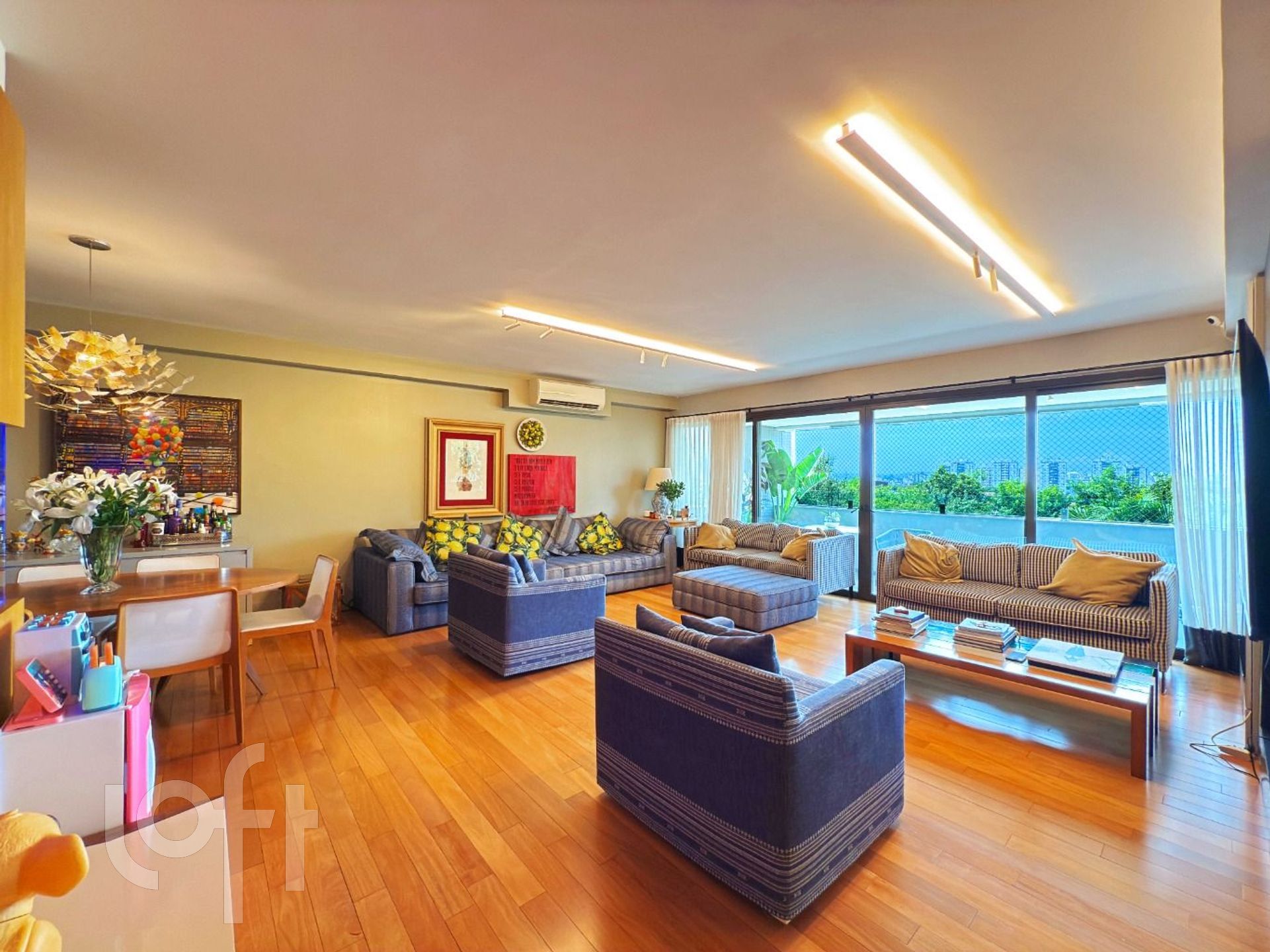 Todos os móveis fixos permanecem e a climatização em todo o imóvel.