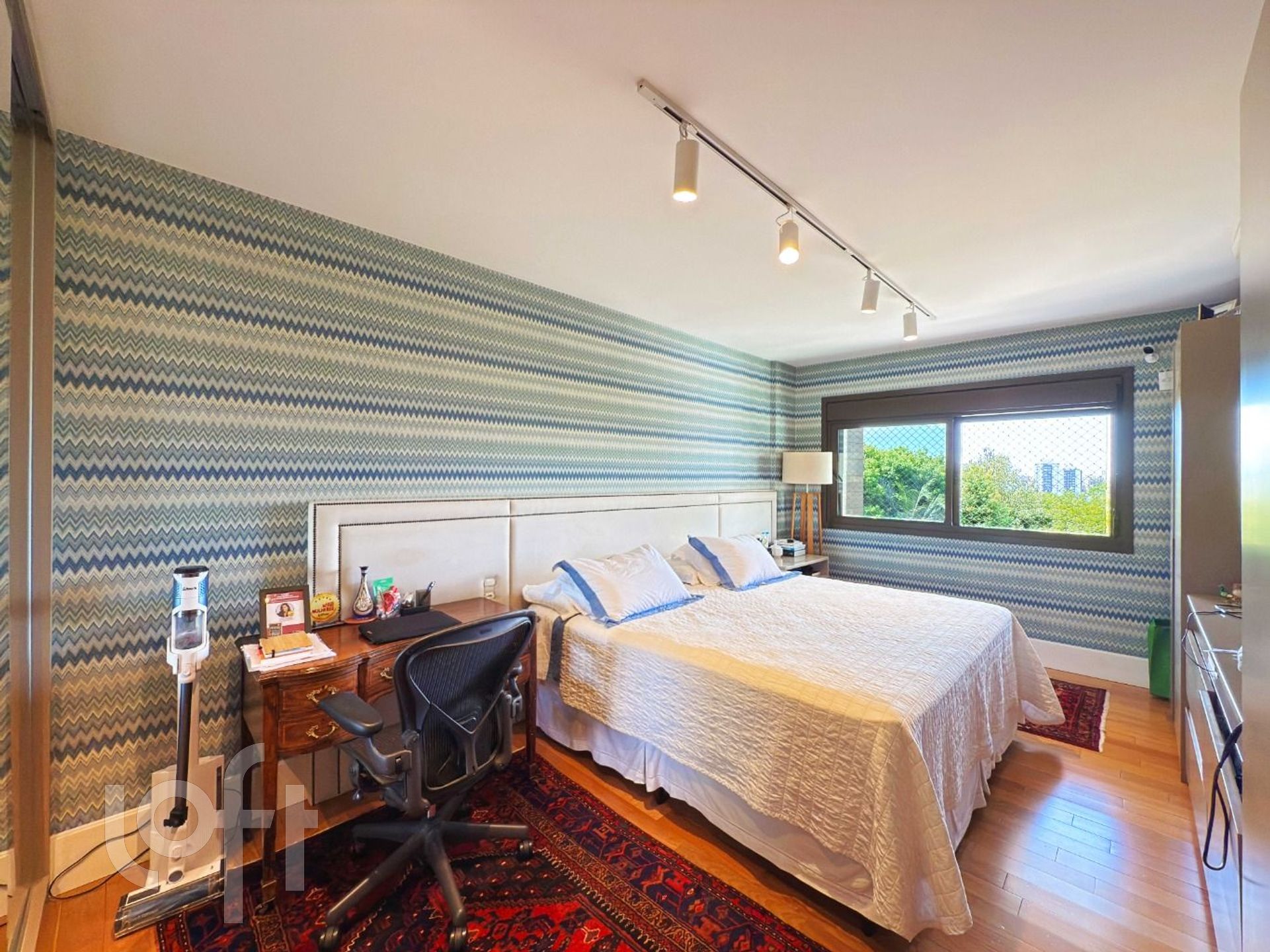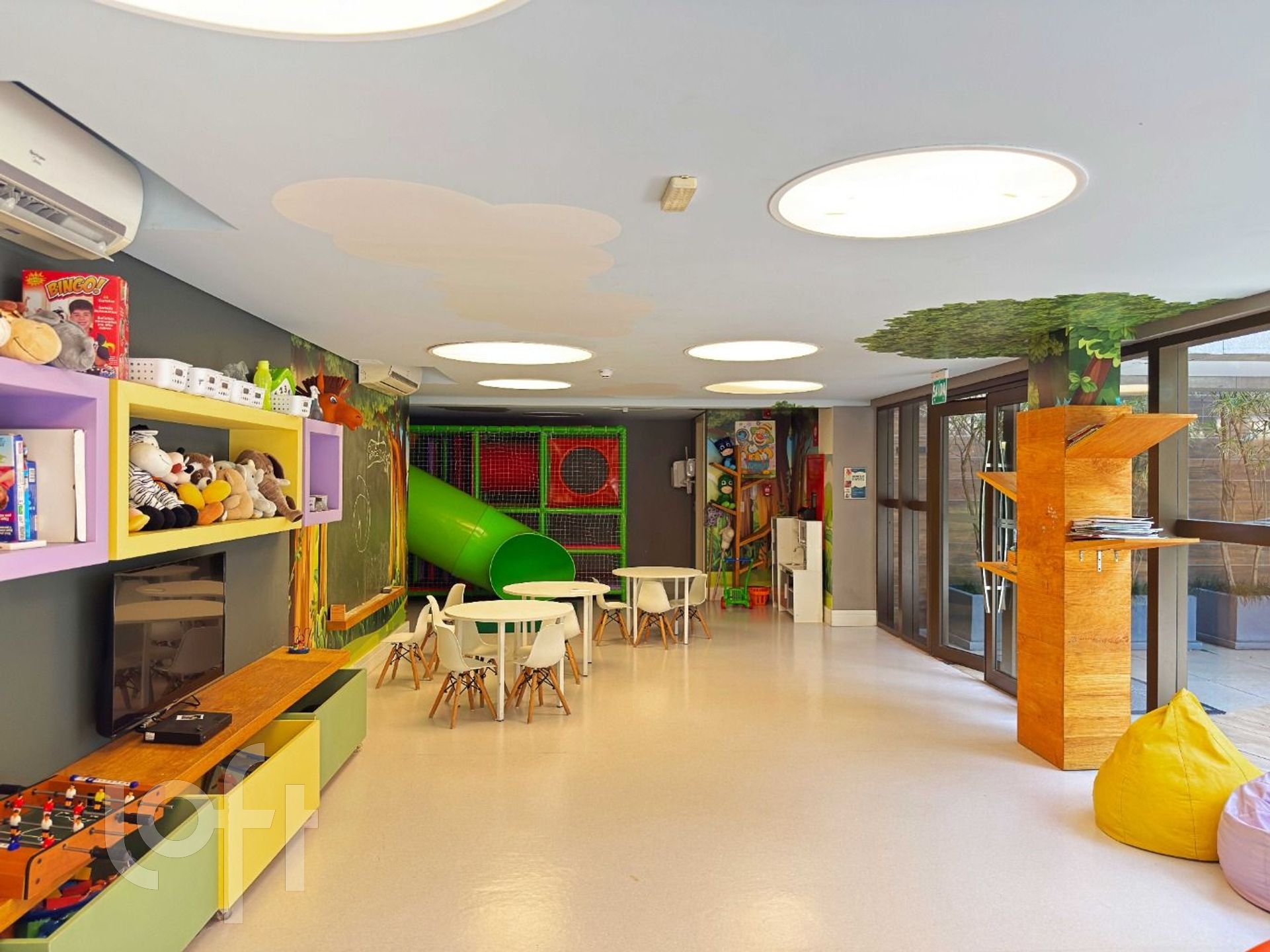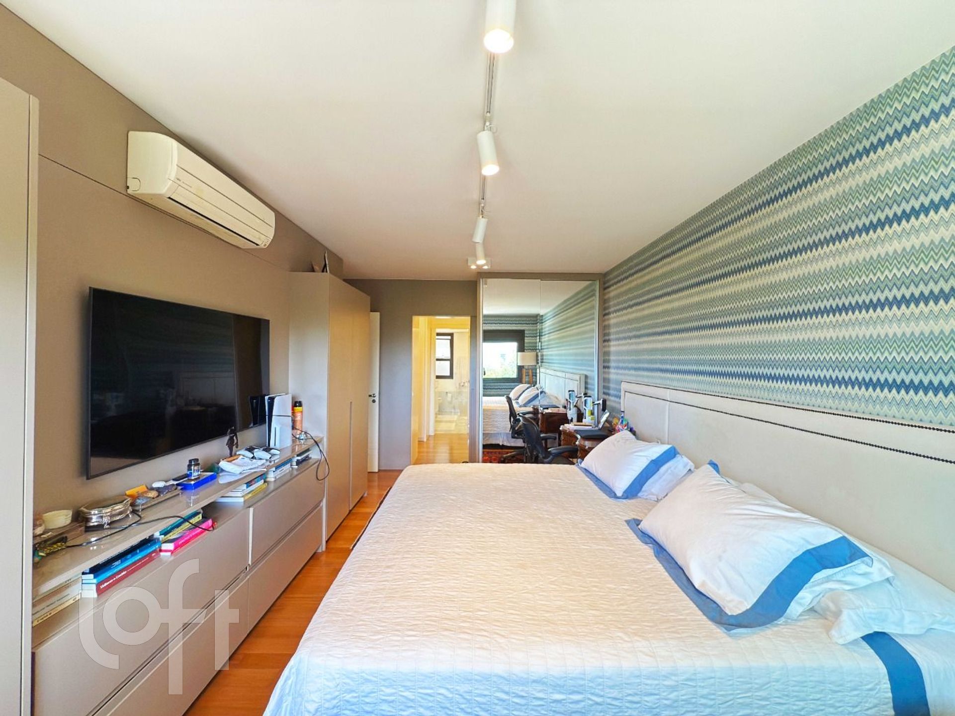 Todos os móveis fixos permanecem e a climatização em todo o imóvel.