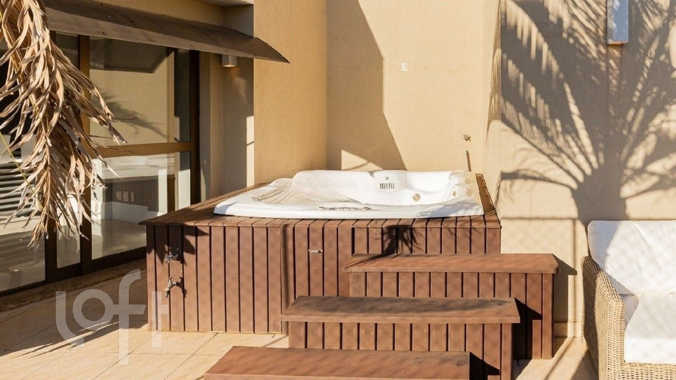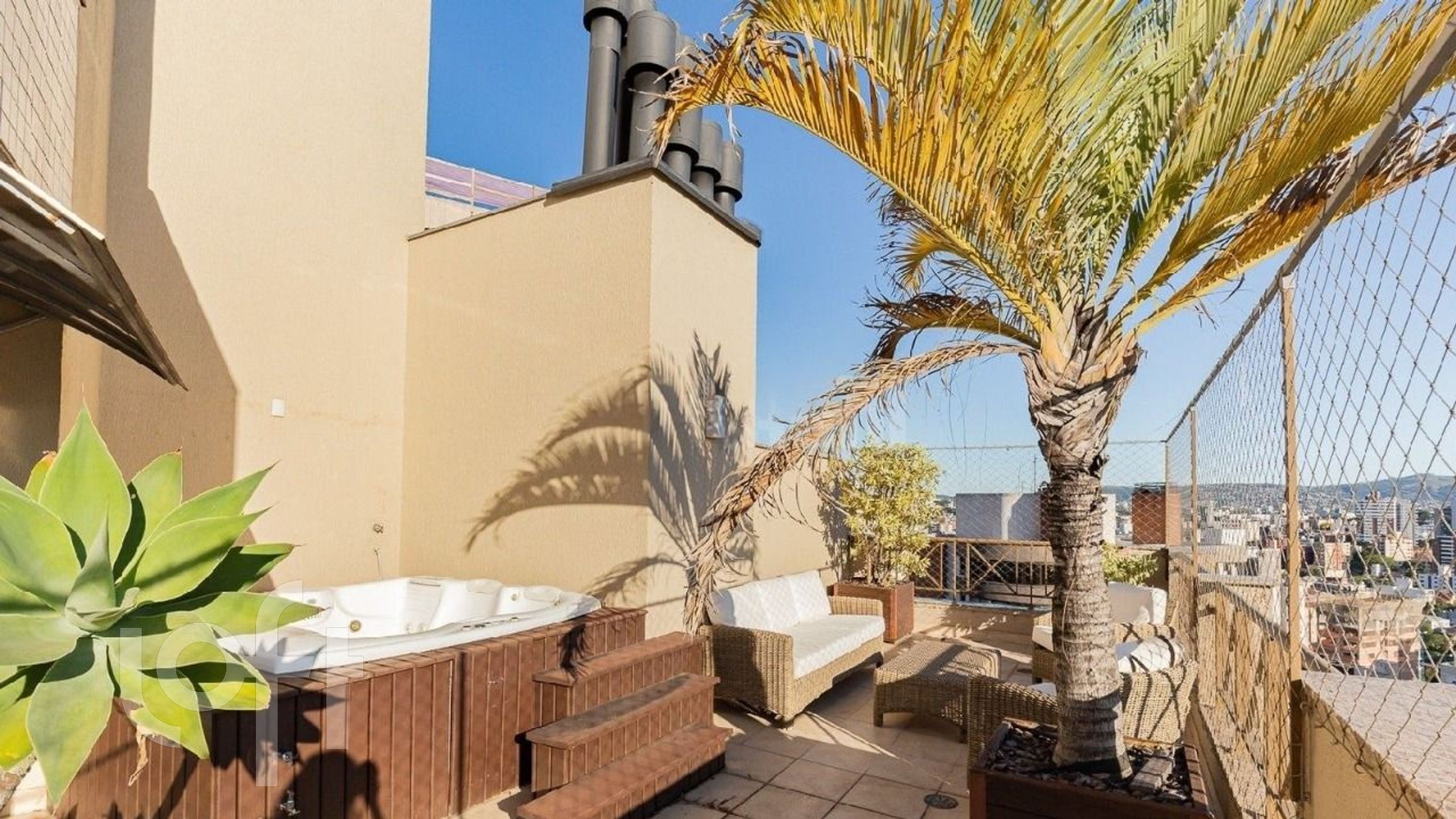 Terraço com hidromassagem externa e linda vista definida.