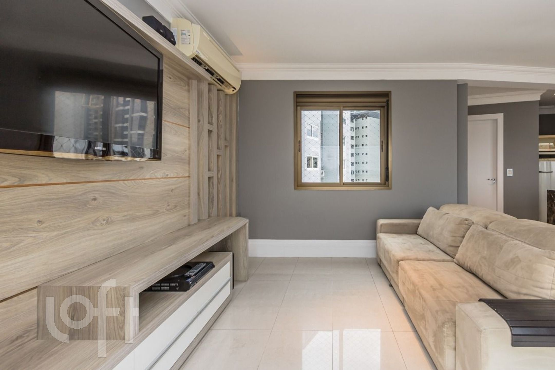 Amplo living 2 ambientes com lareira, cozinha americana equipada, área de serviço separada, 02 dormitórios