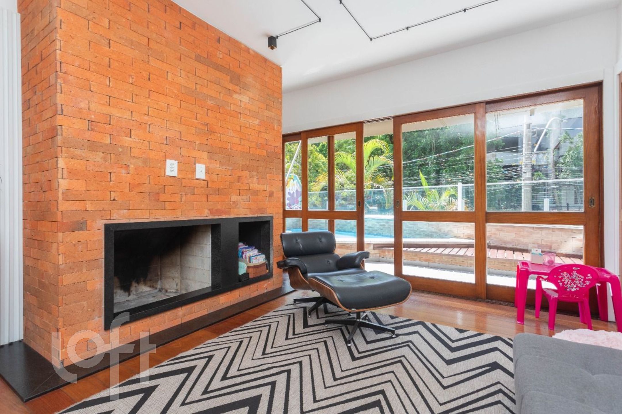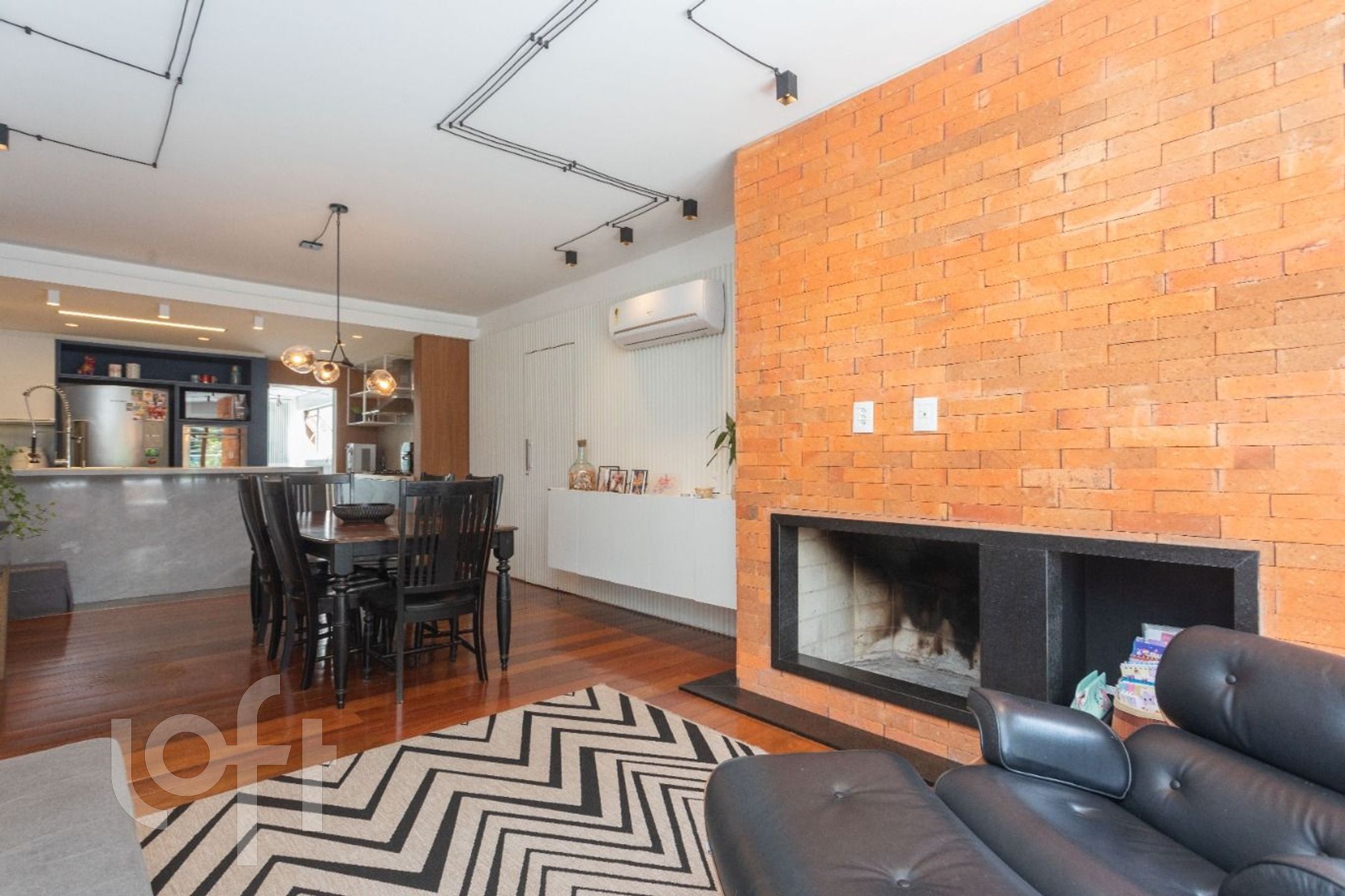 Social: Living para 3 ambientes com lareira e lavabo.