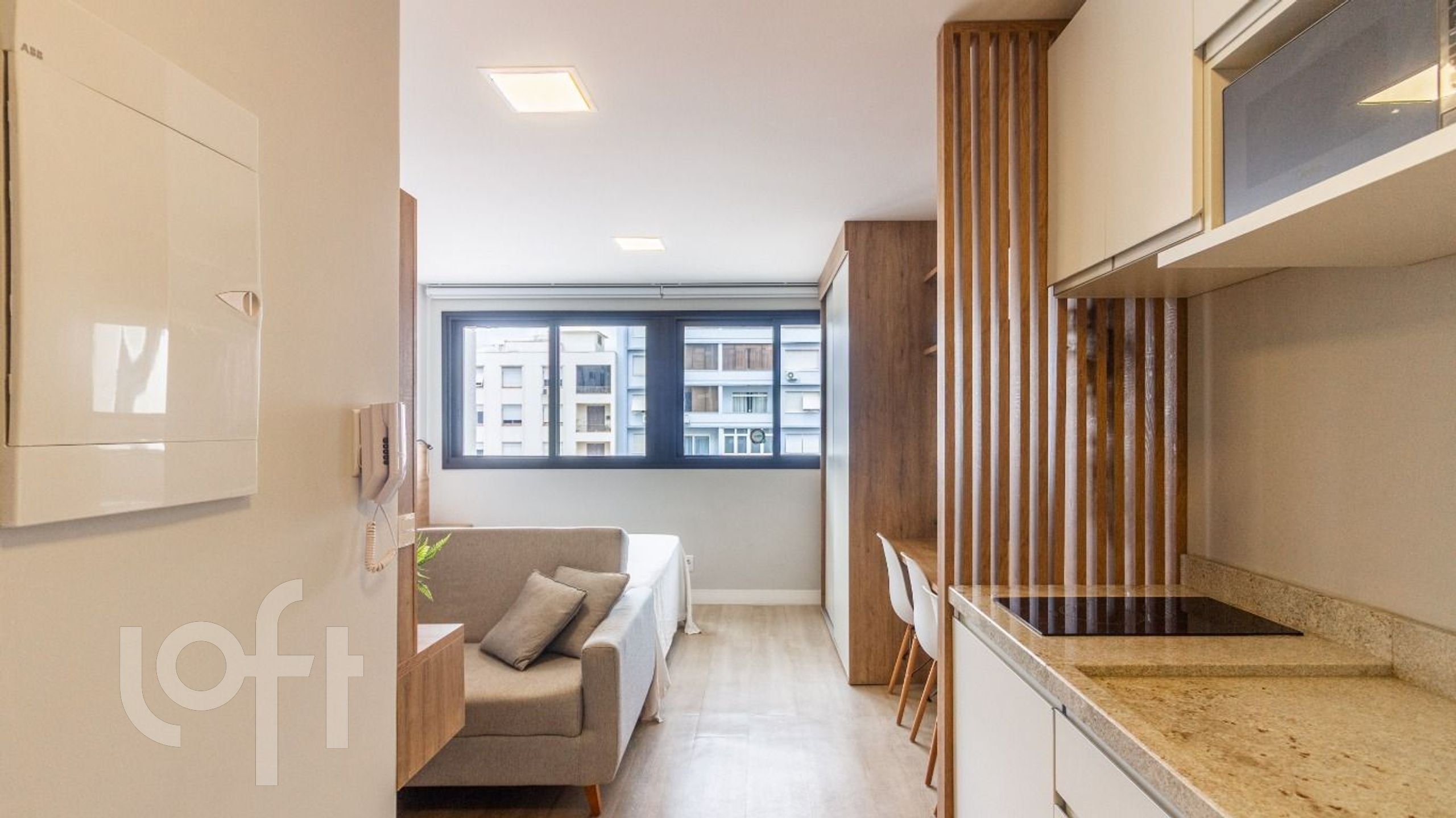 Pronto para entrar e morar ou para entrar e faturar com a locação! Investimento perfeito para locar por temporada no AIRBNB ou Booking. Totalmente mobiliado e sob medida- Distribuído em cozinha com armários sob medida, geladeira, cooktop por indução e microondas. Banheiro social totalmente equipado, espaço sala/quarto integrado, equipado com ar condicionado split, cama de casal, sofá, hack com TV, roupeiro, bancada para trabalho ou estudo. Unidade de frente, com excelente luminosidade. Possibilidade de utilizar vaga condominial rotativa.