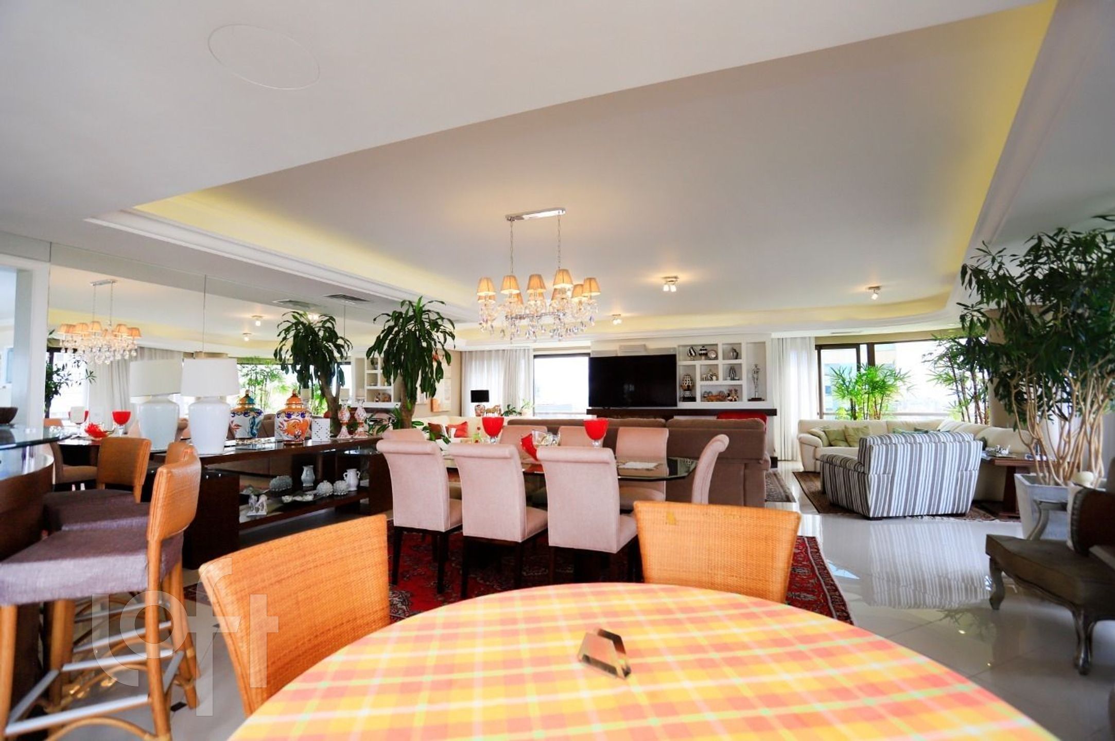 O Apartamento é semimobiliado com móveis planejados de alto padão, com um amplo living de 4 ambientes, lareira, churrasqueira e uma vista panorâmica espetacular. Os espaços com decoração de alto bom gosto e requinte refletem ambientes de aconchego e bem estar para os moradores.