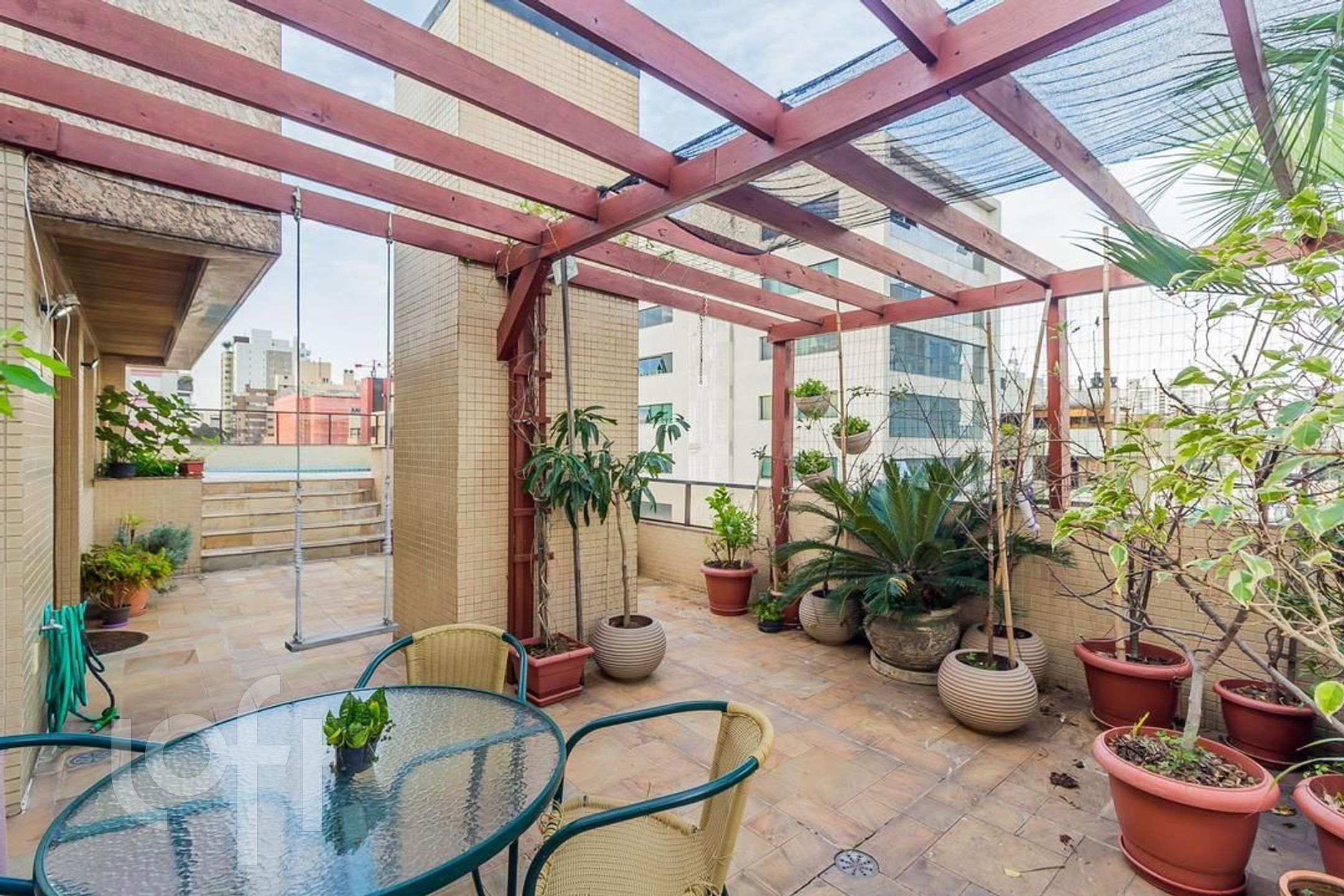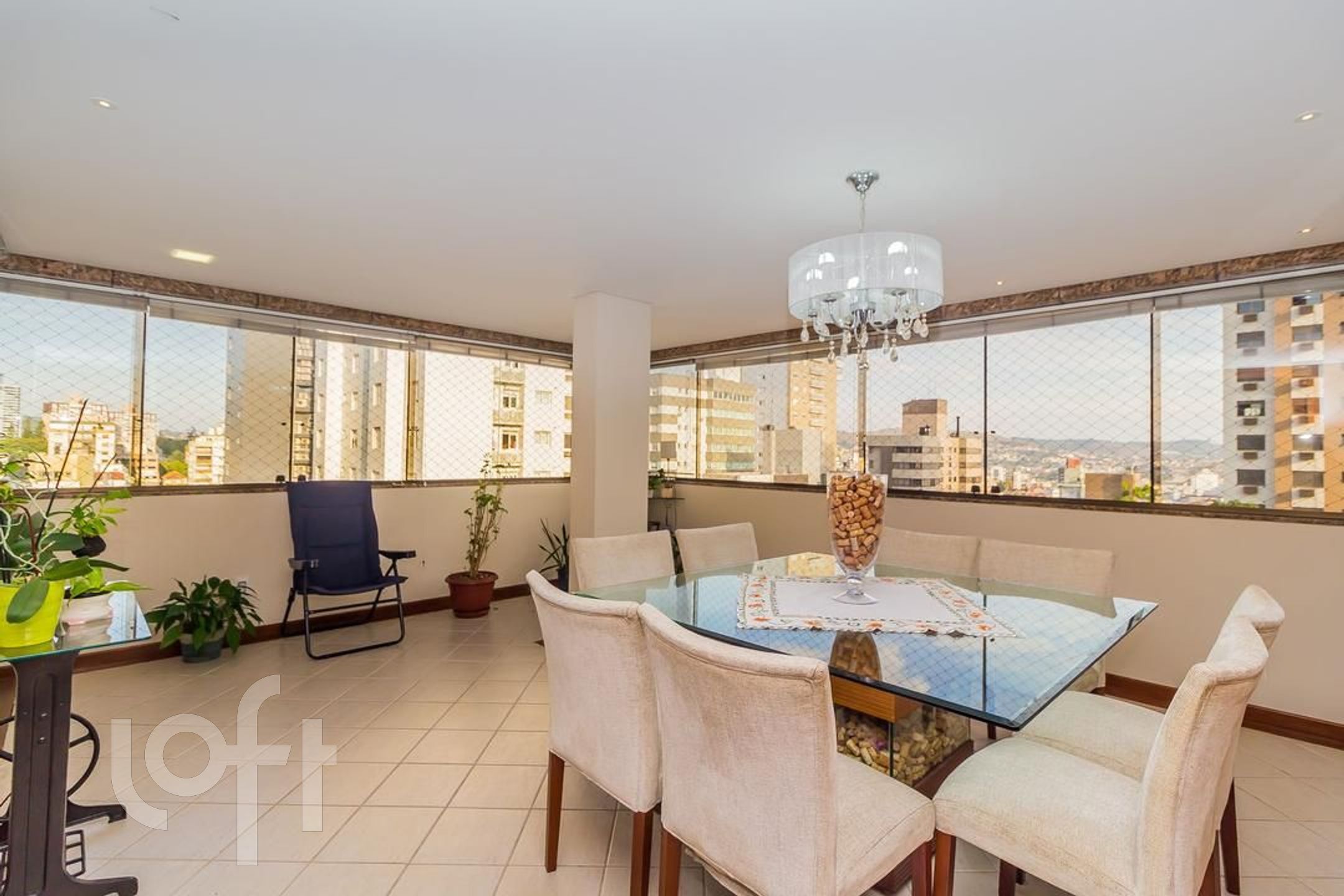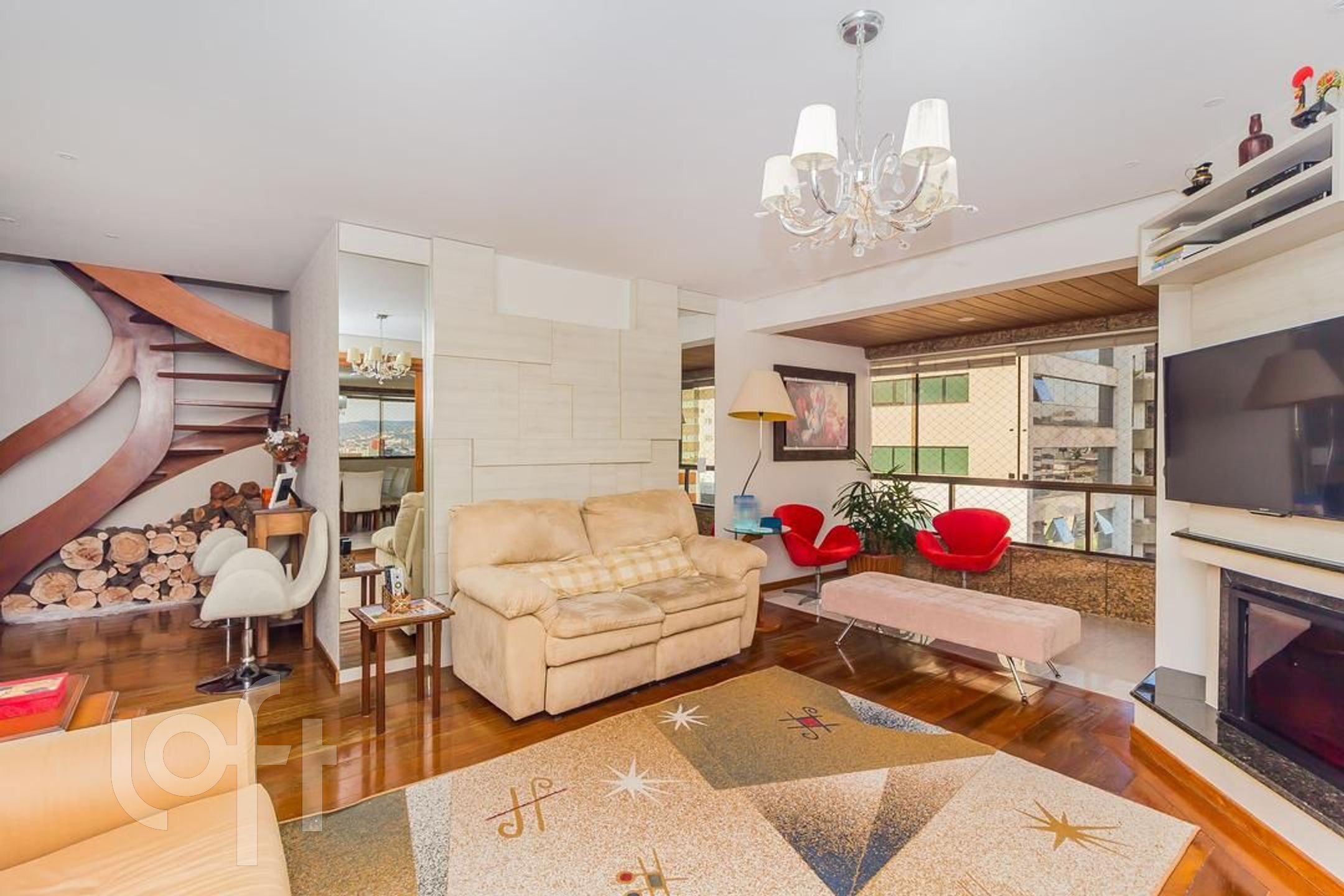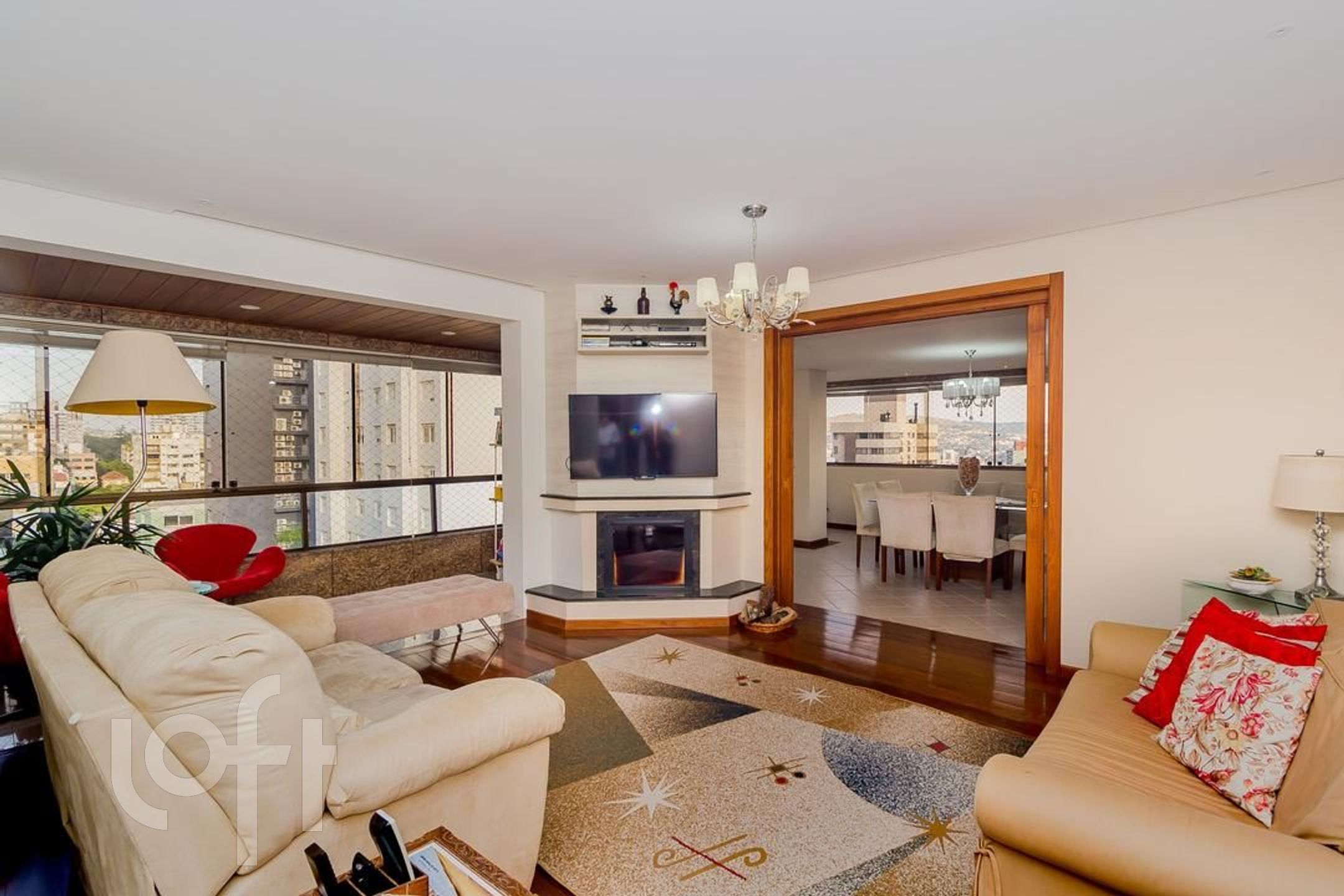Apartamento com 3 suítes, amplo living com lareira, lavabo, sacada fechada com churrasqueira cozinha e área de serviço. No segundo piso temos uma ampla sala com churrasqueira, um dormitório hoje transformado em escritório, espaço gourmet, amplo terraço com piscina e pergolado, uma vista definida.