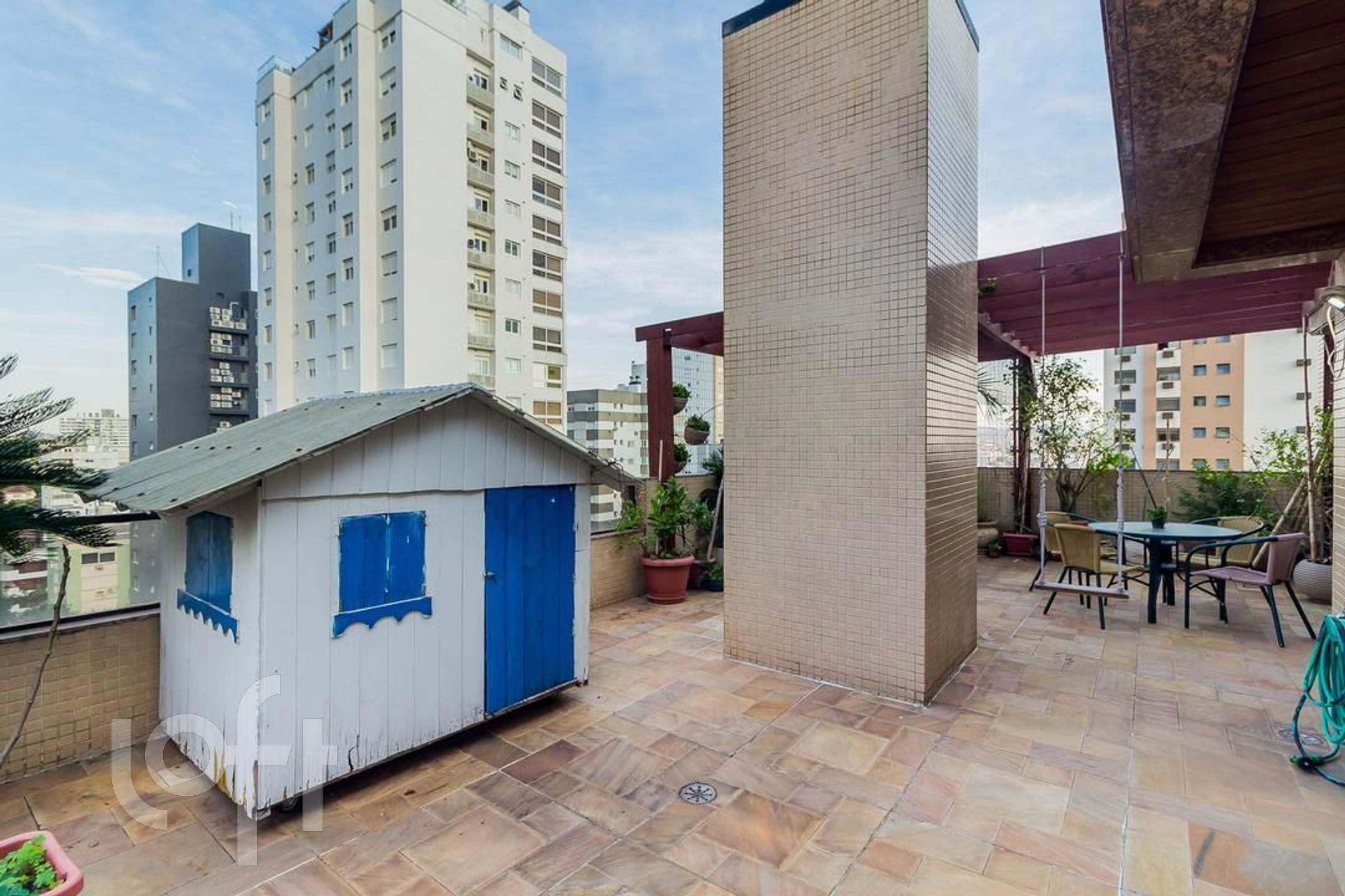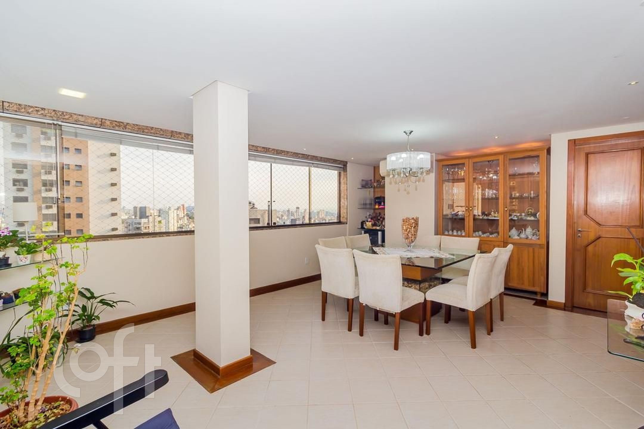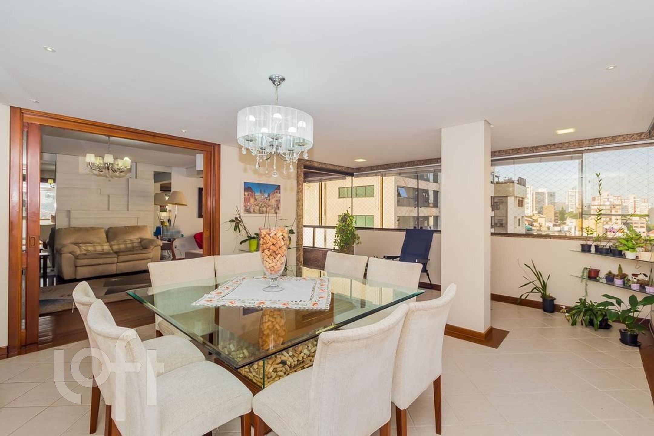 Apartamento com 3 suítes, amplo living com lareira, lavabo, sacada fechada com churrasqueira cozinha e área de serviço. No segundo piso temos uma ampla sala com churrasqueira, um dormitório hoje transformado em escritório, espaço gourmet, amplo terraço com piscina e pergolado, uma vista definida.