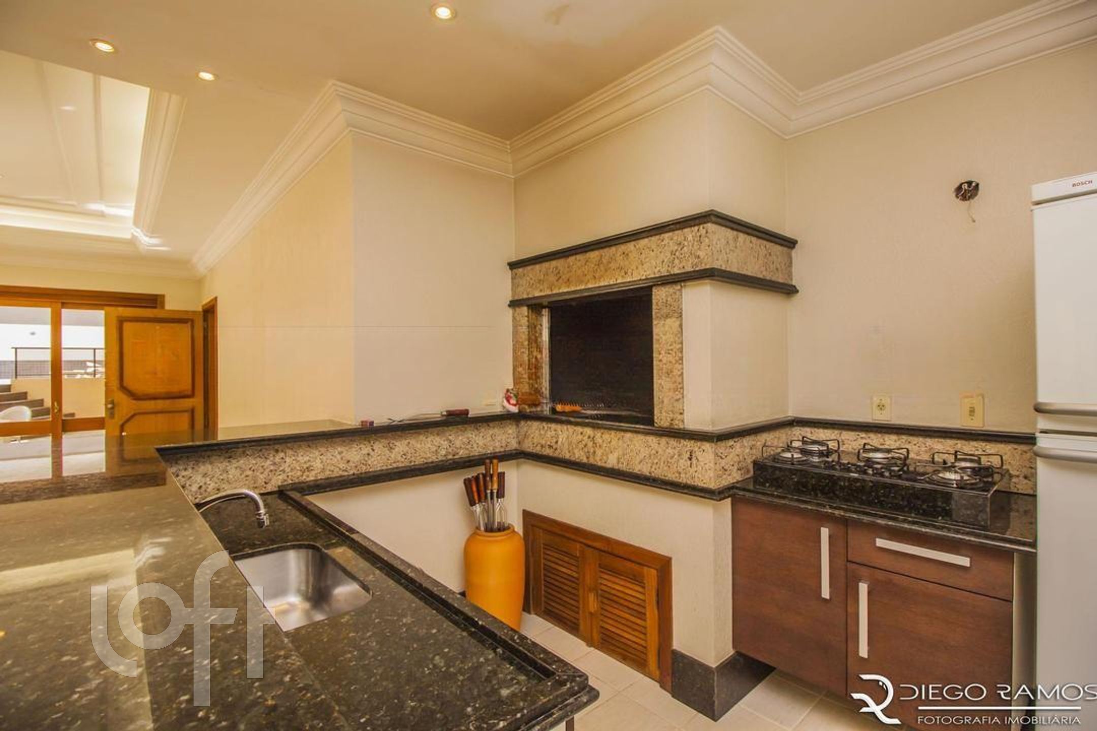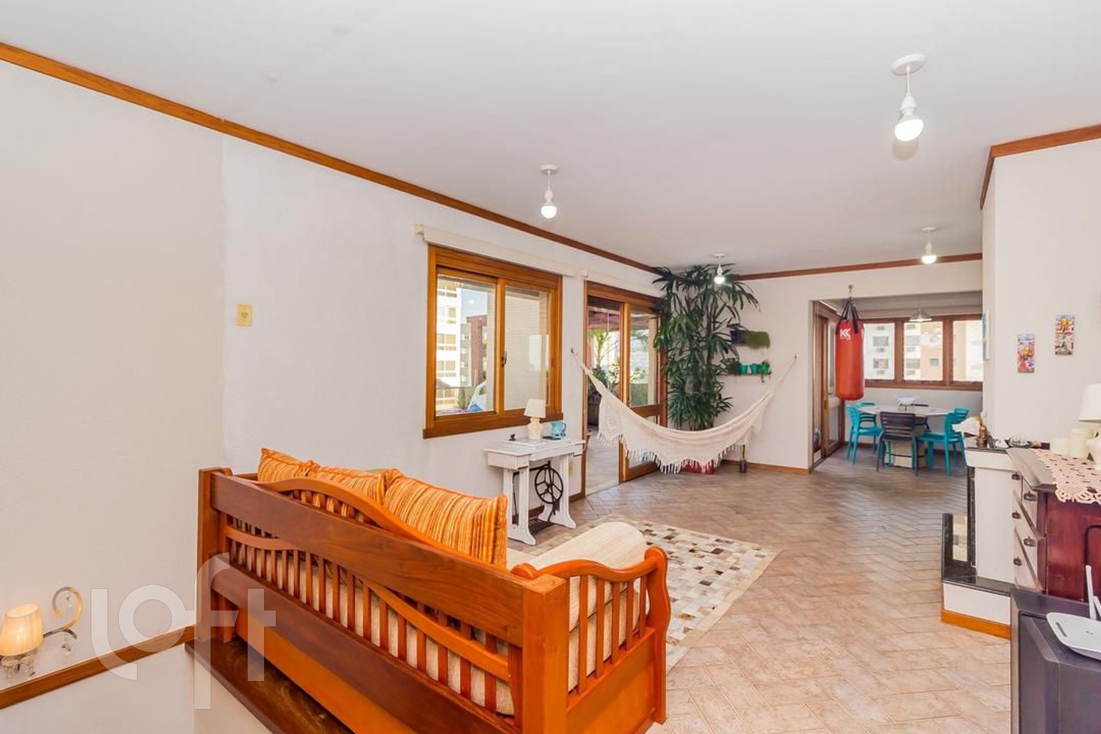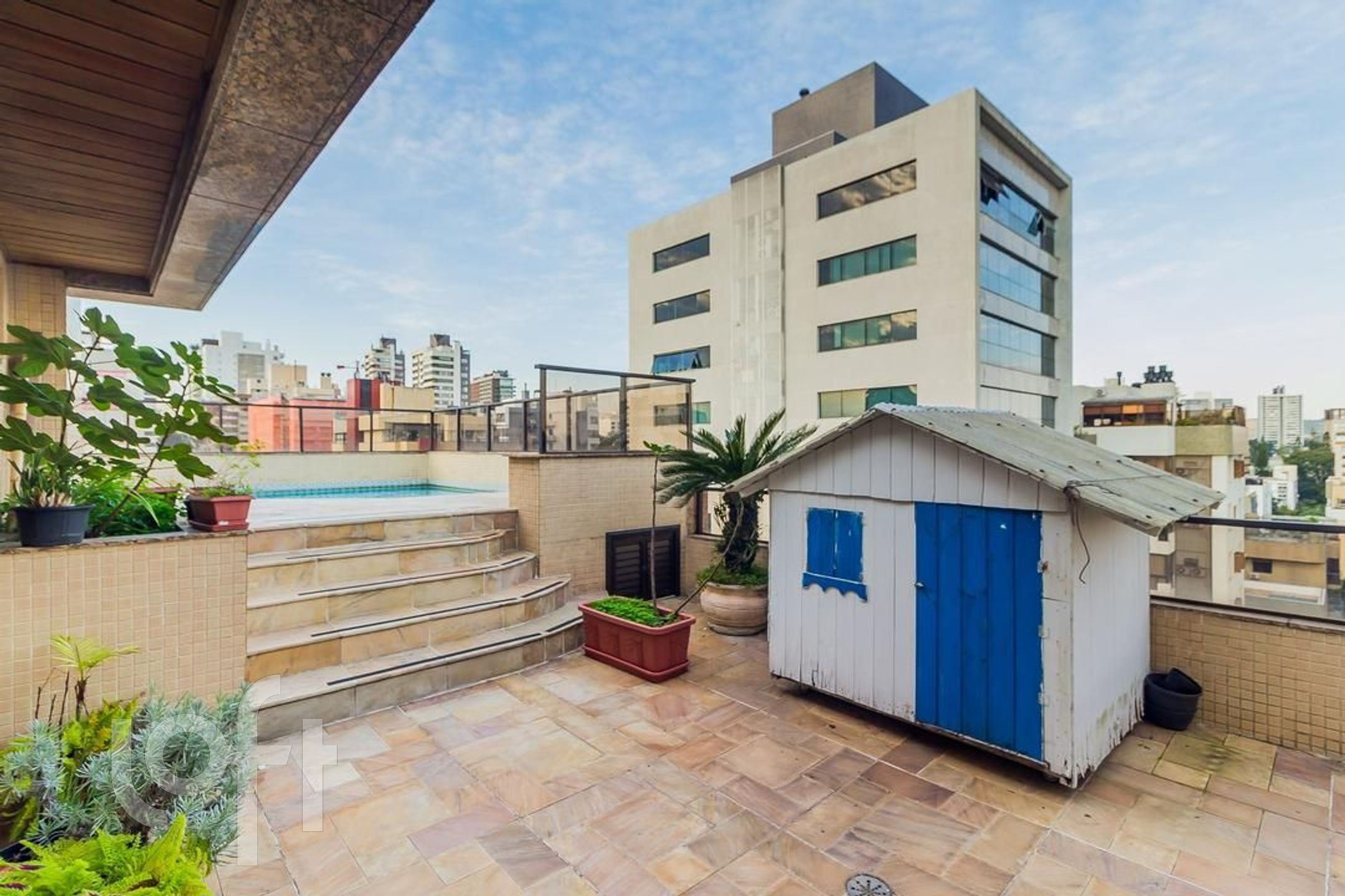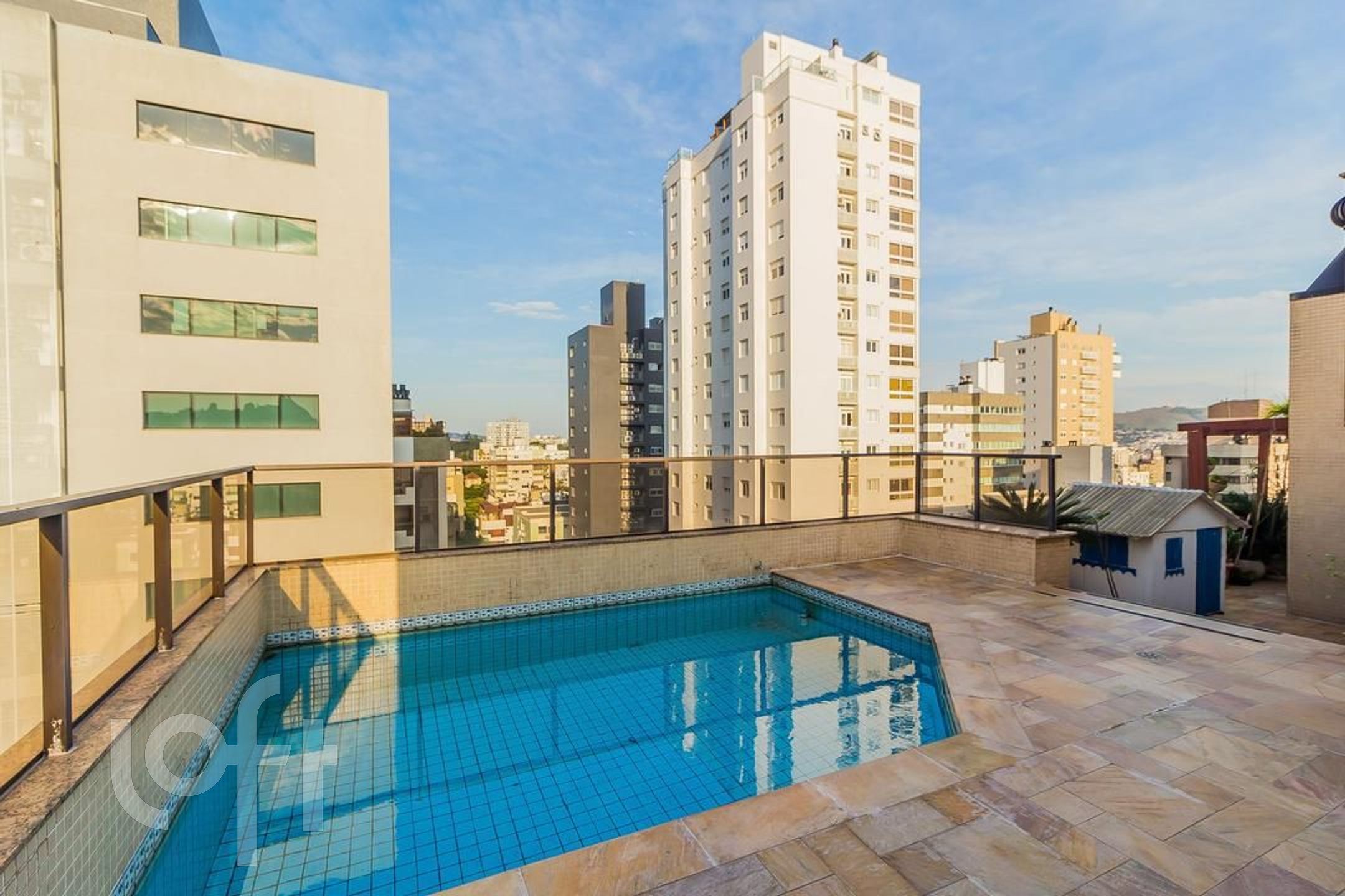 Apartamento com 3 suítes, amplo living com lareira, lavabo, sacada fechada com churrasqueira cozinha e área de serviço. No segundo piso temos uma ampla sala com churrasqueira, um dormitório hoje transformado em escritório, espaço gourmet, amplo terraço com piscina e pergolado, uma vista definida.