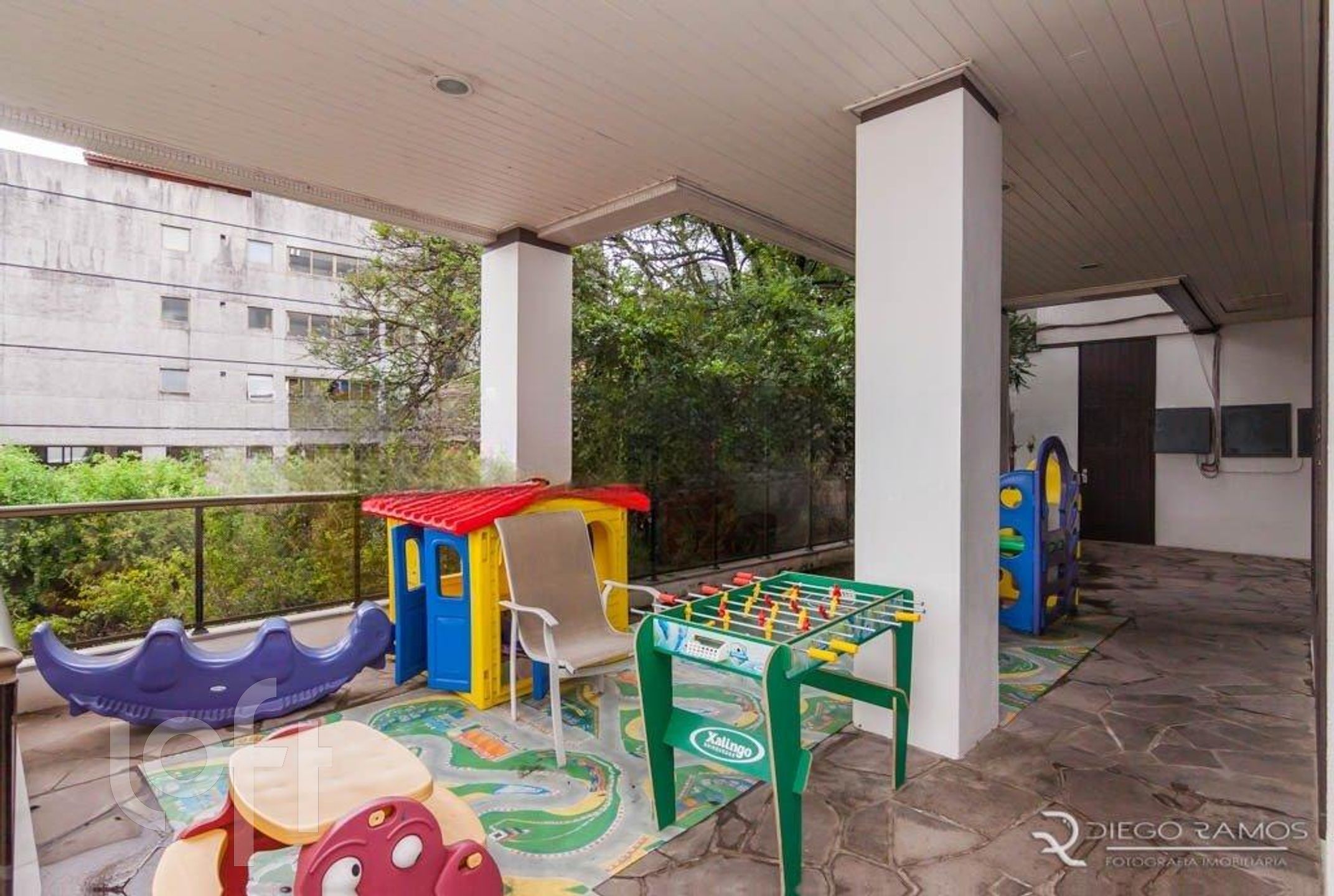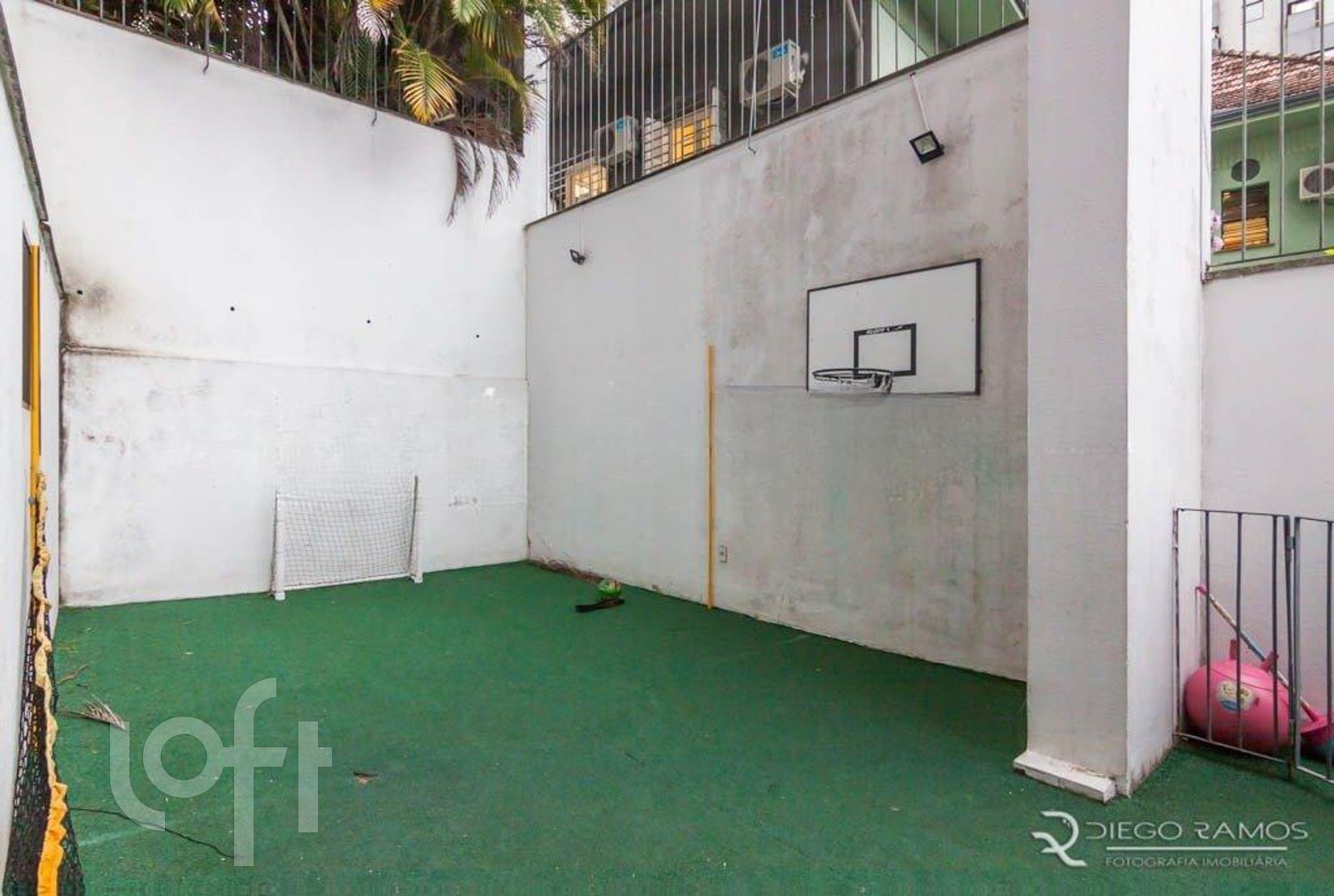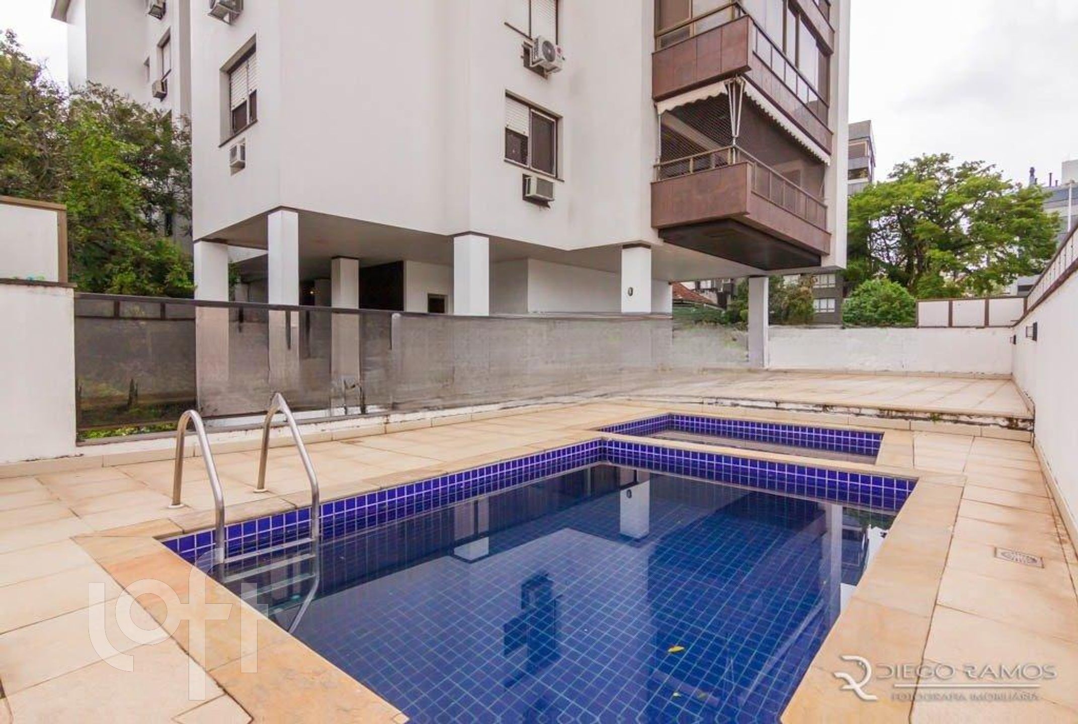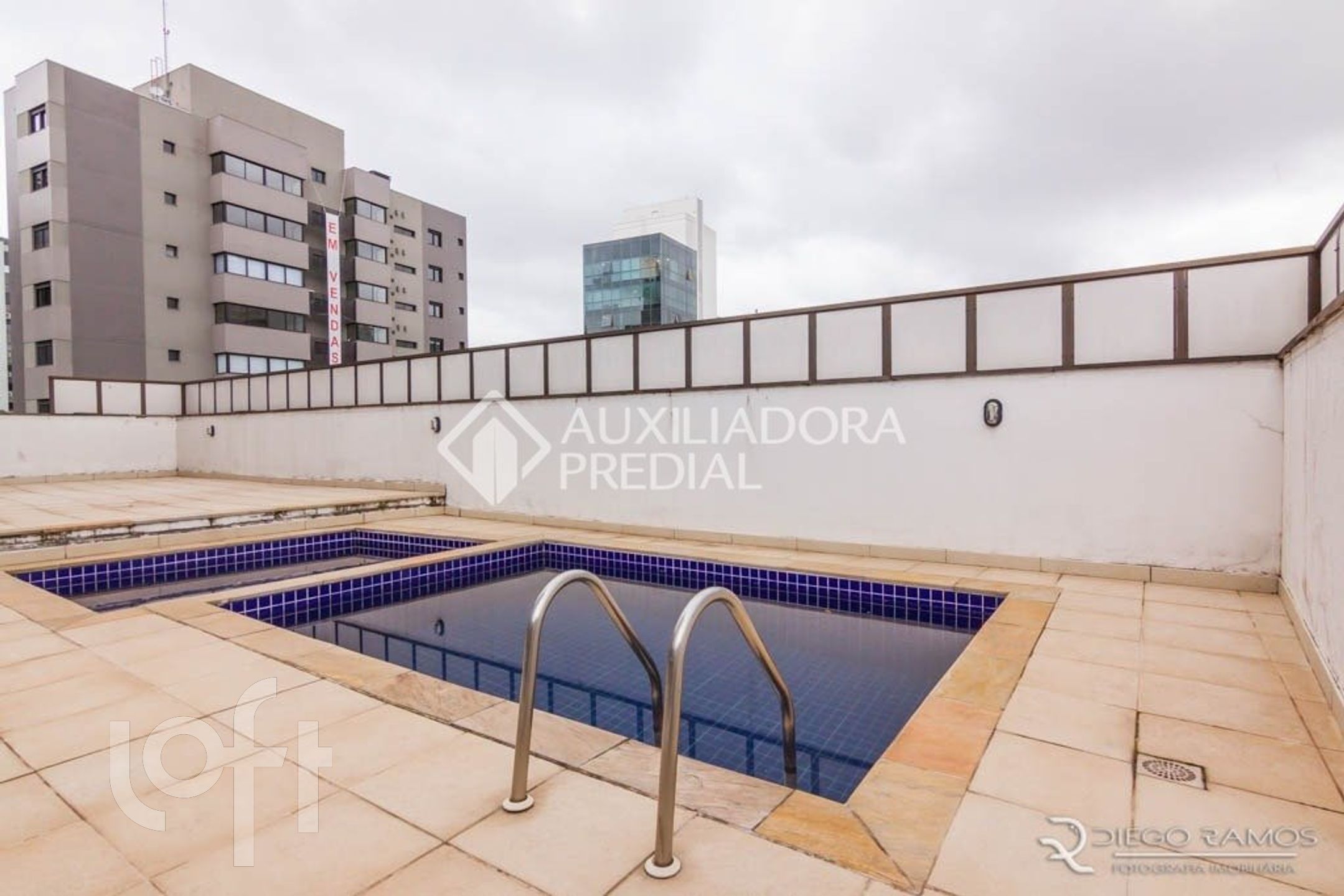 Prédio com portaria virtual, salão de festas e piscina.