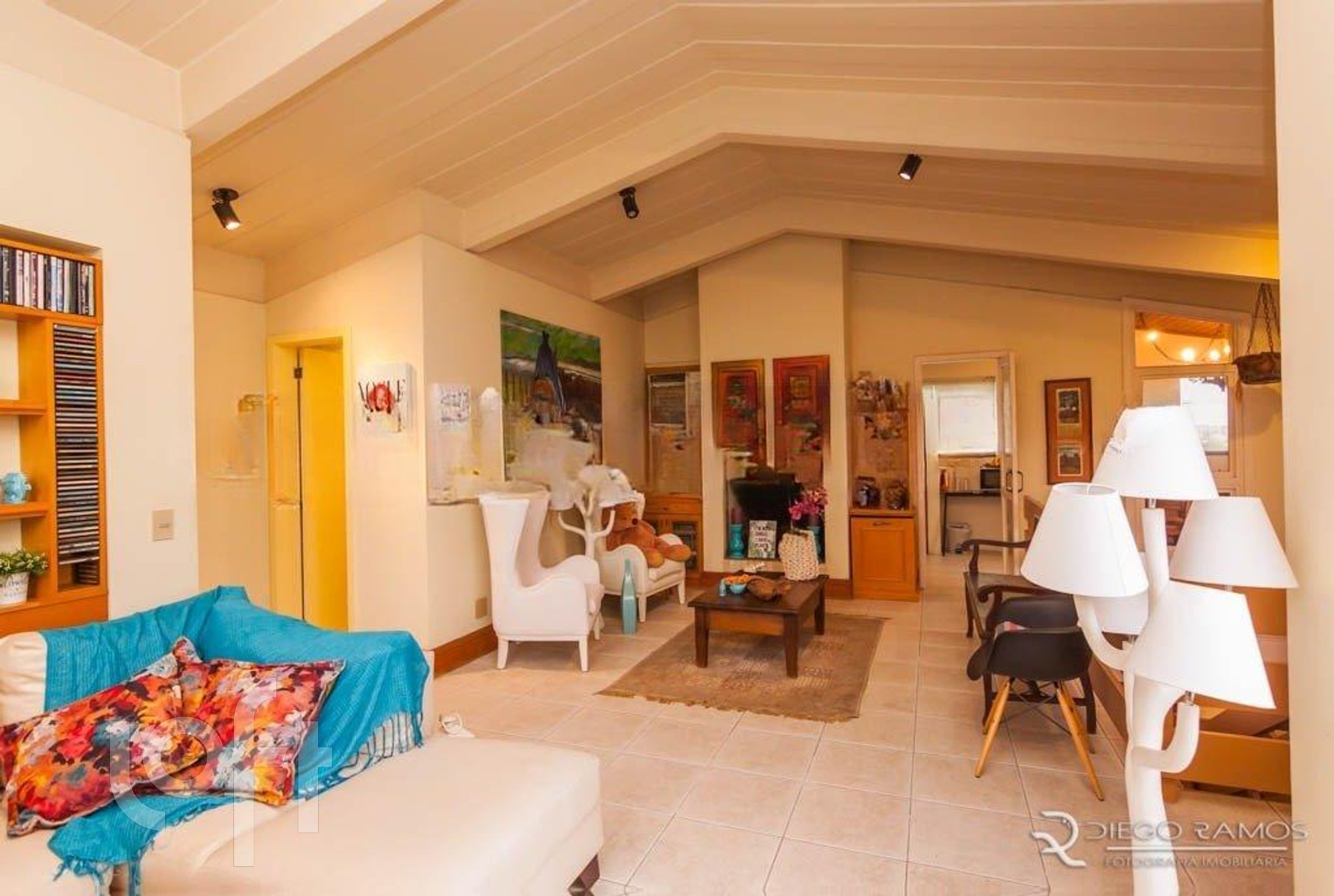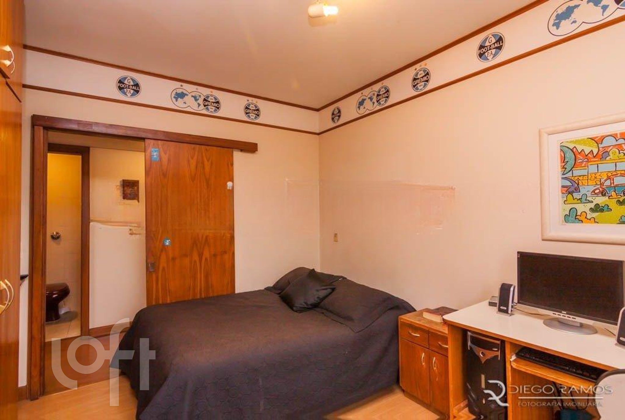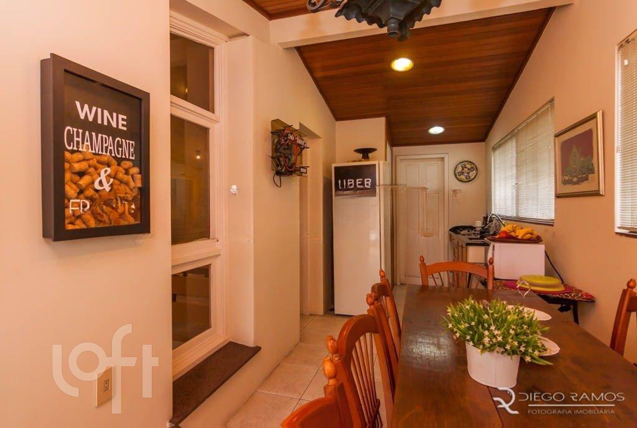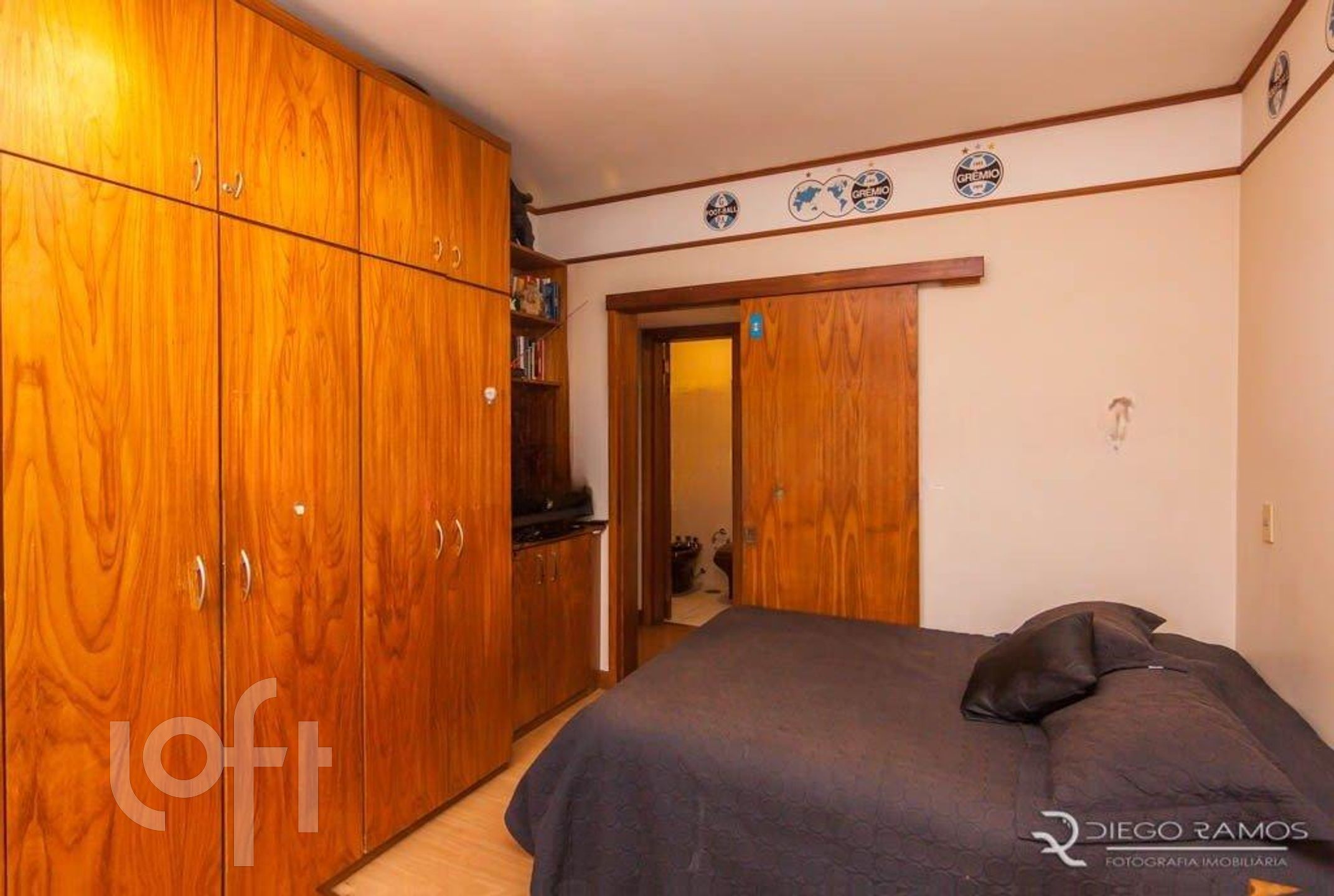 Parte superior espaço gourmet com churrasqueira, living com lareira, mais um dormitório com closet.