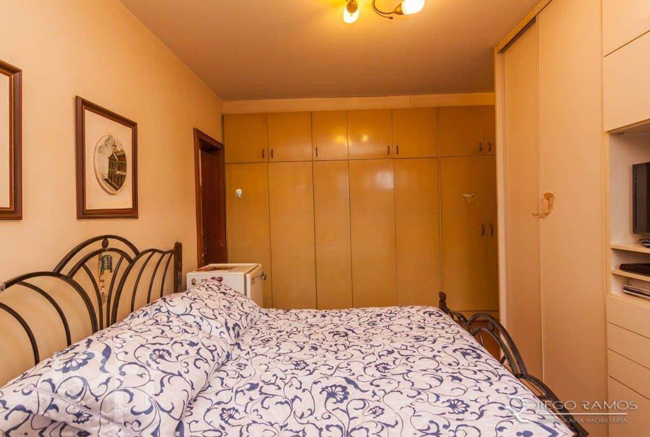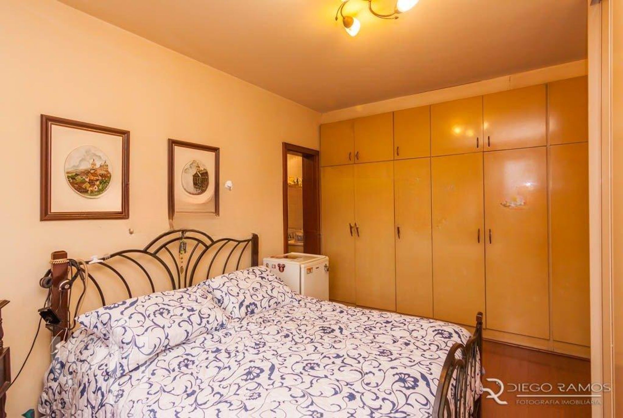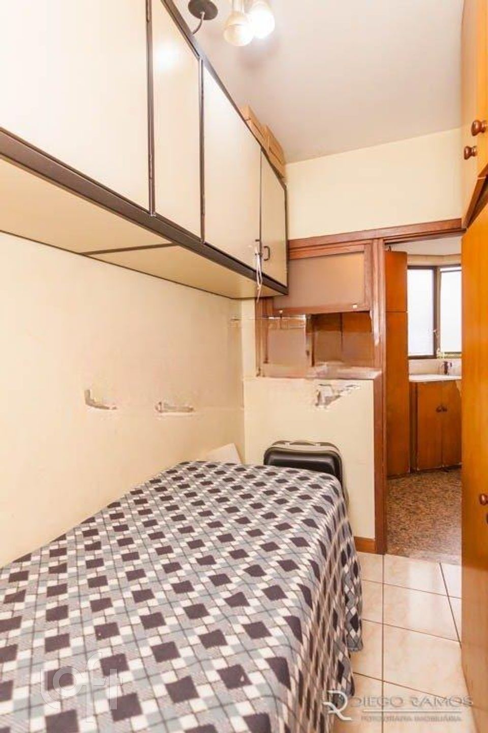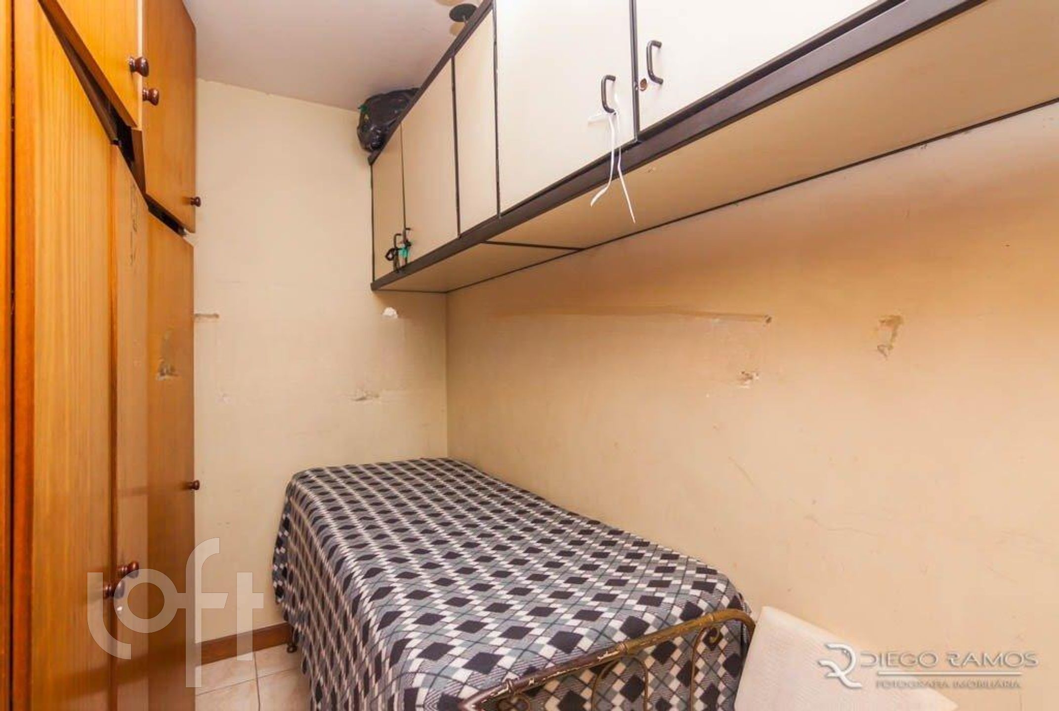 Parte superior espaço gourmet com churrasqueira, living com lareira, mais um dormitório com closet.