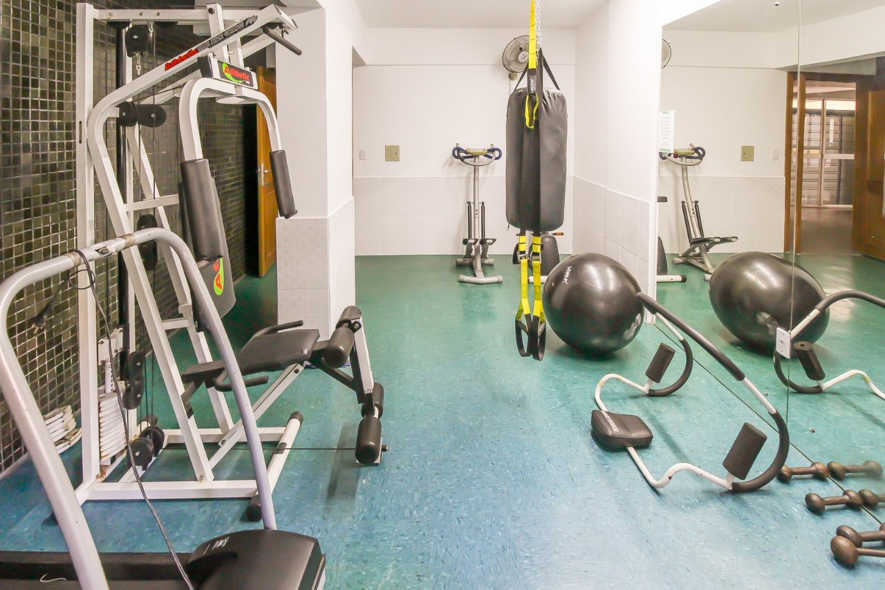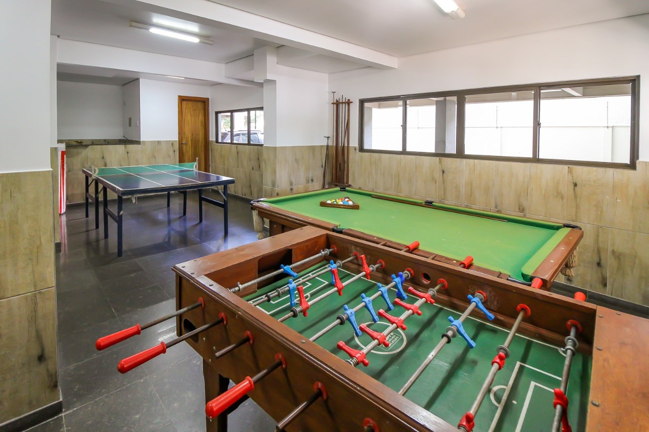 Prédio com elevador, portaria 24 horas, salão de festas, academia e sala de jogos.