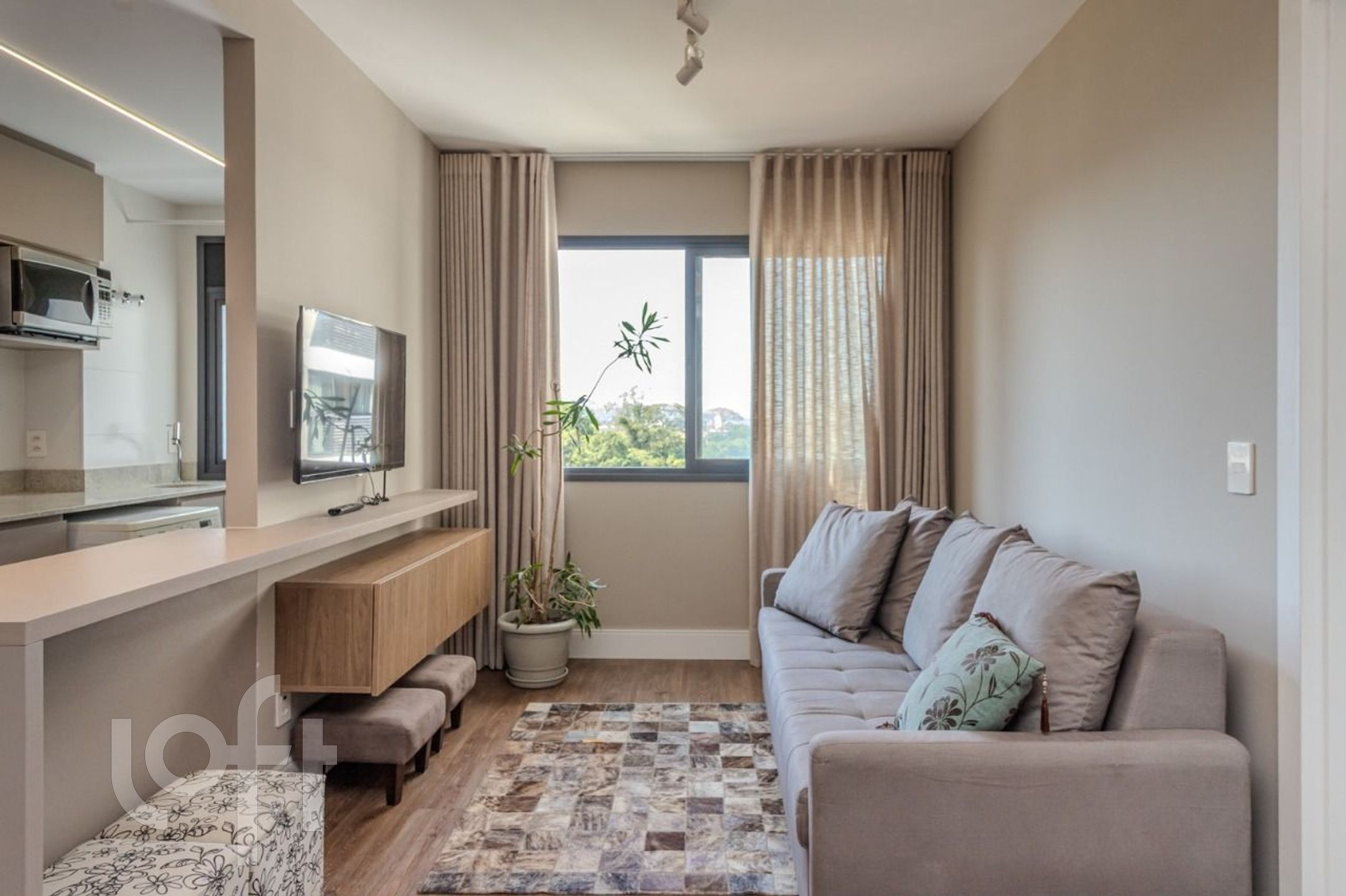 Apartamento com 49,84m² privativo 1 suíte, lavabo, sala, cozinha com churrasqueira, área de serviço e sala de estar e uma excelente iluminação natural.
