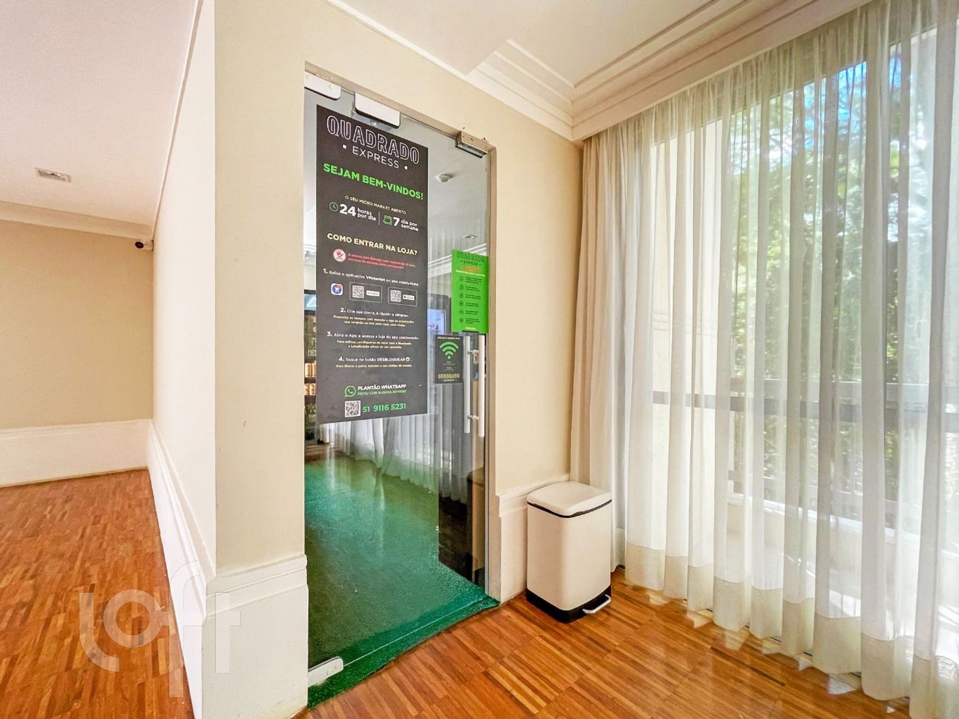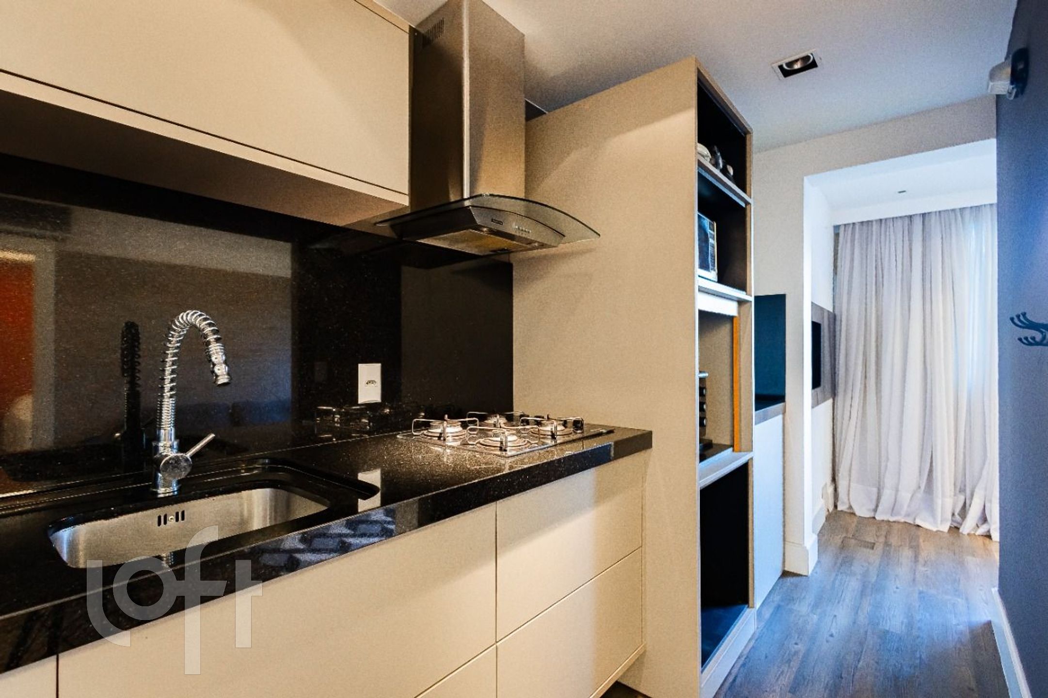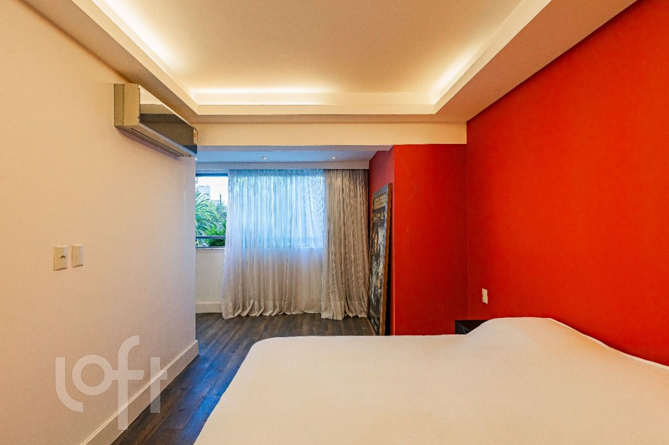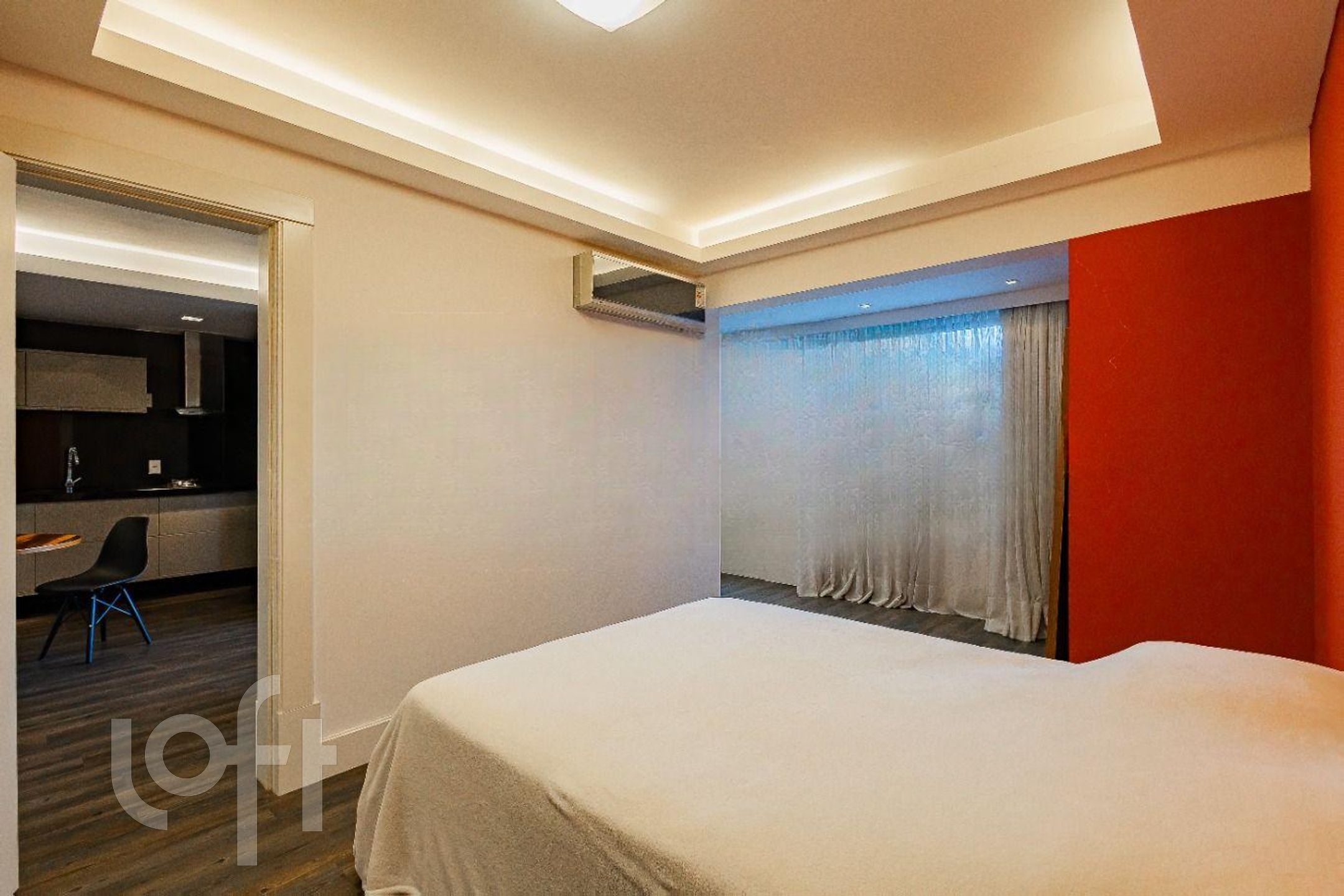 Imóvel de frentel reformado, onde a sacada está integrada com o living e com o dormitório.