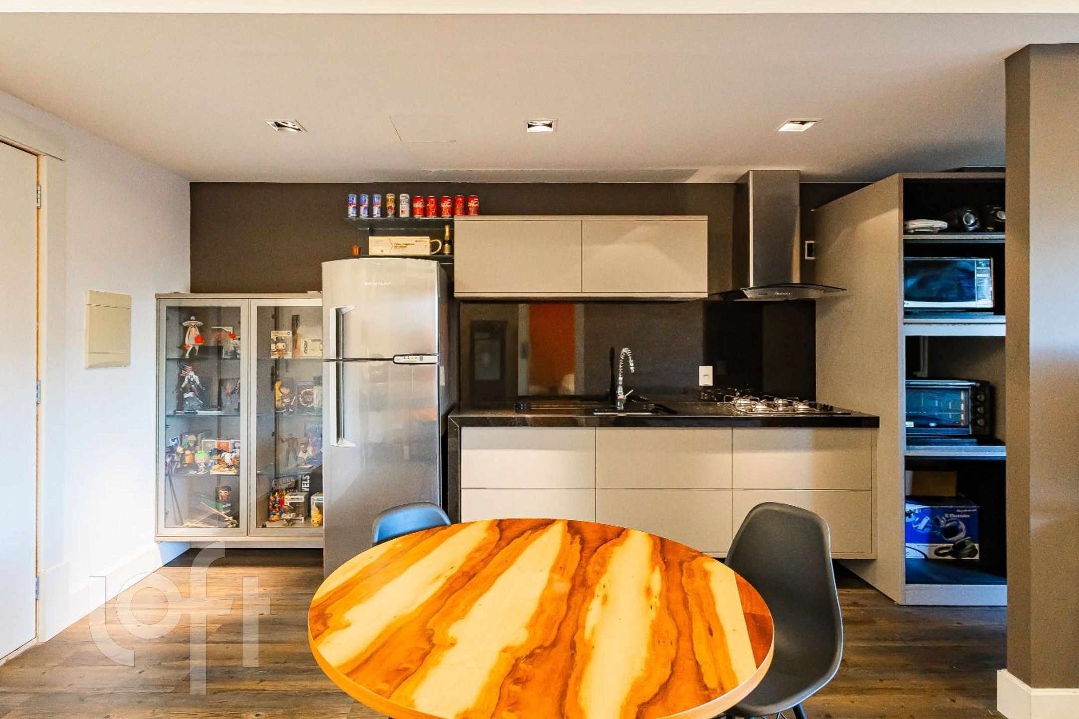 Cozinha montada com móveis sob medida, espaço gourmet com churrasqueira para receber amigos e familiares.