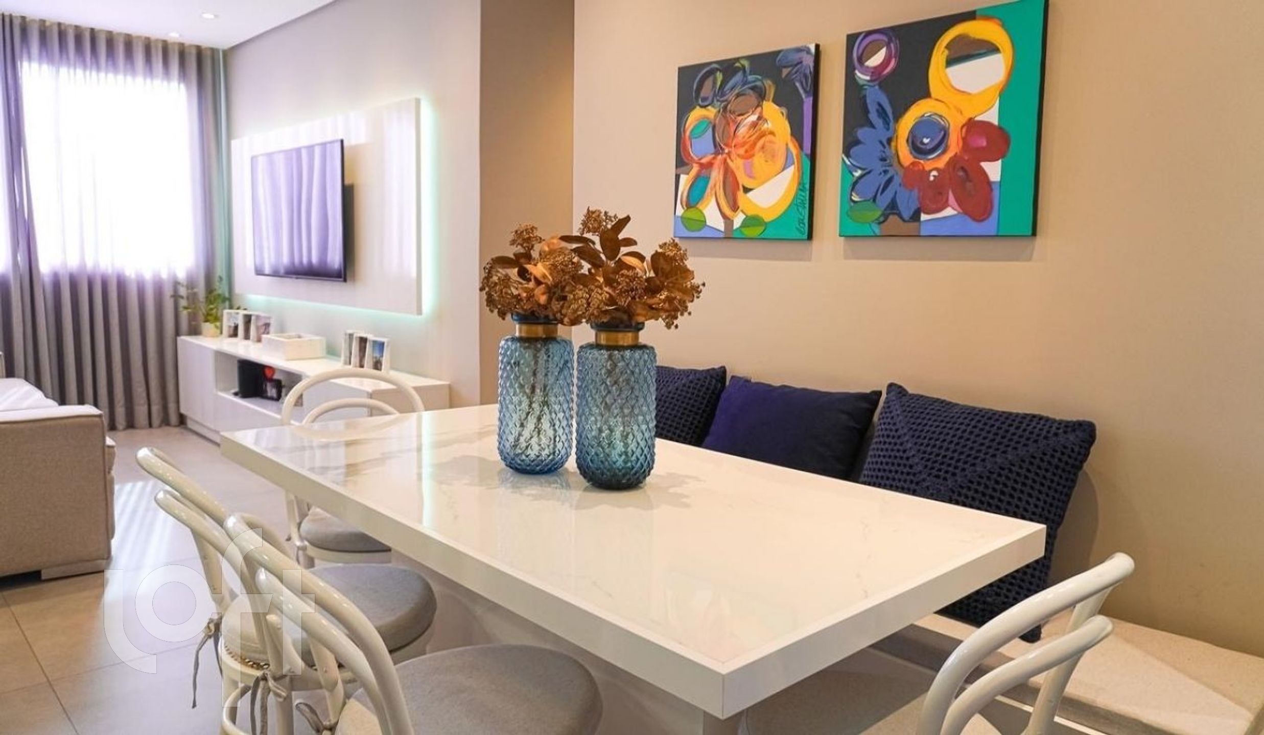Apartamento com 2 dormitórios no bairro São João, decorado por arquiteto com 1 suíte, 59,93m² de área privativa, semimobiliado , com linda vista, de frente com orientação solar oeste. Living 2 ambientes e cozinha americana com churrasqueira.