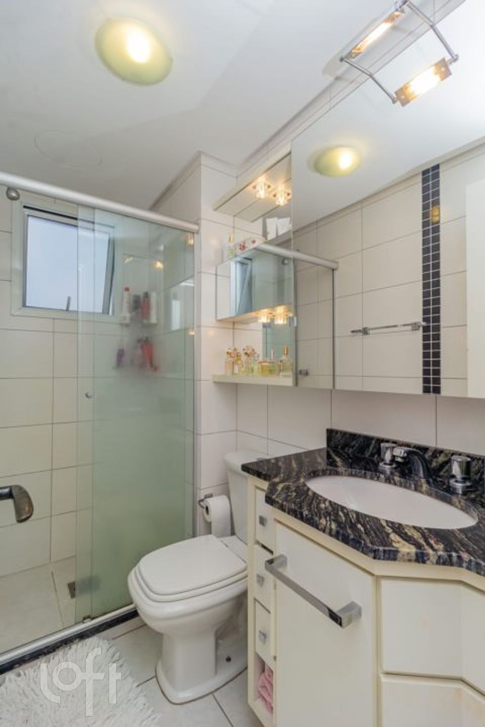 Composto por 2 dormitórios, sendo 1 suíte. Banheiro social com armários e ventilação natural.