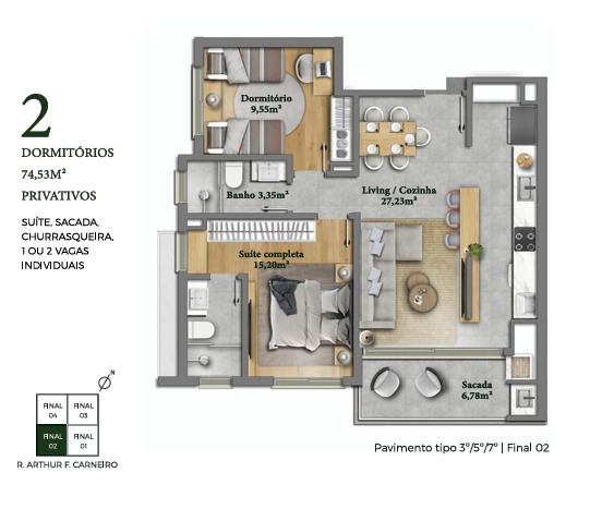 Área Privativa75m²