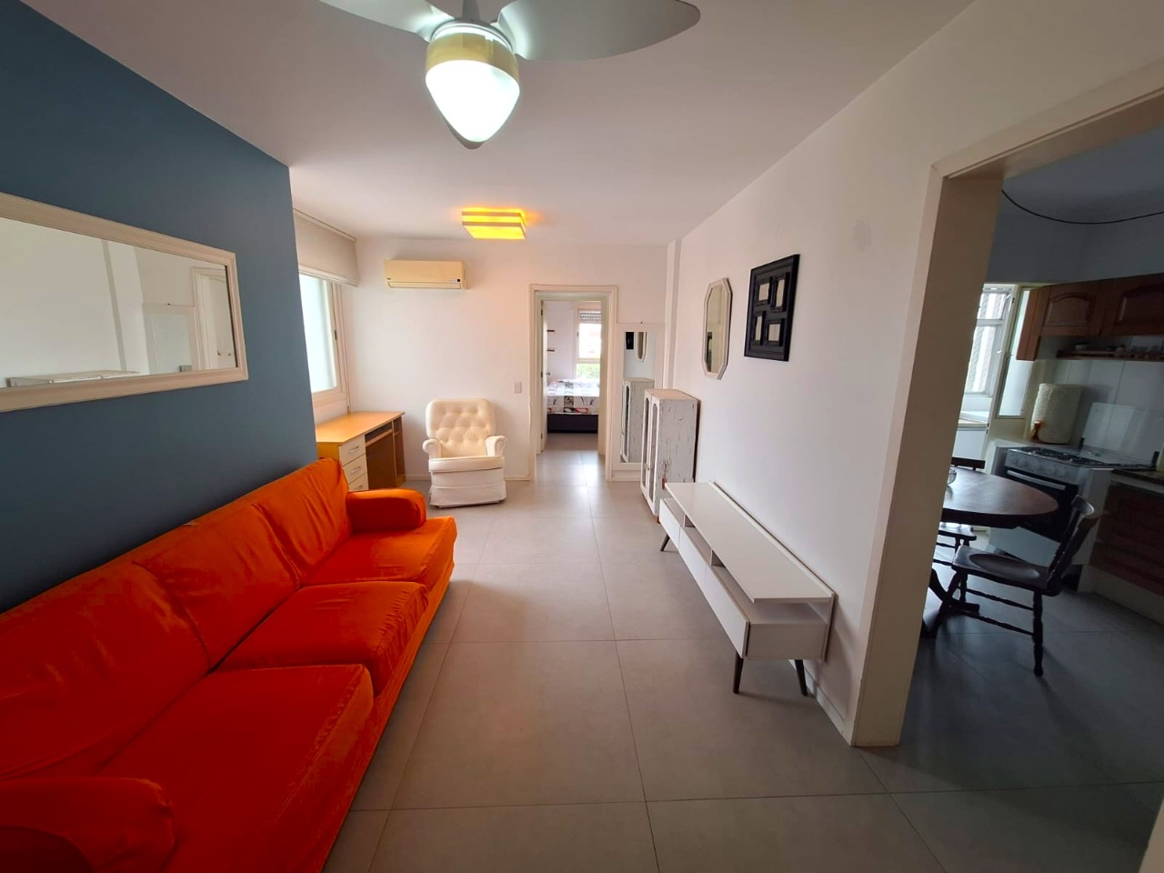 Apartamento espaçoso de 2 dormitórios grandes, com dependência completa que pode ser utilizada como terceiro quarto ou escritório. Possui 2 banheiros, é totalmente mobiliado, localizado no último andar, com ótima ventilação e iluminação natural. Conta com 1 vaga de garagem coberta e escriturada.