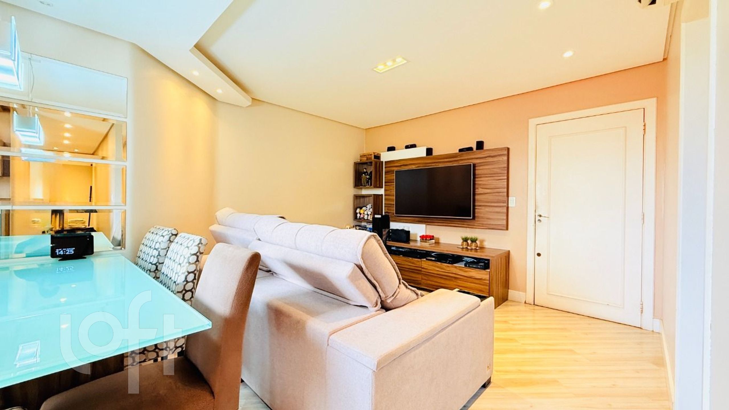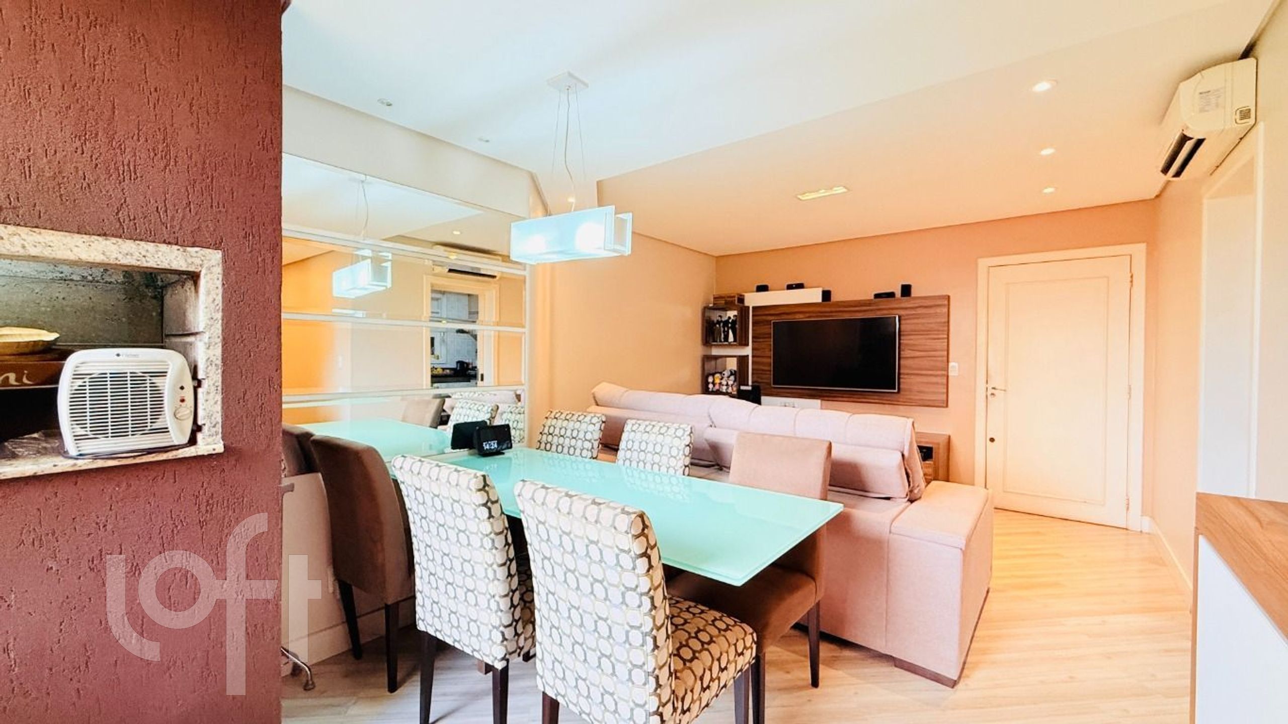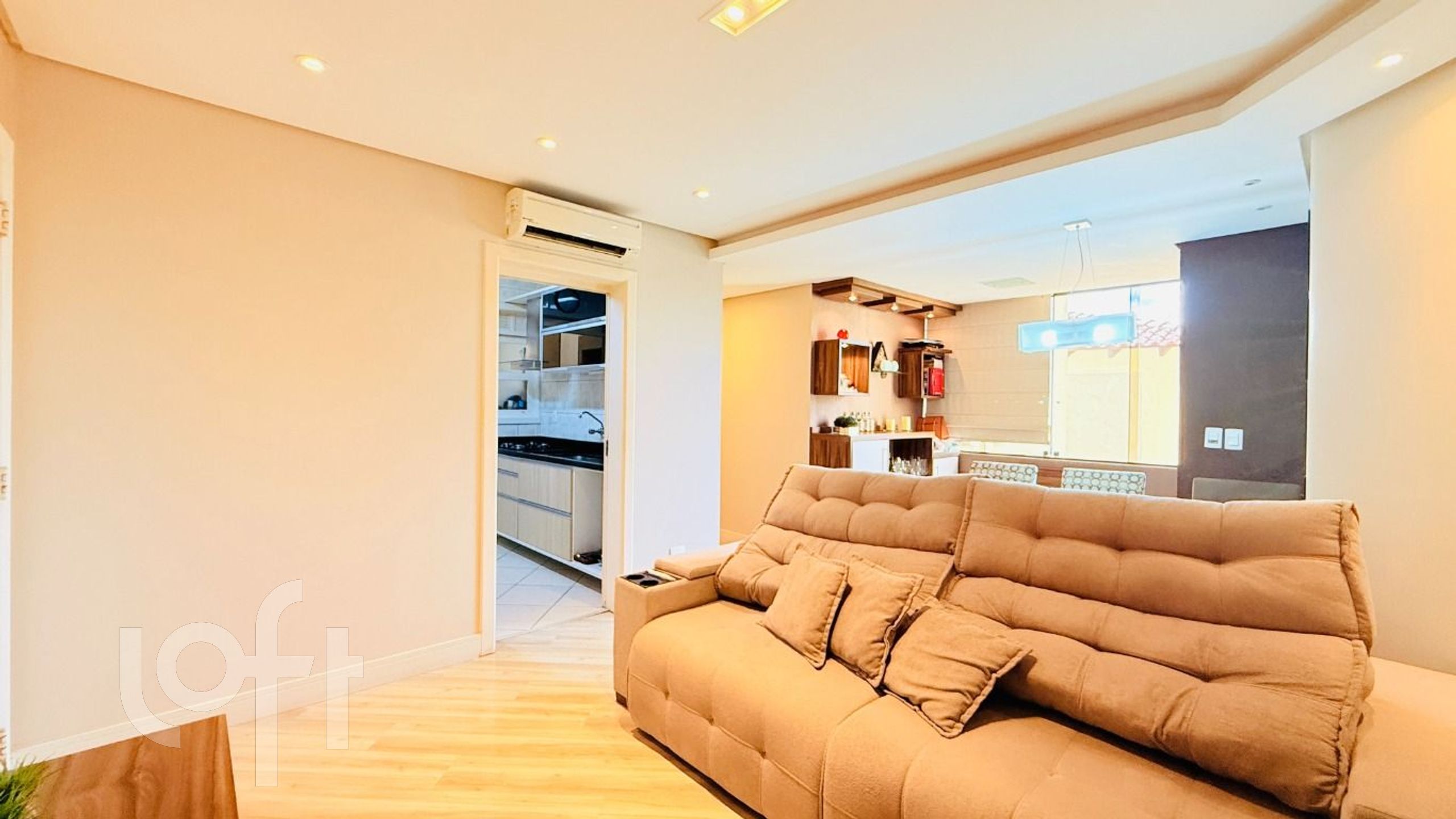 Apartamento com 2 dormitórios, sendo 1 suíte, mobiliado com móveis planejados. Possui living para dois ambientes, cozinha ampla e fechada, churrasqueira, lavanderia separada e pátio privativo. Conta ainda com splits instalados e 2 vagas de garagem individuais.