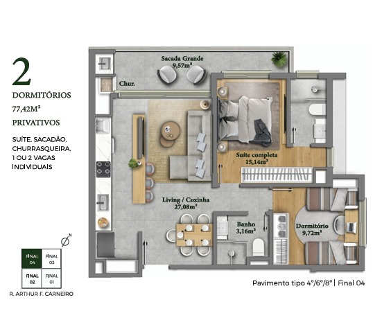 Área Privativa77m²