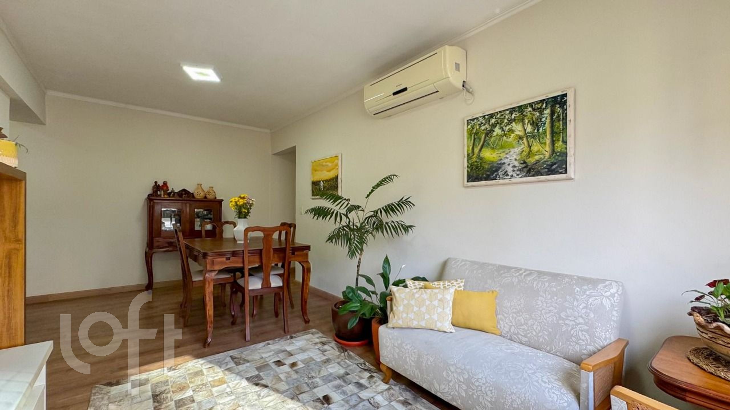 A área de serviço é separada, promovendo mais organização, e há ainda dependência de empregada com banheiro auxiliar, além de um banheiro social com box. O imóvel está localizado no quarto andar, possui uma vaga de garagem fixa e coberta, e aceita animais de estimação.