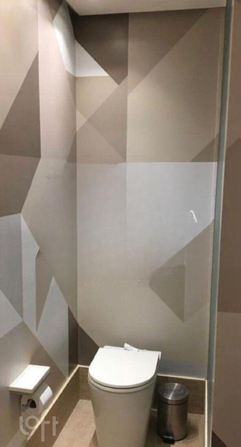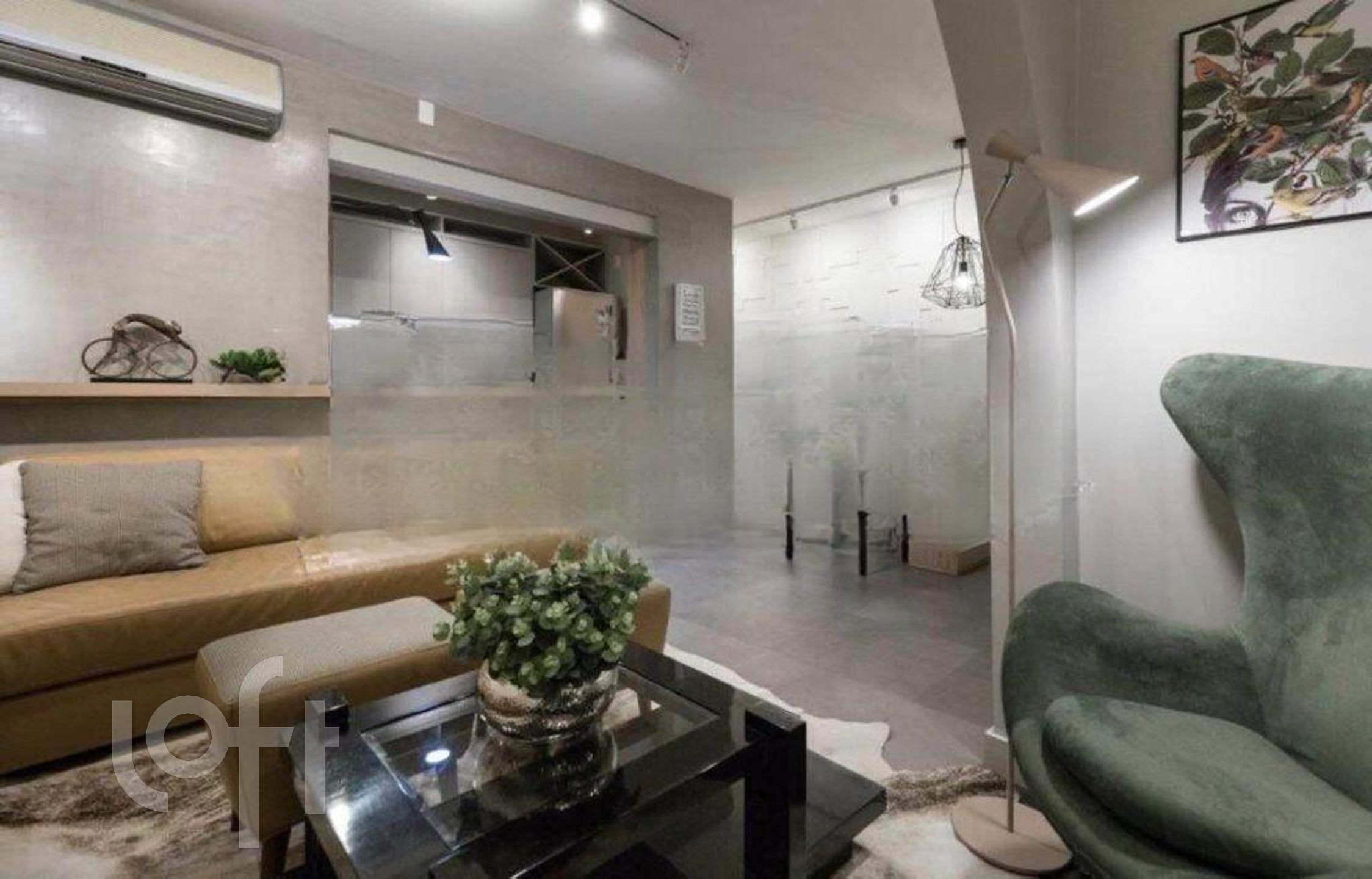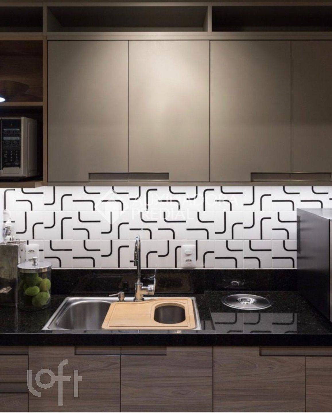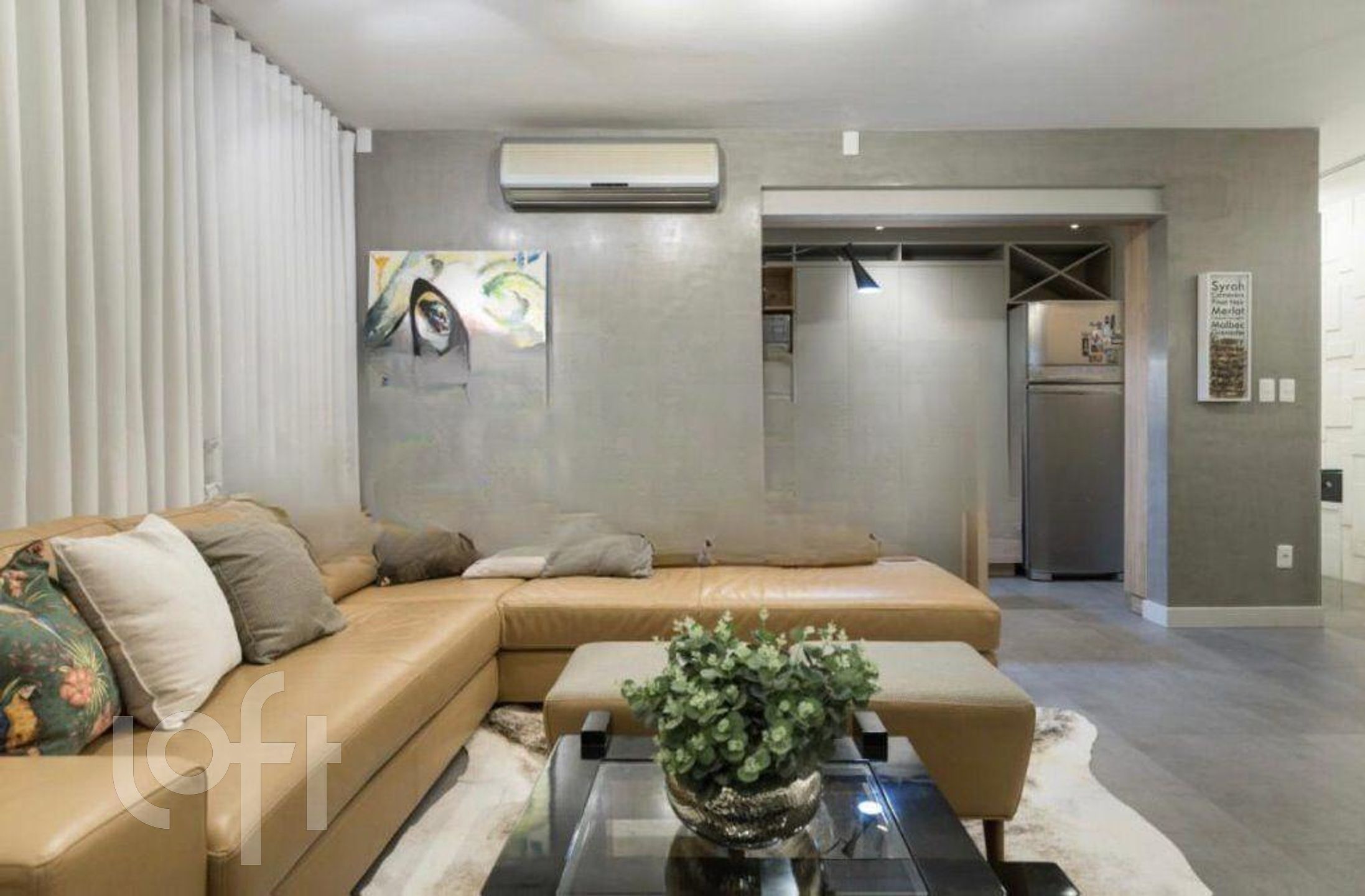 O imóvel permanece com os móveis sob medida conforme visita, incluindo armários de cozinha e área de serviço, além de três aparelhos de ar-condicionado instalados .