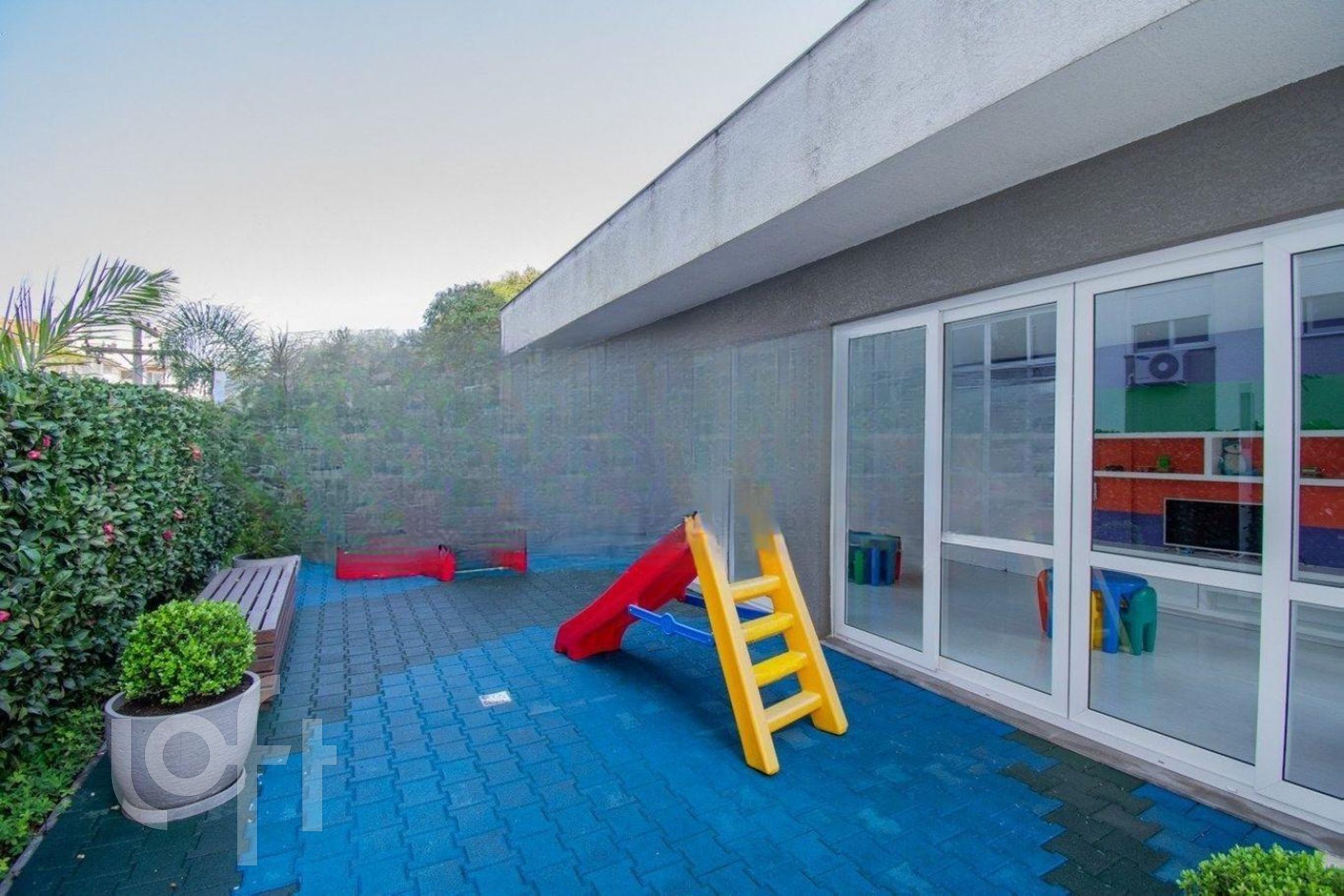 Condomínio com portaria, elevador, academia, salão de festas, playground, piscina e brinquedoteca.
