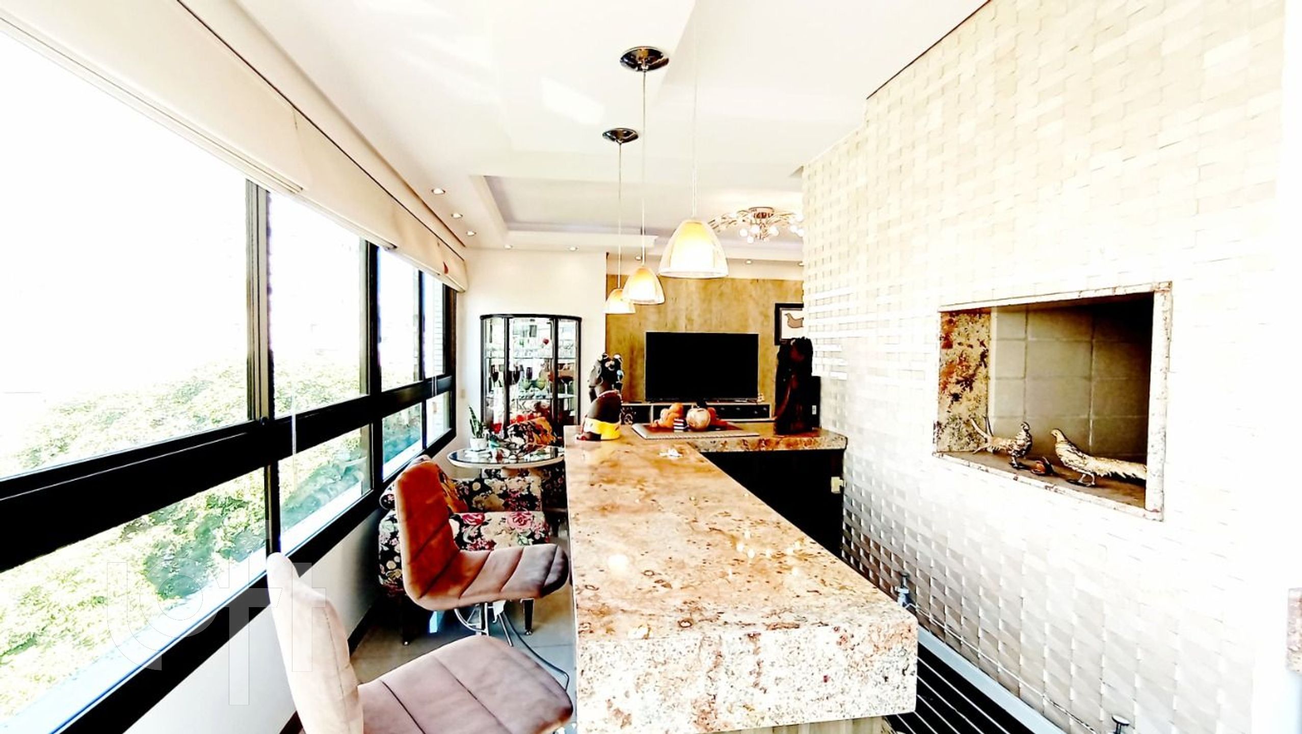 Amplo living com janelões e vista panoramica privilegiada, living em L para 3 ambientes, sala de jantar (lareira desativada, fácil reinstalação).