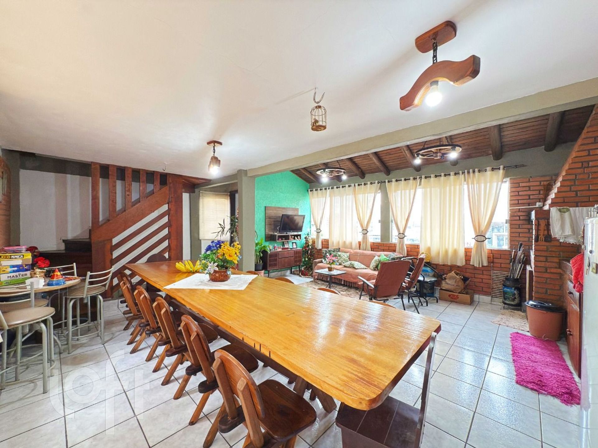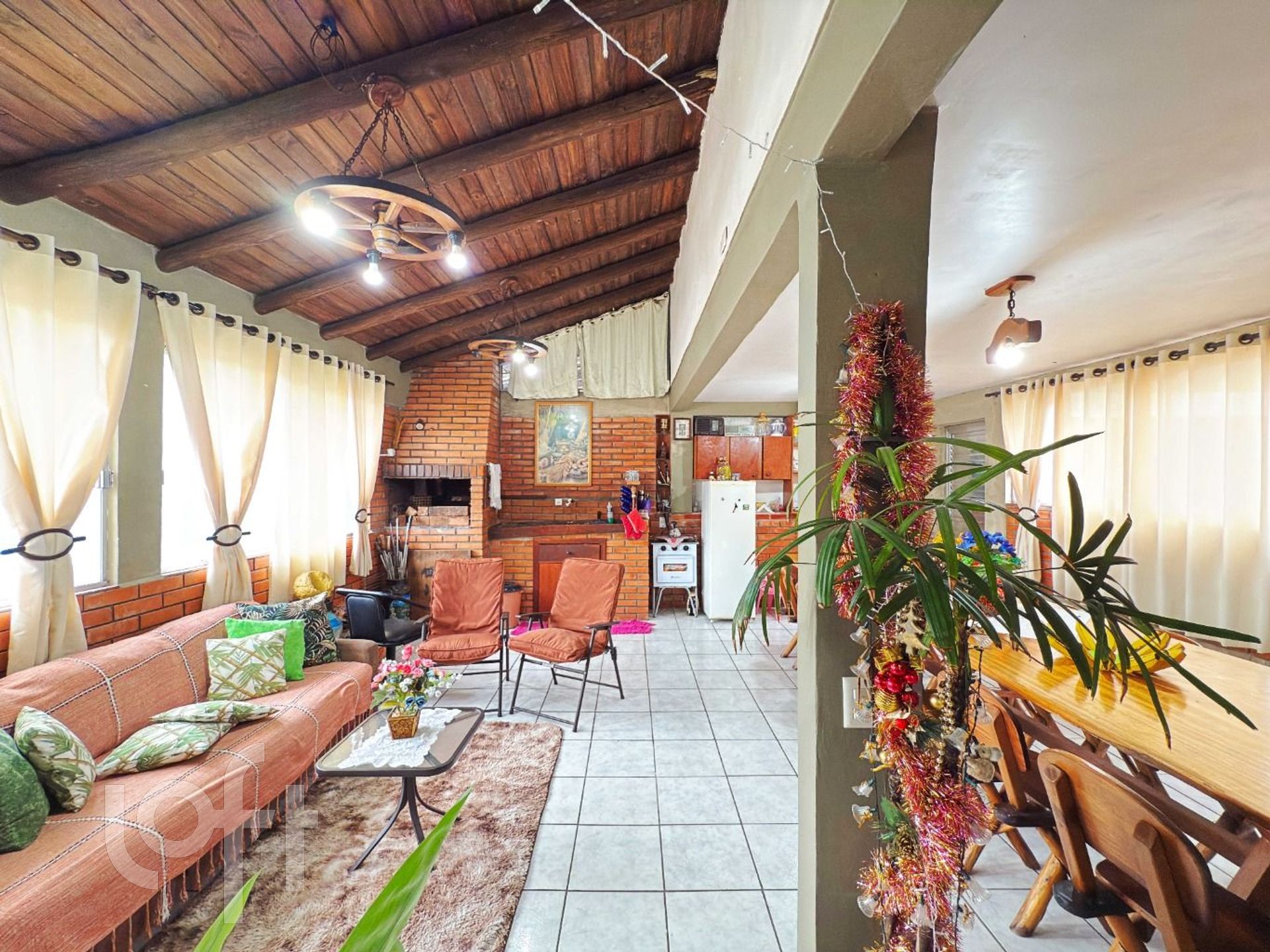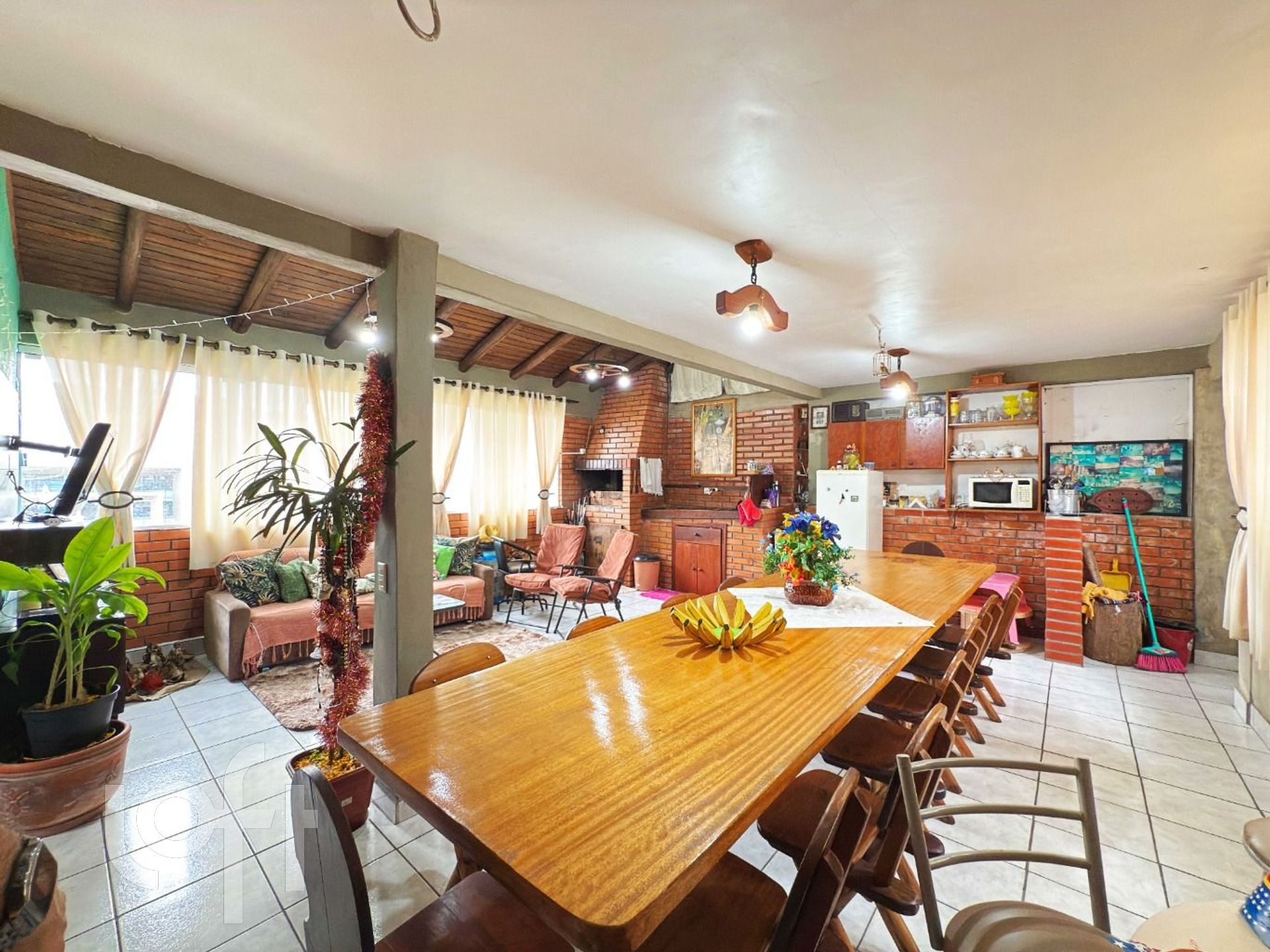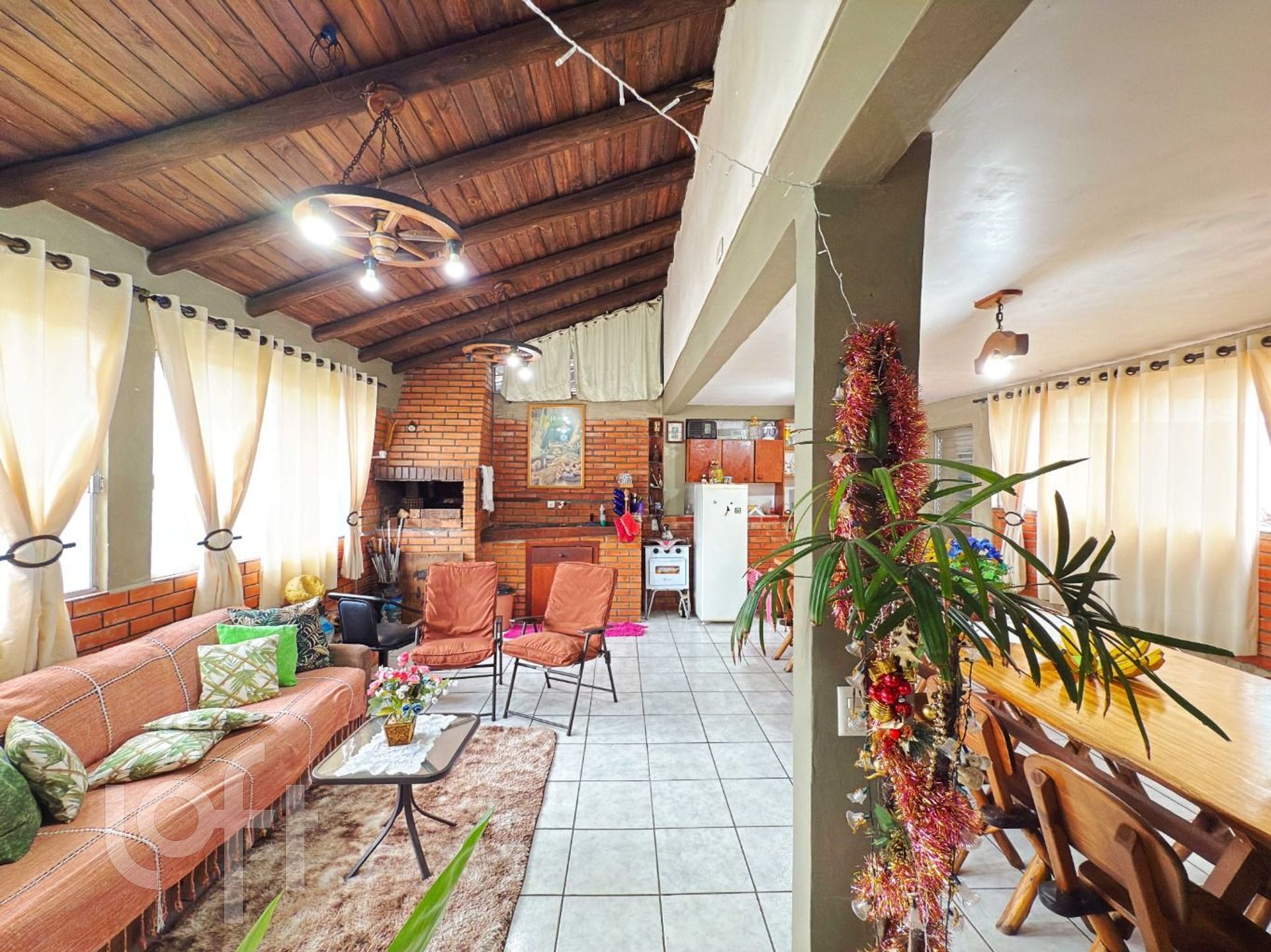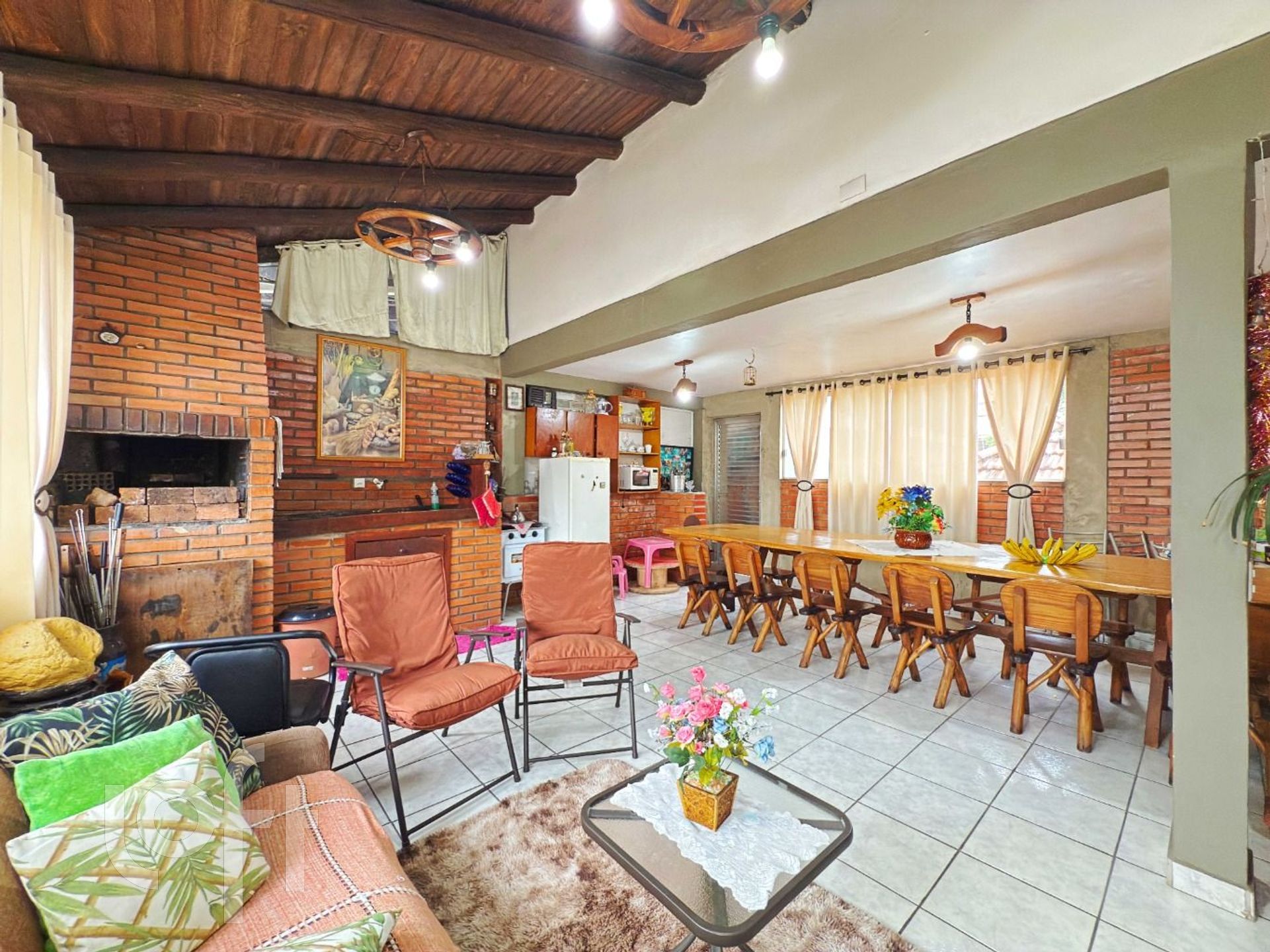 No andar superior temos um belo ambiente campeiro com churrasqueira e terraço.