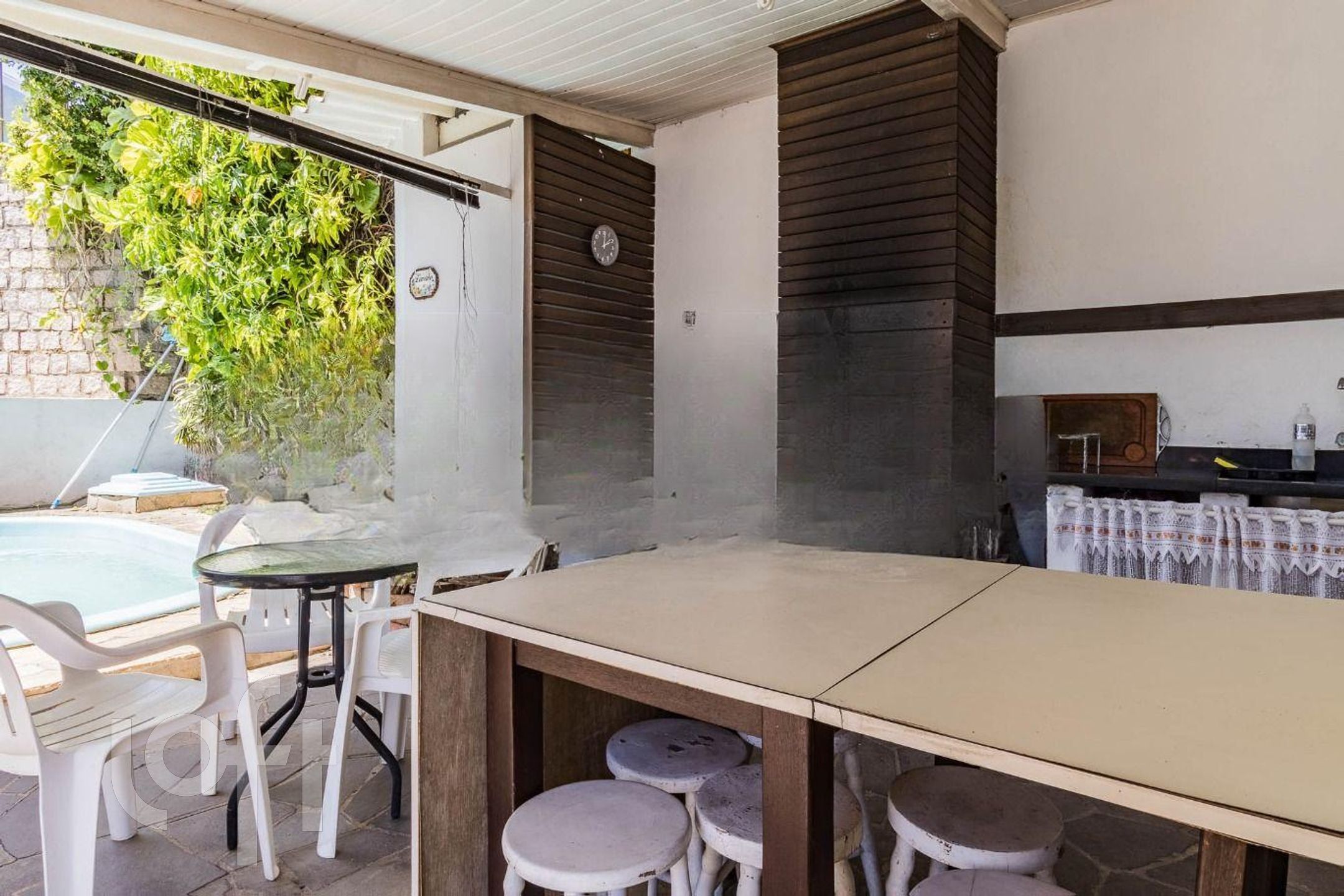 Na área Externa, Pátio com piscina e quiosque com churrasqueira e lavabo, um ambiente acolhedor para encontro com amigos e familiares. E tem mais um cômodo extra com banheiro, que pode ser utilizado como adega, estúdio ou sala de descanso. Vaga de garagem fechada para 3 veículos.
